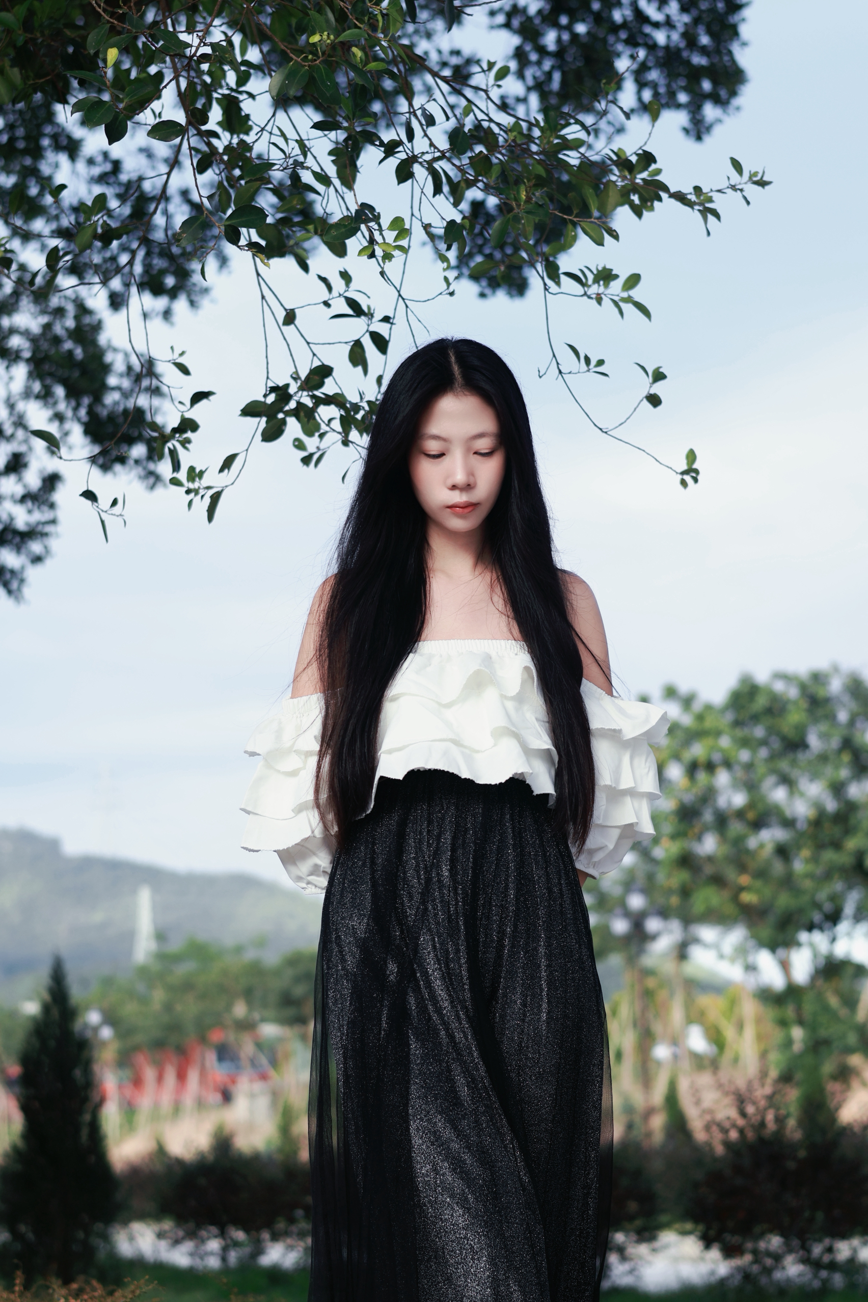 今日OOTD是法式慵懒风🌼:浅白一字肩上衣➕黑色半身长裙,温柔又显瘦! 室外迎着阳光拍,📷自带柔和滤镜,走路时裙摆飘动的动态感也能抓得很准,完全是理想中的法式松弛感😌!日常穿出门,不管是咖啡馆久坐还是公园散步,都好出片~ 你们法式穿搭拍图喜欢选什么场景? 🌞 下午4点50的午后逆光 附新手参数: 📷 佳能R50 镜头:RF 50mm 小痰盂 🍎 M档: 人像 白平衡 💡 快门: 1...