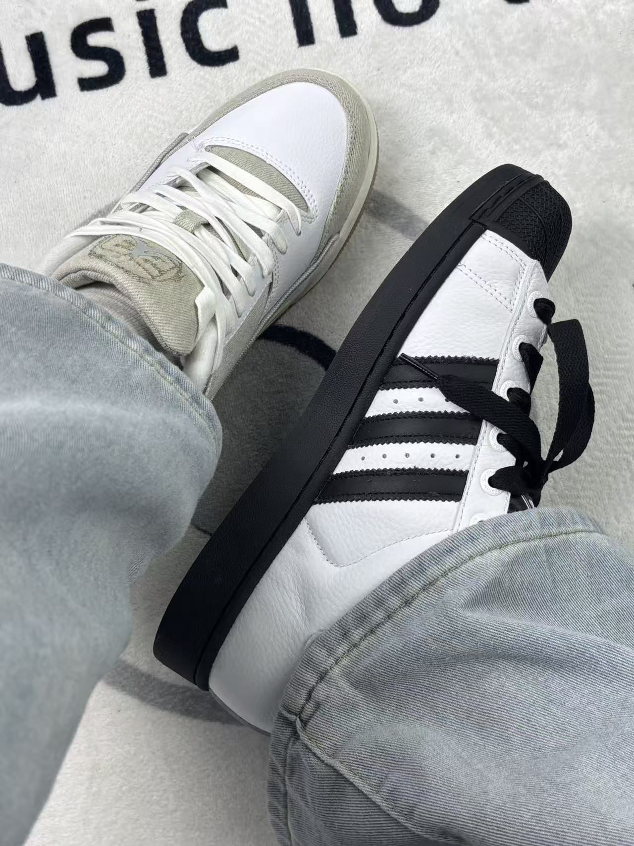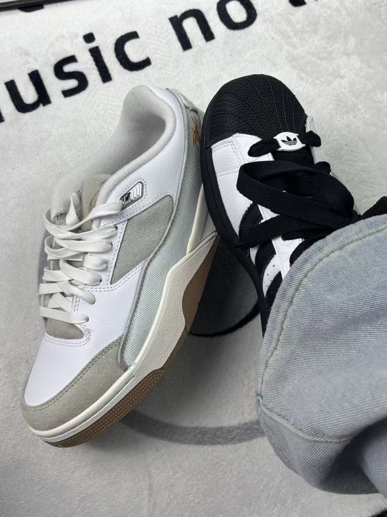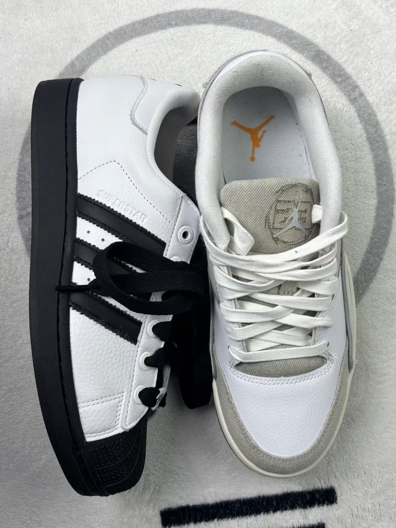 这两双鞋,一双Adidas Superstar,一双Jordan,外观上各有特色,白色和灰色的搭配挺耐看的❤️🔥Adidas的鞋面是皮革材质,质感不错,但时间久了容易有折痕,显得旧😬Jordan的灰色翻毛皮和网面拼接,材质厚实,保暖性好,但也容易沾灰,清洁起来有点麻烦。 穿起来,Adidas的脚感偏硬🧊长时间走路会有点累;Jordan的缓震好一些,走路更舒服,但透气性一般,夏天穿会有点闷。 两双...