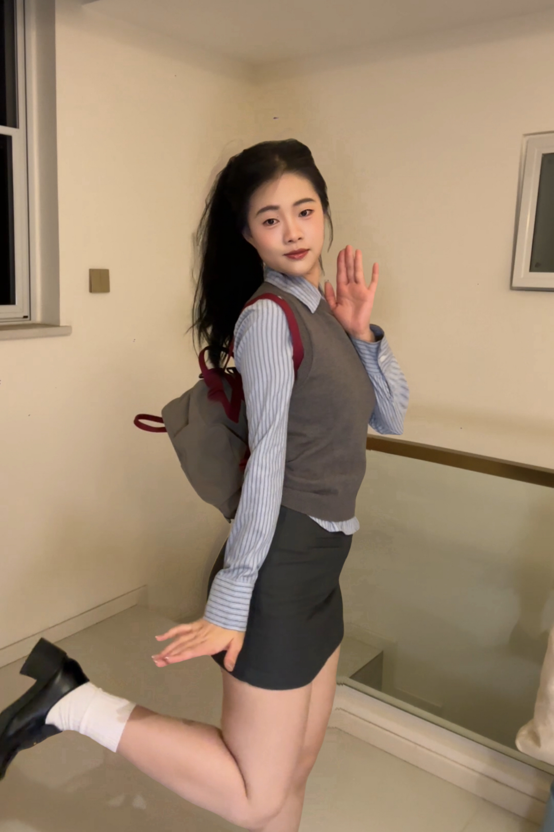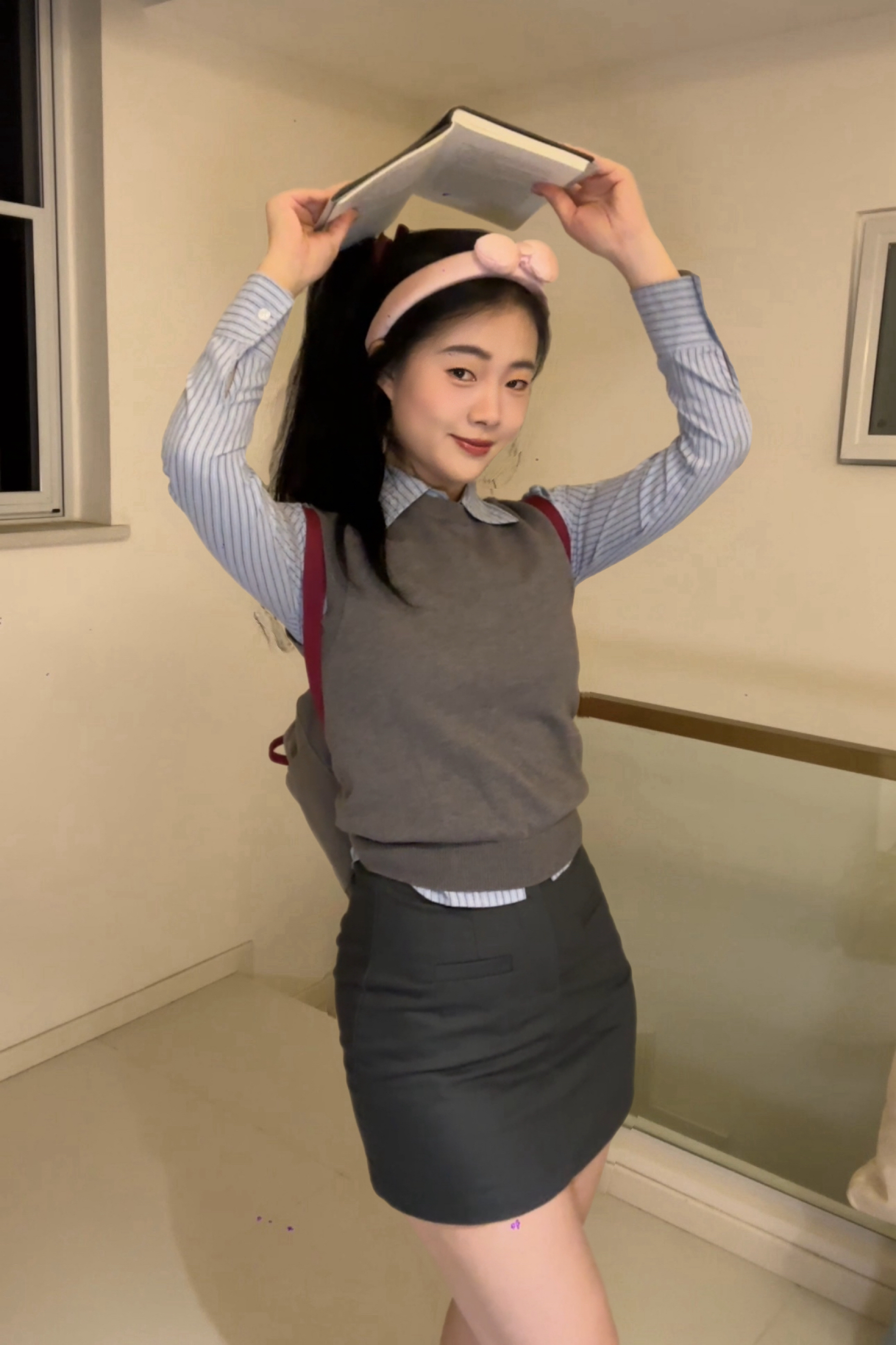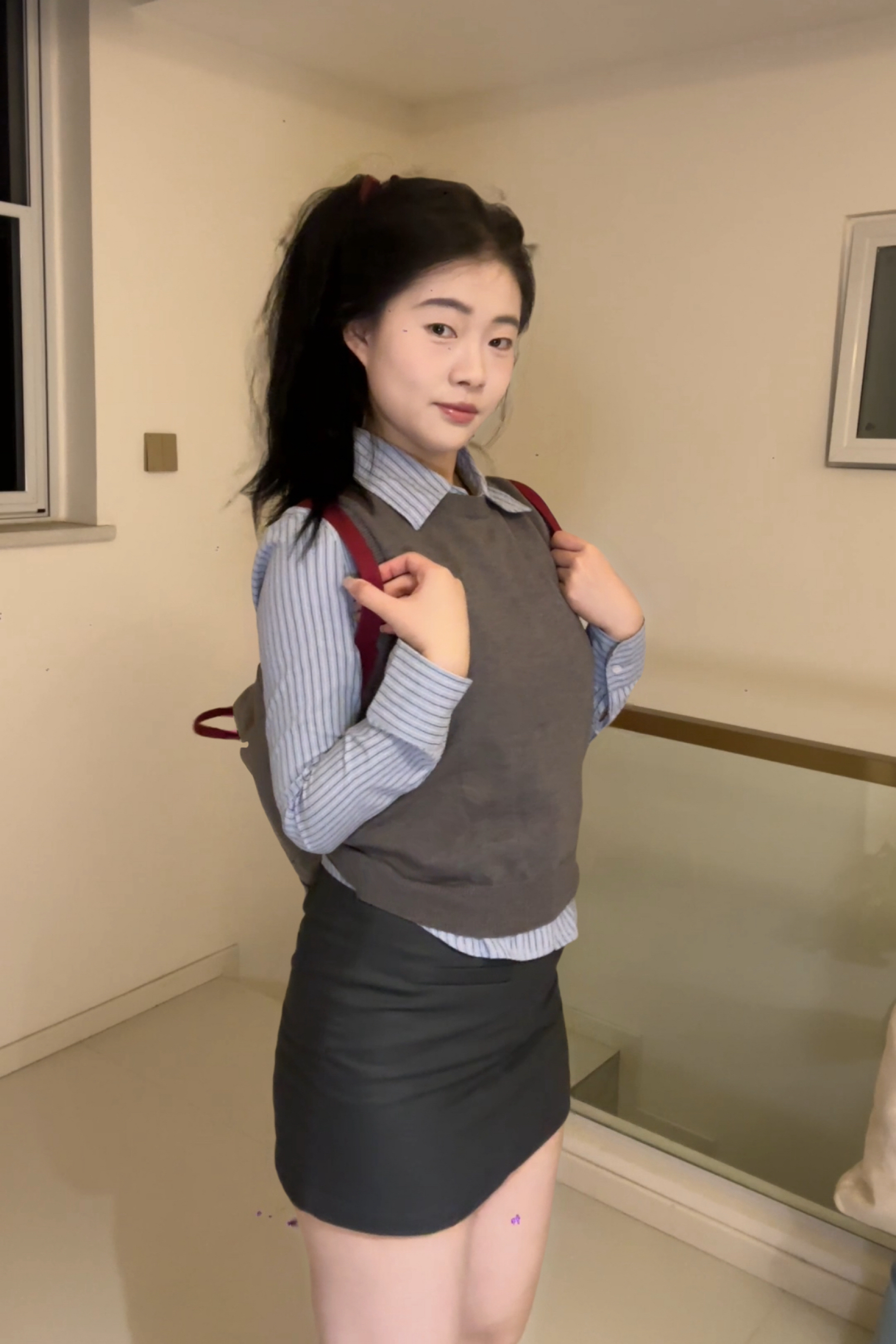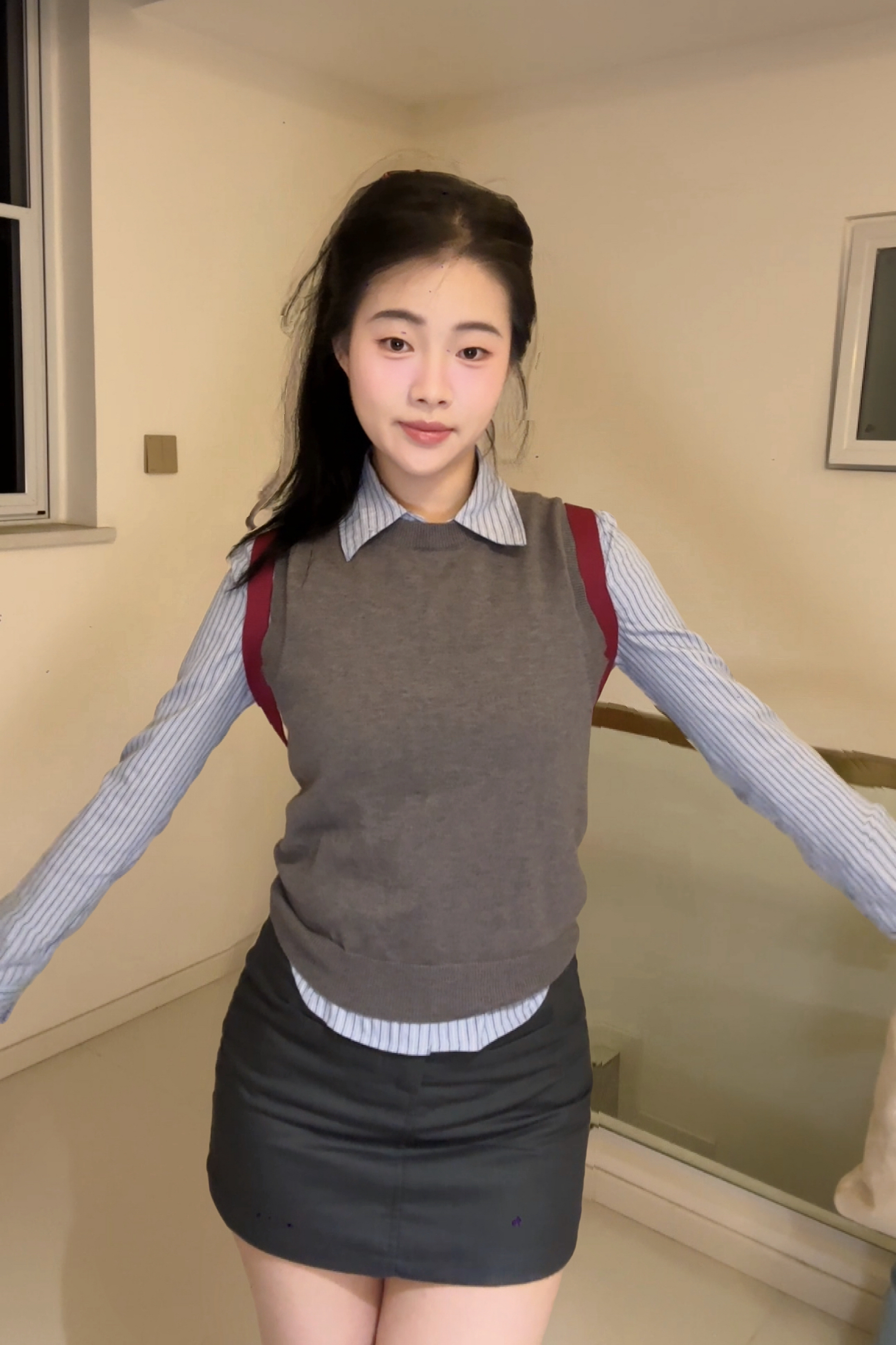 灰色针织无袖背心+同色系短裙,温柔又显身材👗 软糯材质贴肤不闷,高腰短裙悄悄拉高比例~ 外搭宽松蓝色衬衫,解开两颗扣子露锁骨,清爽又有层次感👔 敞开穿是随性通勤风,系在腰间秒变元气少女,脚踩小白鞋或乐福鞋都适配!灰蓝配色高级不挑皮,日常约会、上班、逛街全hold住,简约却满是小心机,谁穿谁好看呀~