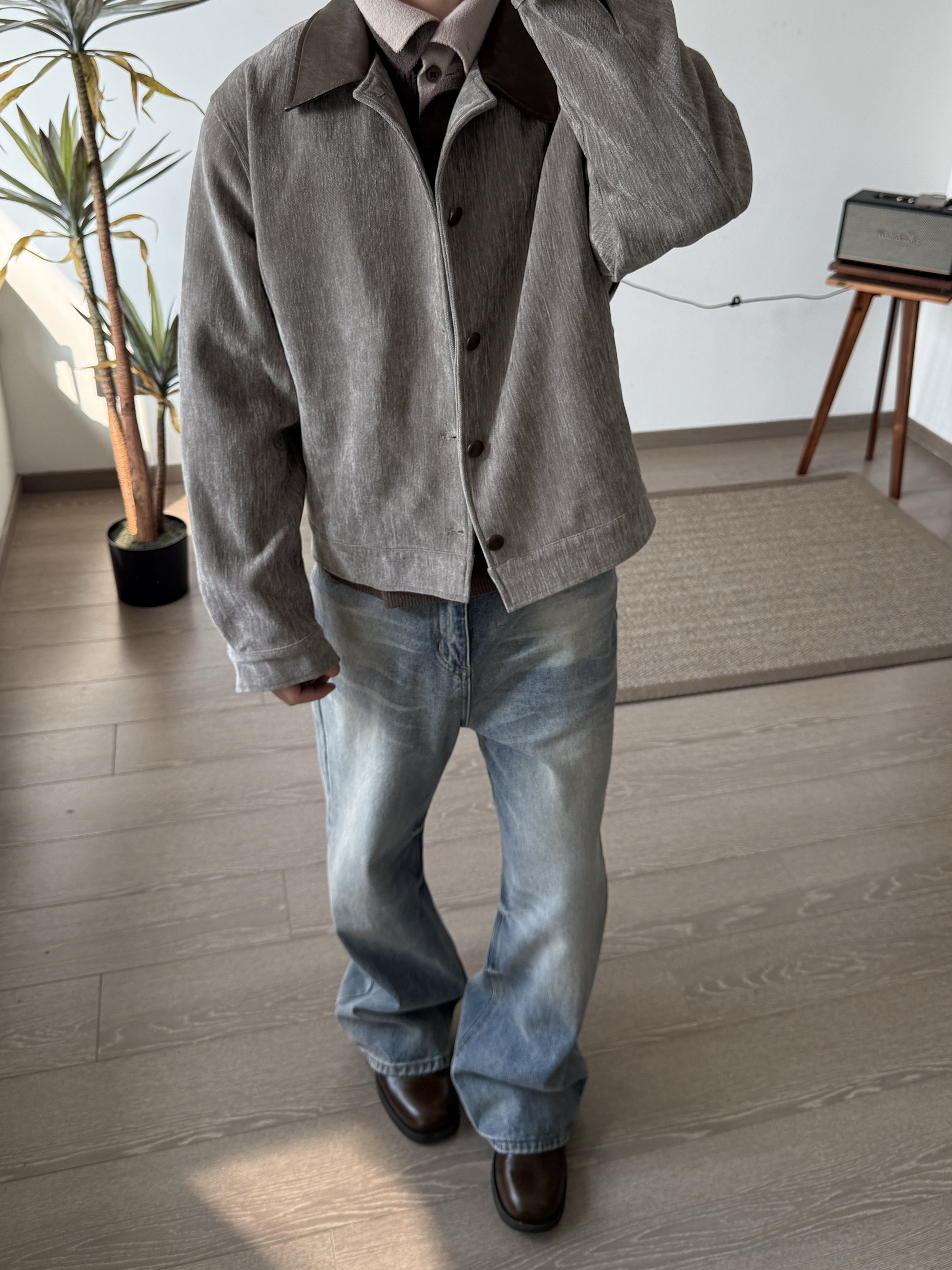 身高|体重:175/135 🧍♂️ 穿搭风格:简单 👔 上衣:麂皮夹克 👖 下装:cccyh 冰蓝牛 👟 鞋子:漆皮鞋