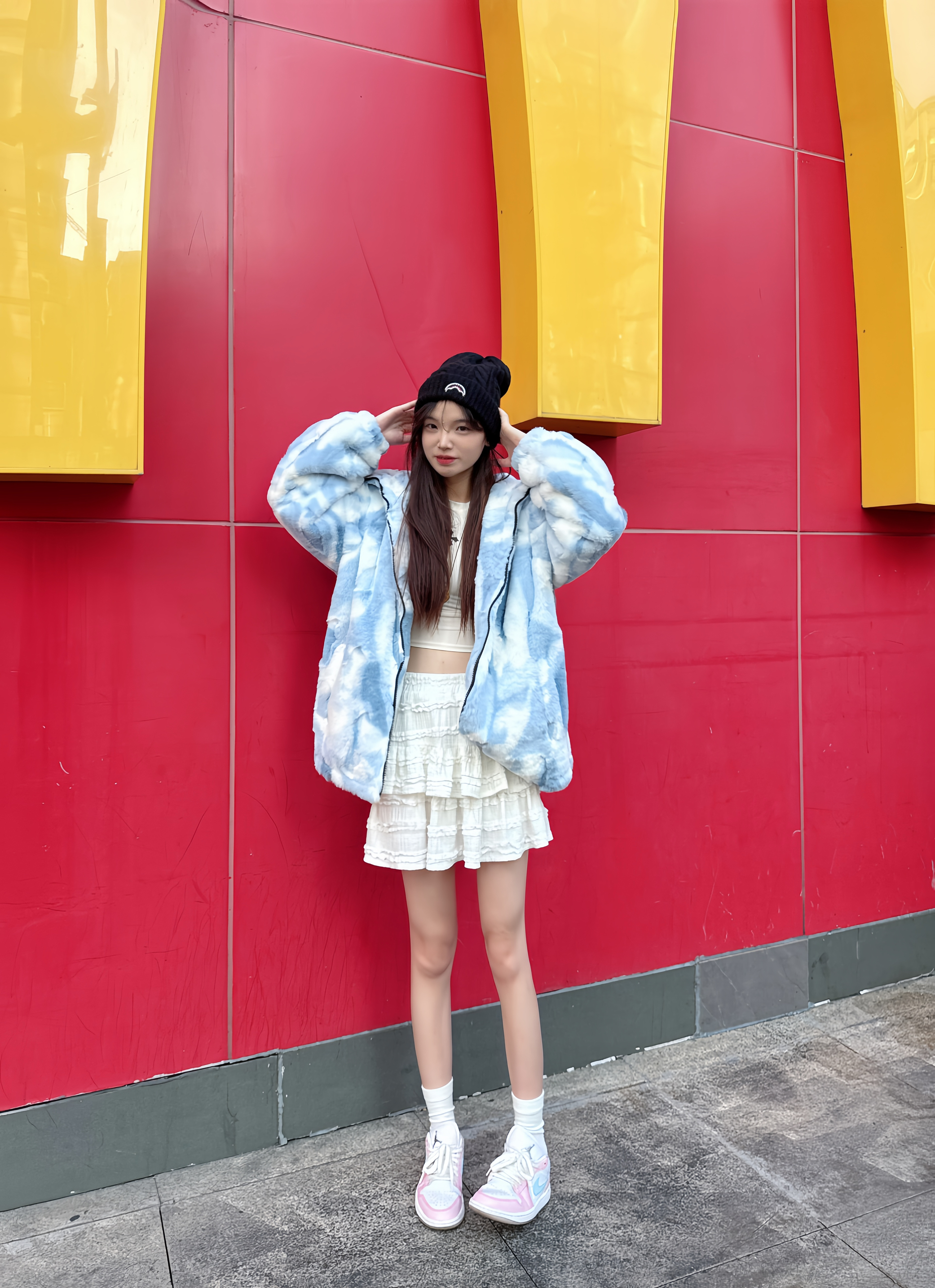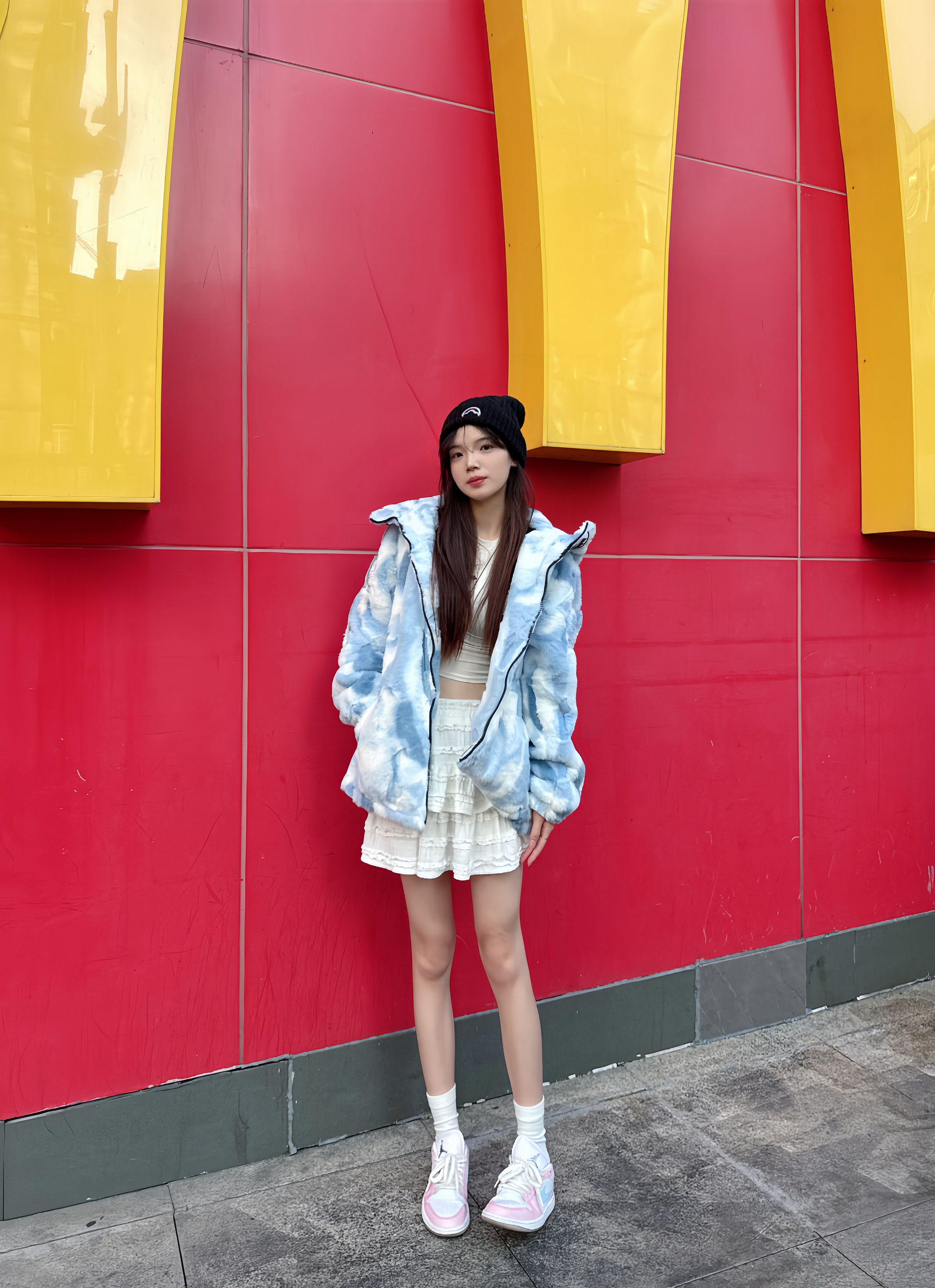 今日穿搭蓝色羊羔毛外套➕白色百褶裙 这套太清爽啦~ 🧥是 SPRAYGROUND 🏠的羊羔毛外套 上身嘎嘎舒服 质感没得说 它上面是鲨鱼嘴的刺绣🪡做工比较精致 宽松的版型不挑身材 毛绒亲肤穿起来不会扎人 日常搭配牛仔裤或者休闲裤都很nice👍 当情侣👫也超不错😌 我是166/43kg穿的是M码哦!