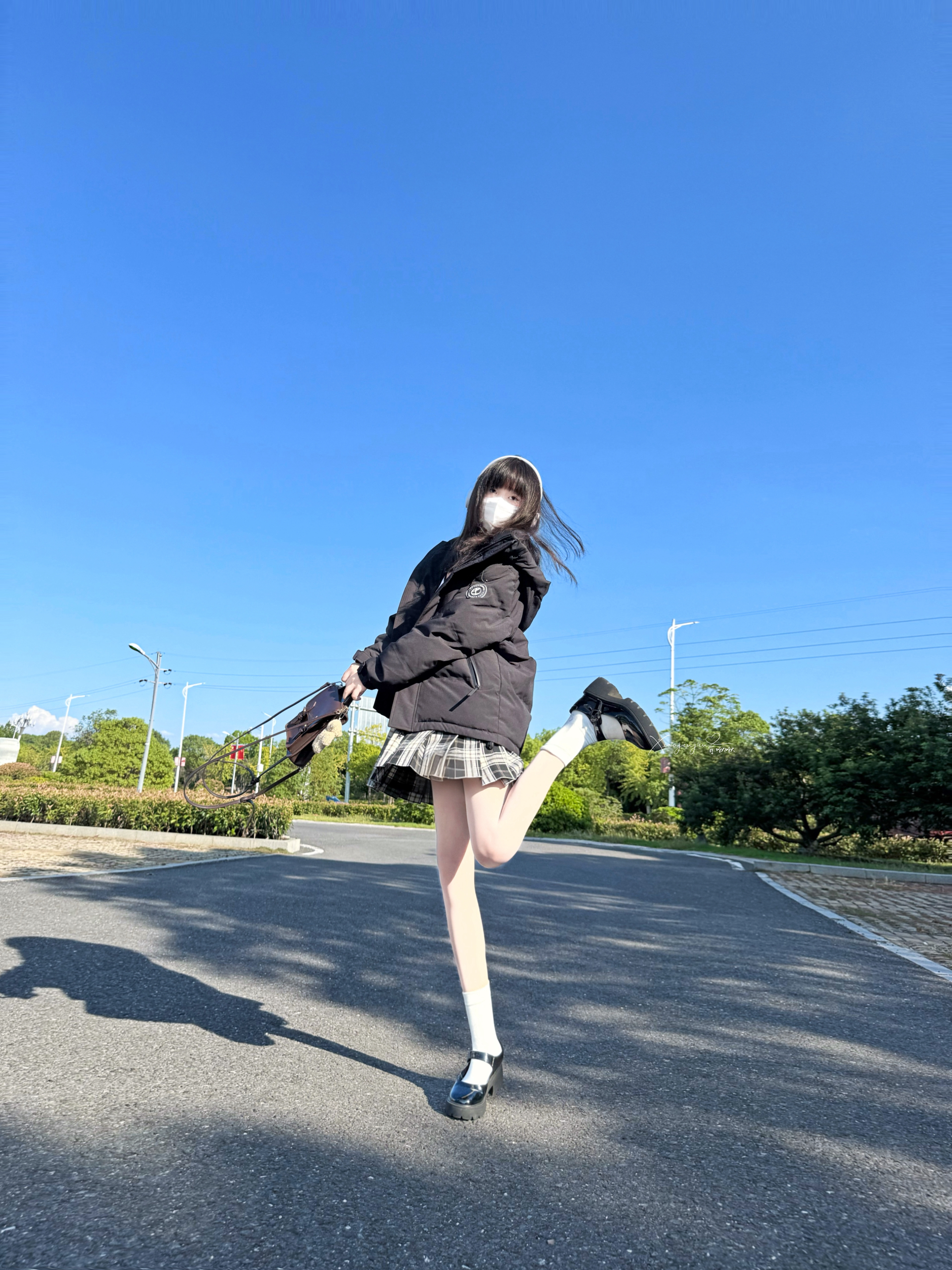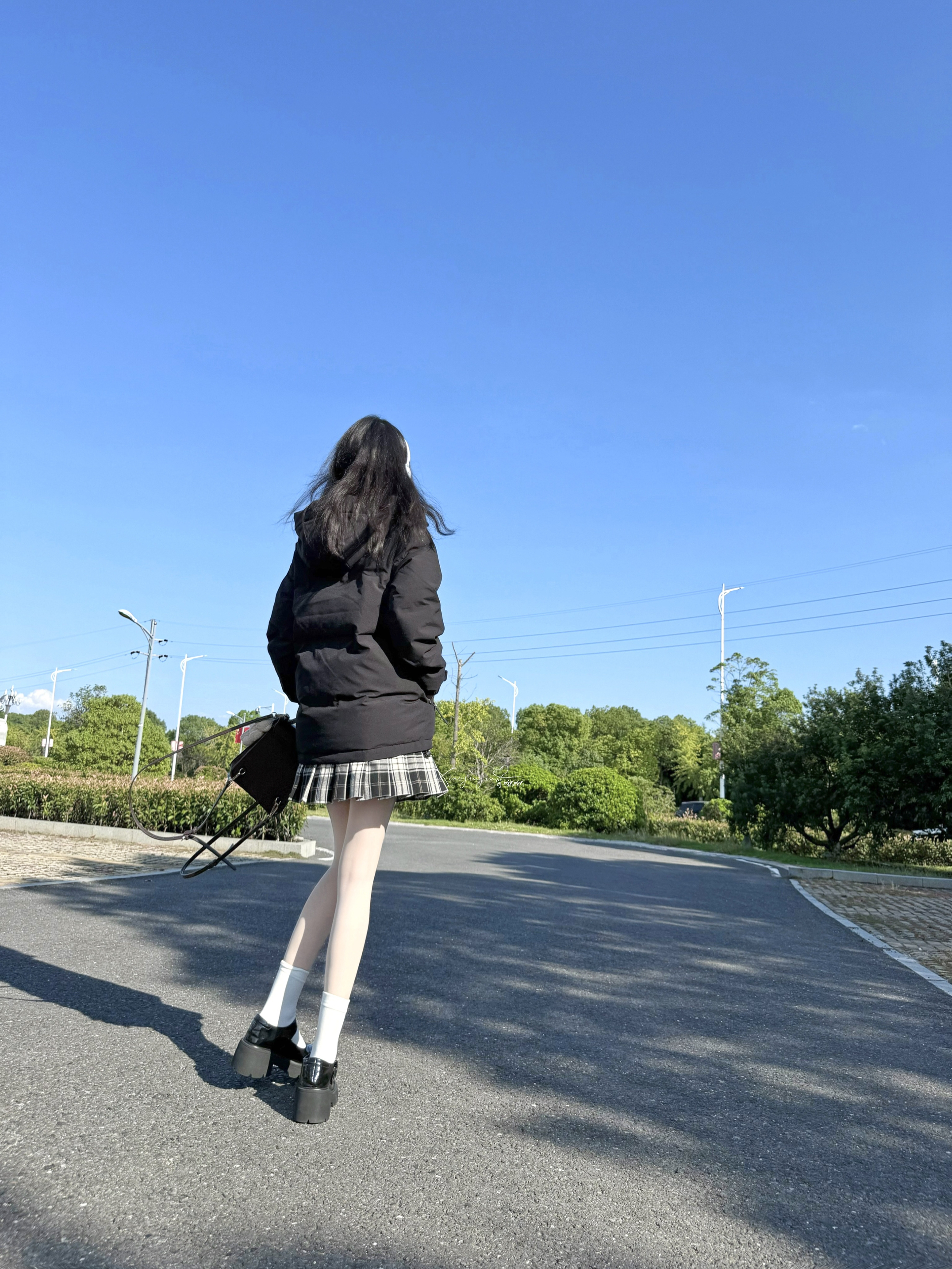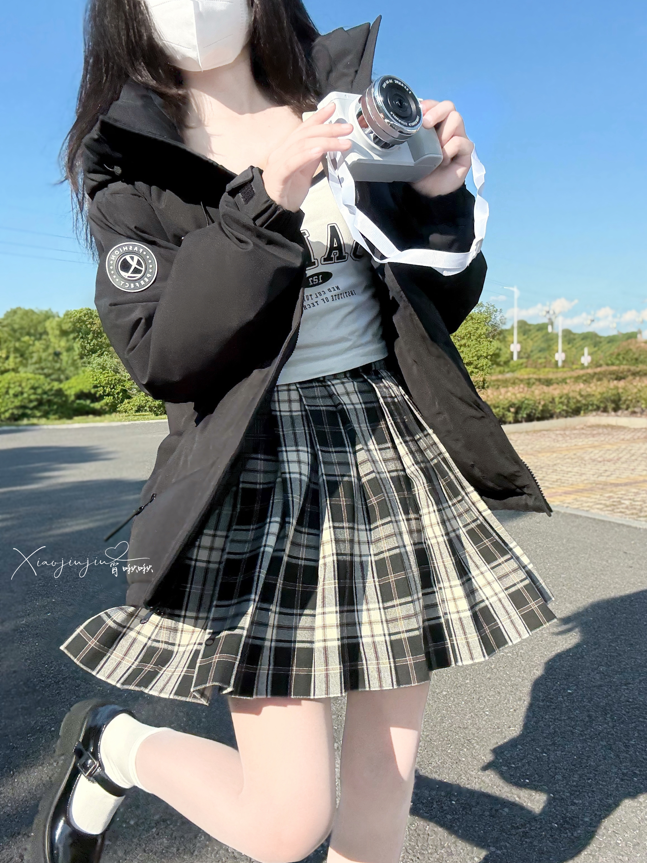 马上冬天啦 啾啾开始准备冬天的穿搭😌 俺挖了一件雪中飞羽绒服~ 搭配了黑色格子裙,是可爱青春女孩👧 羽绒厚厚的,这个冬天不怕冷了☺️