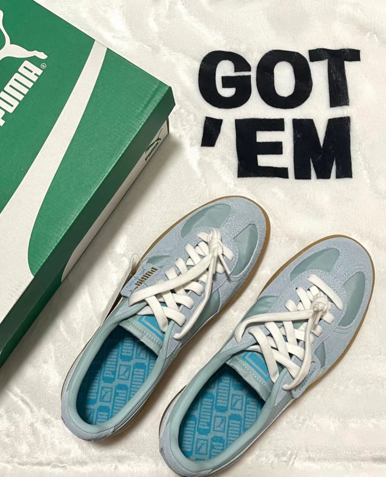本篇笔记关联了【朴彩英同款】 Puma/彪马 Palermo Og T头鞋 德训鞋 运动休闲鞋 时尚潮流拼接舒适百搭 浅蓝/白色等商品,为用户提供真实的使用体验和购买参考。