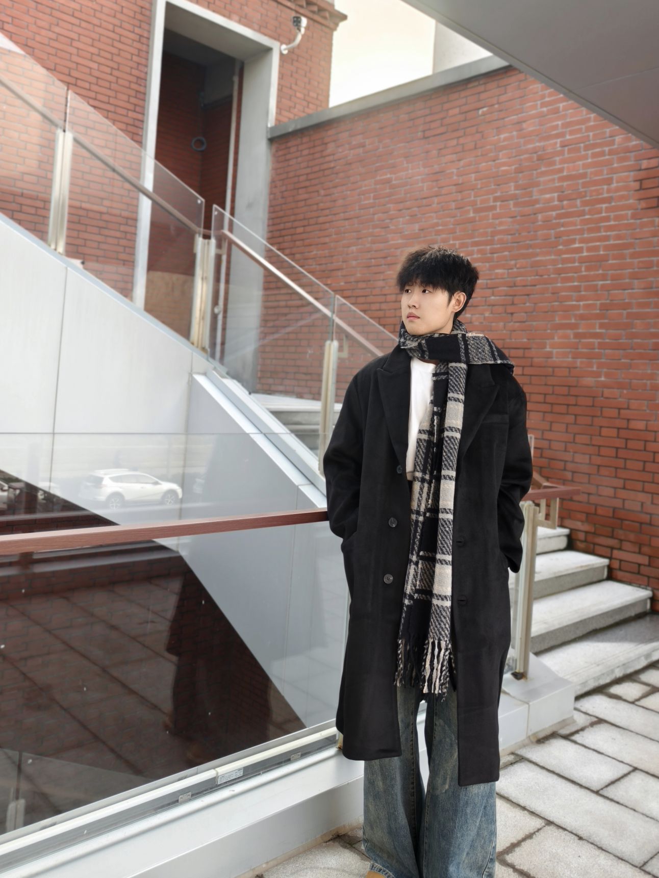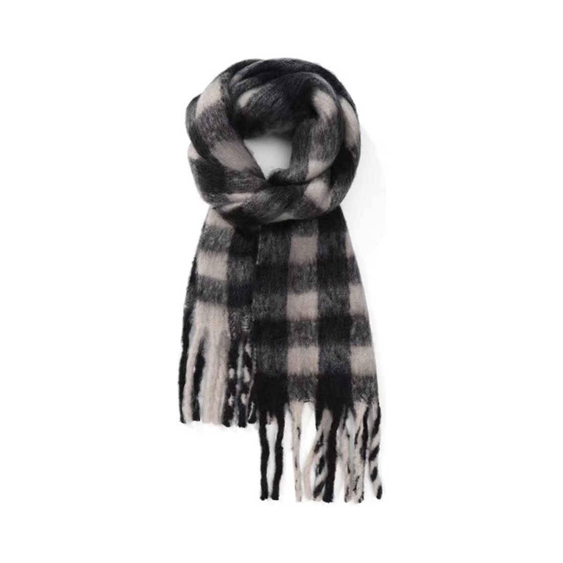 🧣“今天这身就靠这条围巾点睛。 格纹自带复古感,流苏细节让整体更灵动。 长度刚好到胸口,视觉上很显利落。 材质柔软亲肤,保暖性也够。 日常配黑大衣,不管是内搭白T还是高领毛衣,都能让你在保暖的同时,轻松拿捏住秋冬氛围感。”