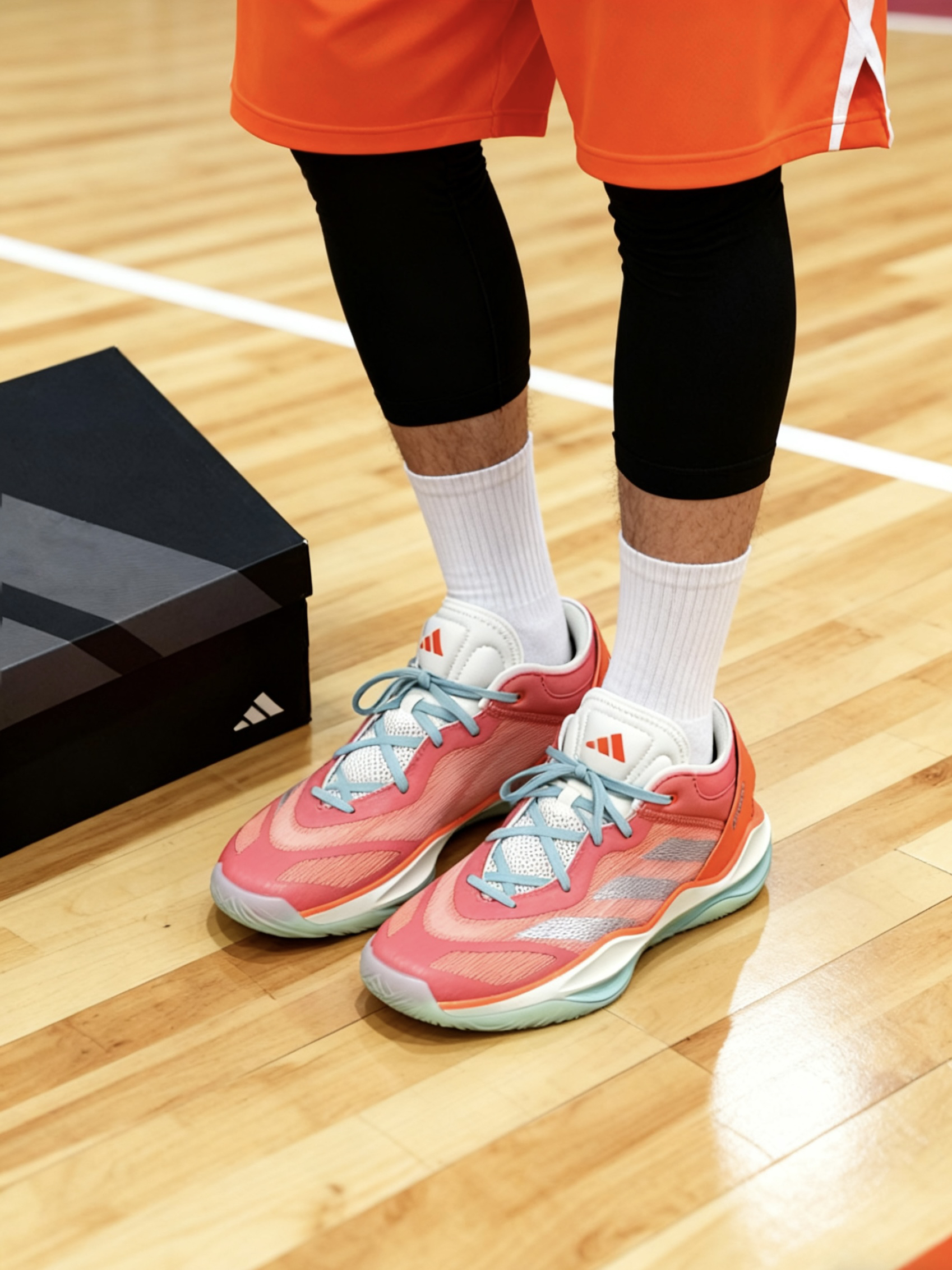 谁懂啊家人们!胡明轩专属PE款Adizero select 2.0,鞋面以锦鲤标志性的橙色为主调,鲜亮又吸睛,一眼就爱上了。而且在中国文化里,锦鲤寓意着吉祥、富贵、健康,上脚直接自带好运buff。细节也超戳人!后跟处印着胡明轩的3号球衣号码,瞬间点明PE款身份,球迷党狂喜!不管是实战上脚还是日常搭配,这双颜值+寓意双在线的球鞋。 实战优缺点也很明显 优点:优点就是小快灵活贴地,这双鞋也算是极致的薄...