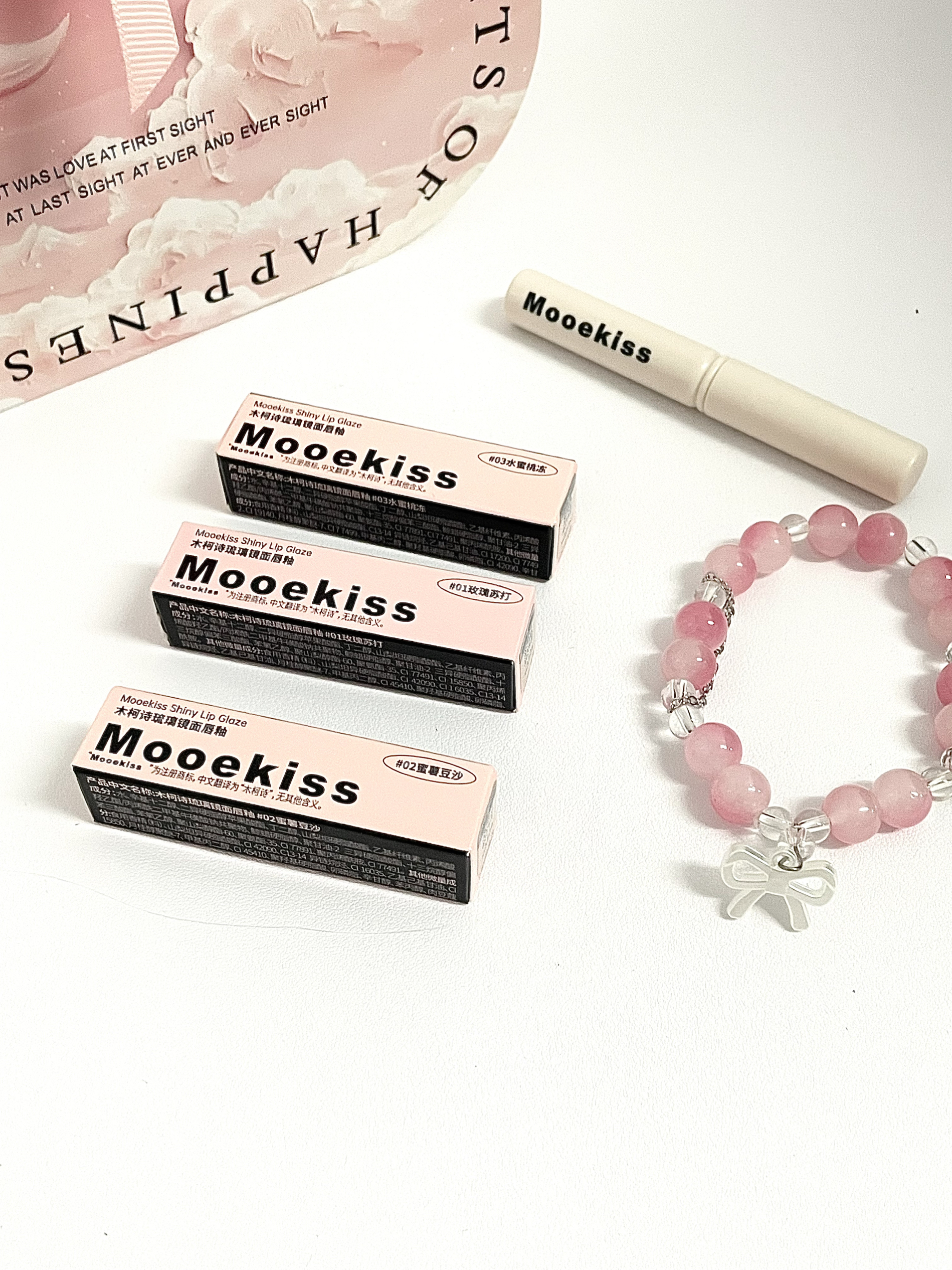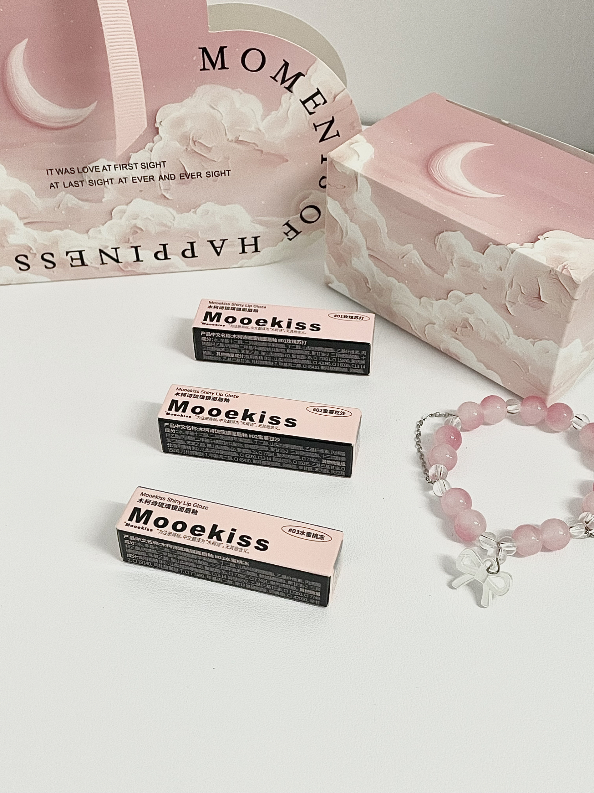 本篇笔记关联了Mooekiss/木柯诗 琉璃镜面唇釉套装 保湿滋润不掉色不沾杯 01玫瑰苏打 1g+02蜜薯豆沙 1g+03水蜜桃冻 1g+03桃汽水 1g、Mooekiss/木柯诗 怦然心动彩妆礼盒 甜美可爱浪漫控油易上色丝绒自然玻璃唇哑光亮泽 怦然心动B、Mooekiss/木柯诗 怦然心动彩妆礼盒 甜美可爱浪漫控油易上色丝绒自然玻璃唇哑光亮泽 怦然心动A等商品,为用户提供真实的使用体验和购买参考。