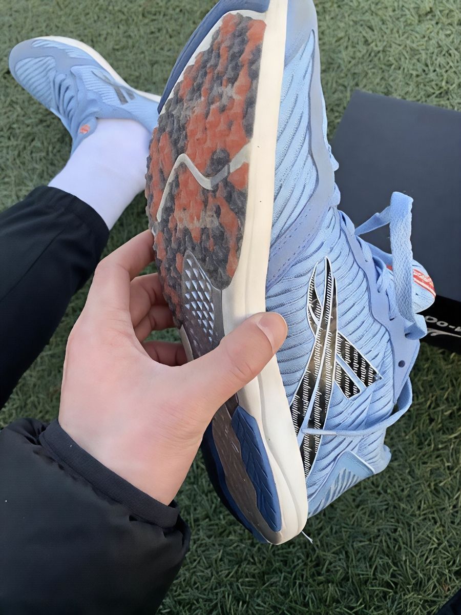 优点:体考训练直接焊在脚上 这鞋真的是为体育生量身做的——单只才202g,上脚跟没穿似的,跑100、800都轻得飞起来。前掌那PEBAX太顶了,硬邦邦但回弹巨明显,蹬地的时候能感觉到“助推”,练速度、跳跳远都给劲儿。 白蓝配色贼清爽,训练穿出去队友都问链接,鞋头防撞、后跟加固这些细节也到位,平时磕磕碰碰根本不怕。最绝的是防滑,上次体考碰雨天,踩湿跑道一点没滑;透气性也牛,练完一整节课脚都不...