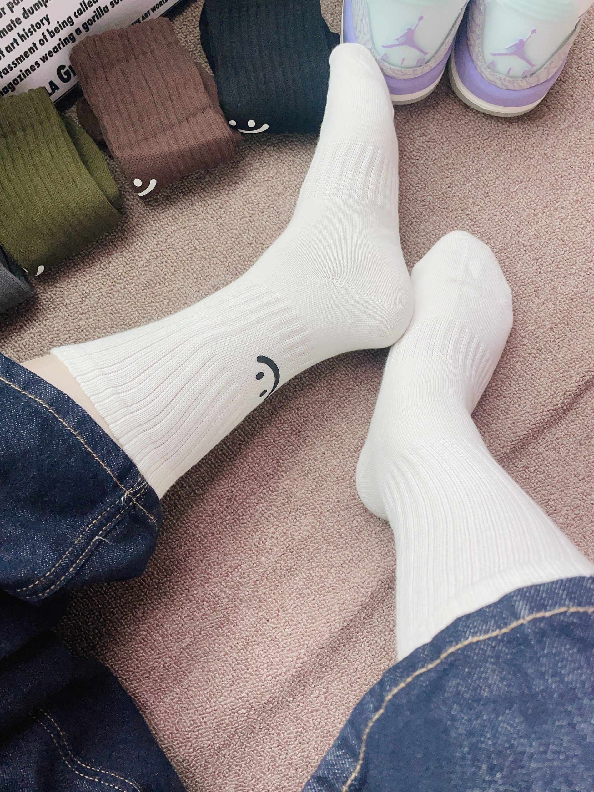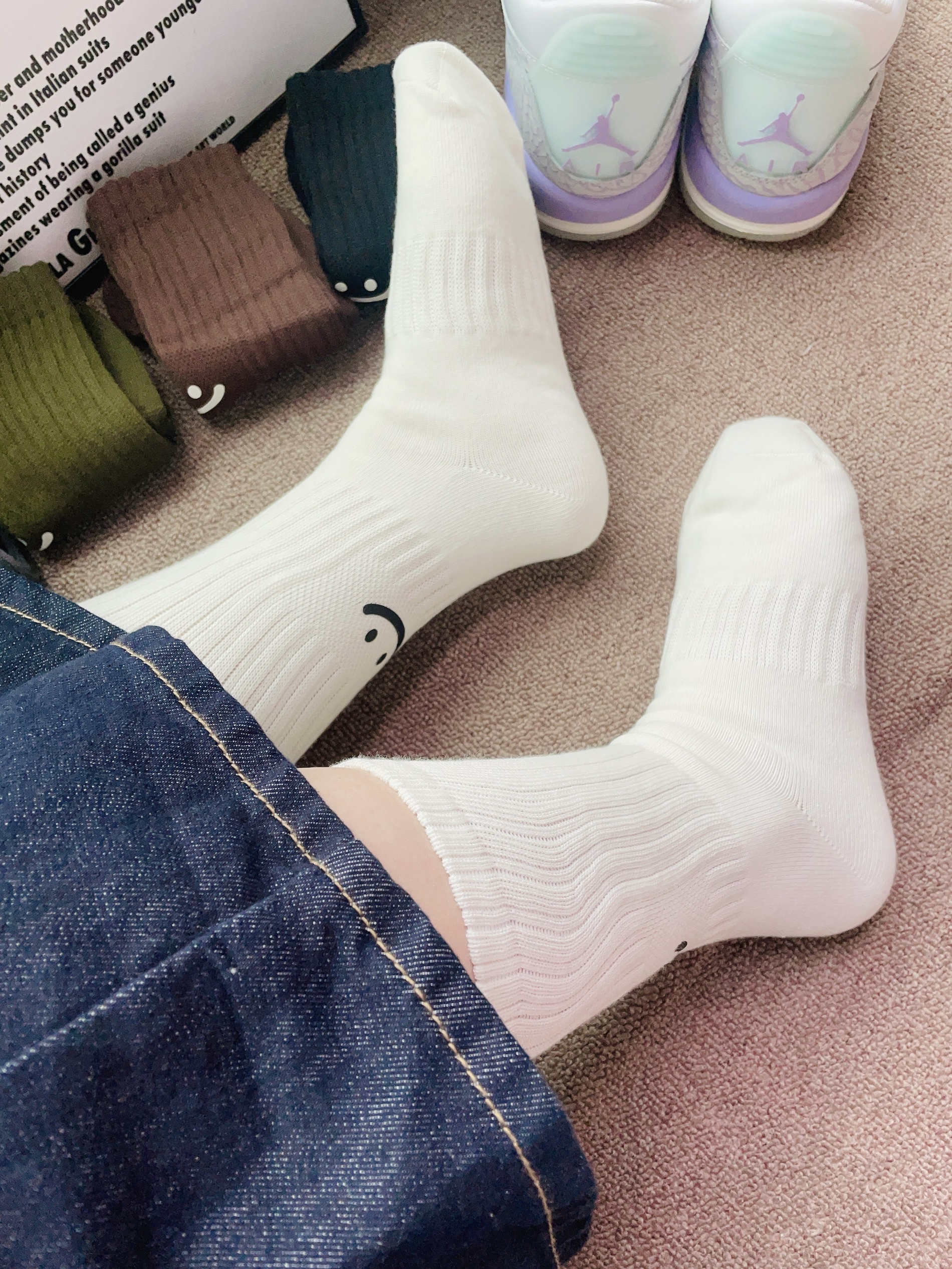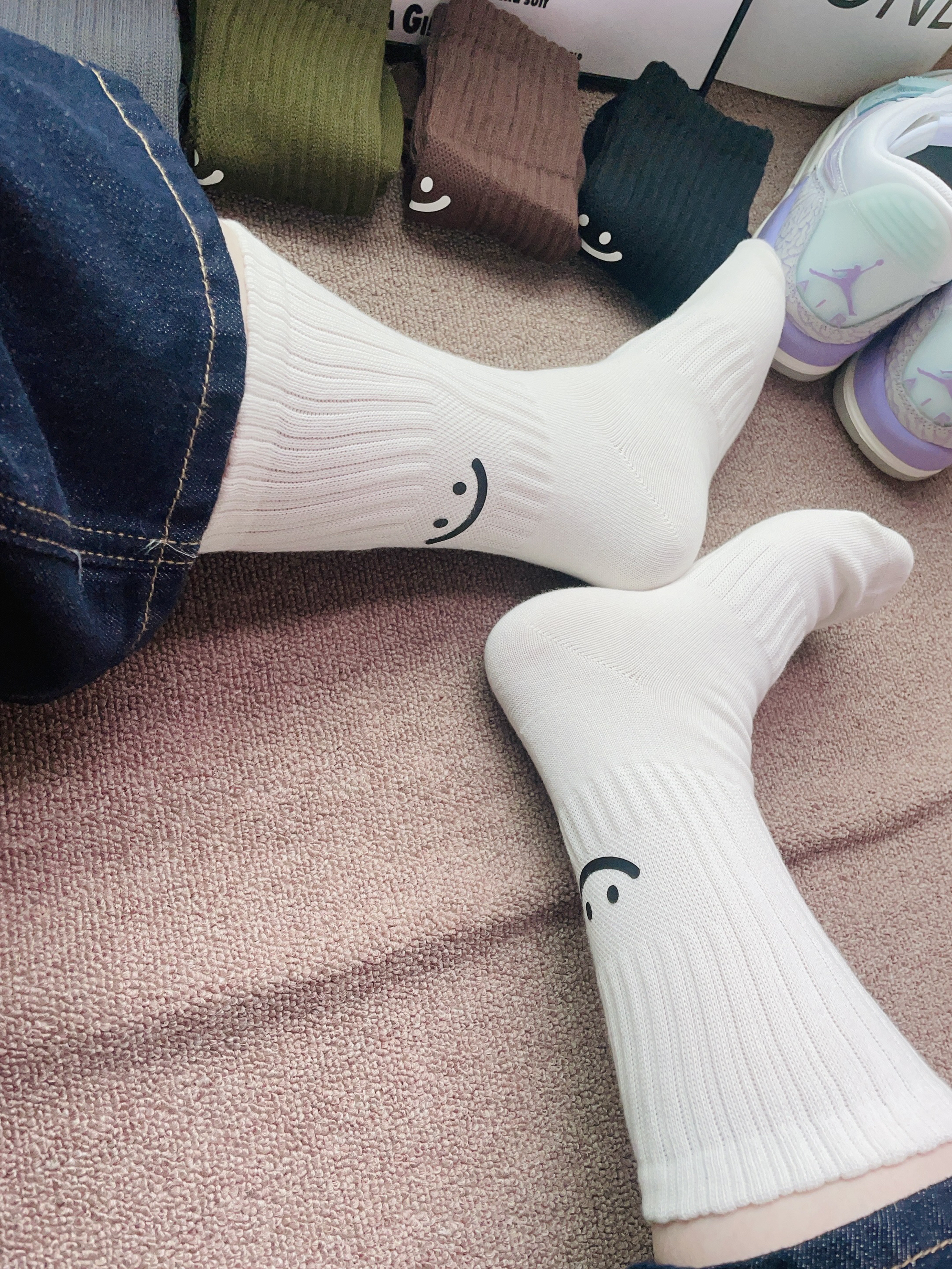 入冬啦天气比较冷每天都纠结穿什么袜子好 刚好又是双十一期间我给自己安排了新袜子 棉竹屋这款袜子配色好好看 摸着面料柔软厚实 图案可可爱爱的 上脚穿了舒服的蛮合适我的脚 细节做的可以 不会有多余的线头 秋冬天穿着它不会冻脚 日常通勤休闲随便搭空军鞋都可以