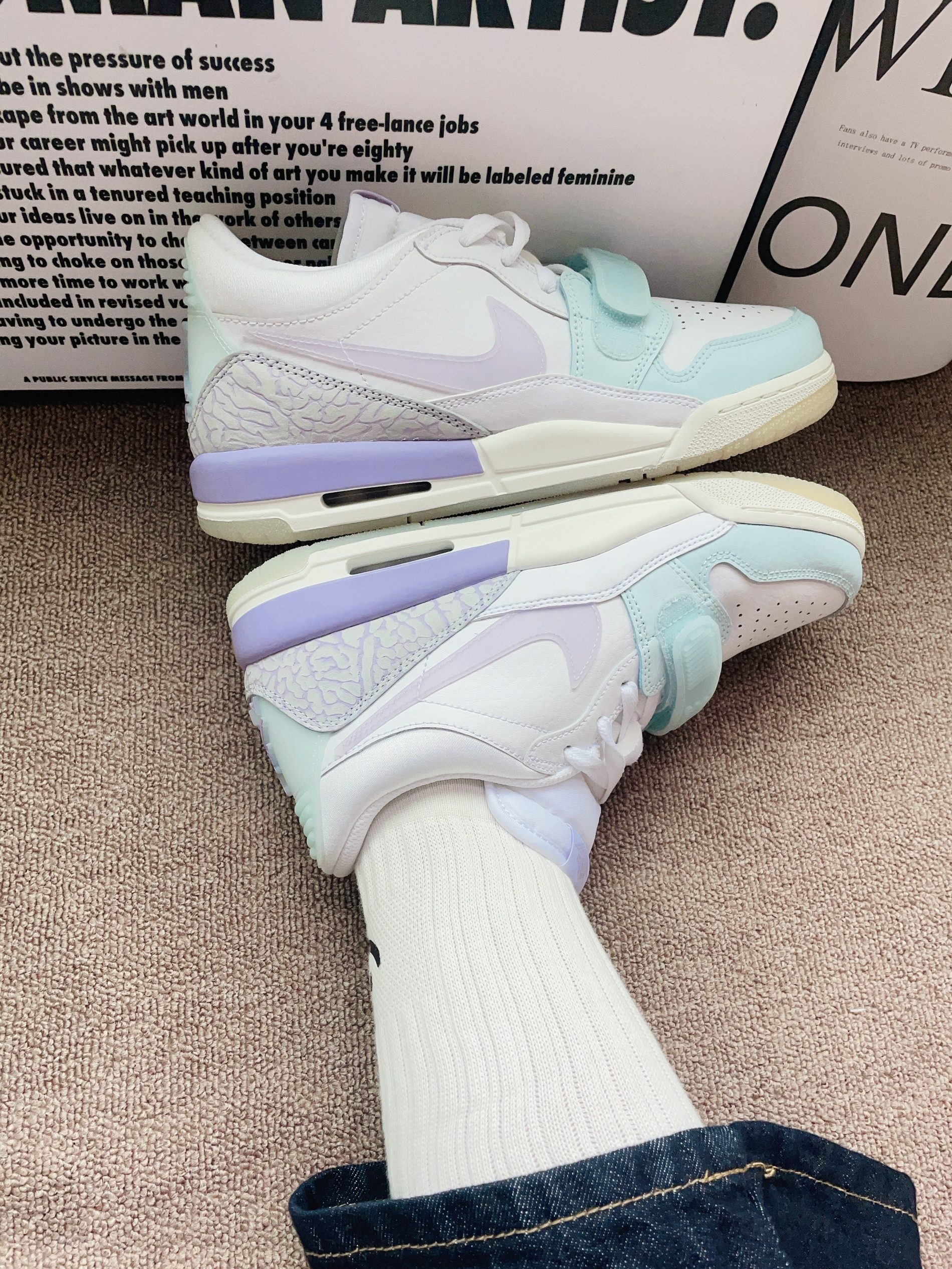 本篇笔记关联了Air Jordan Legacy 312 板鞋 运动休闲鞋 三合一魔术贴缓震复古回弹合成革 GS/白色/绣球花紫/冰川蓝等商品,为用户提供真实的使用体验和购买参考。