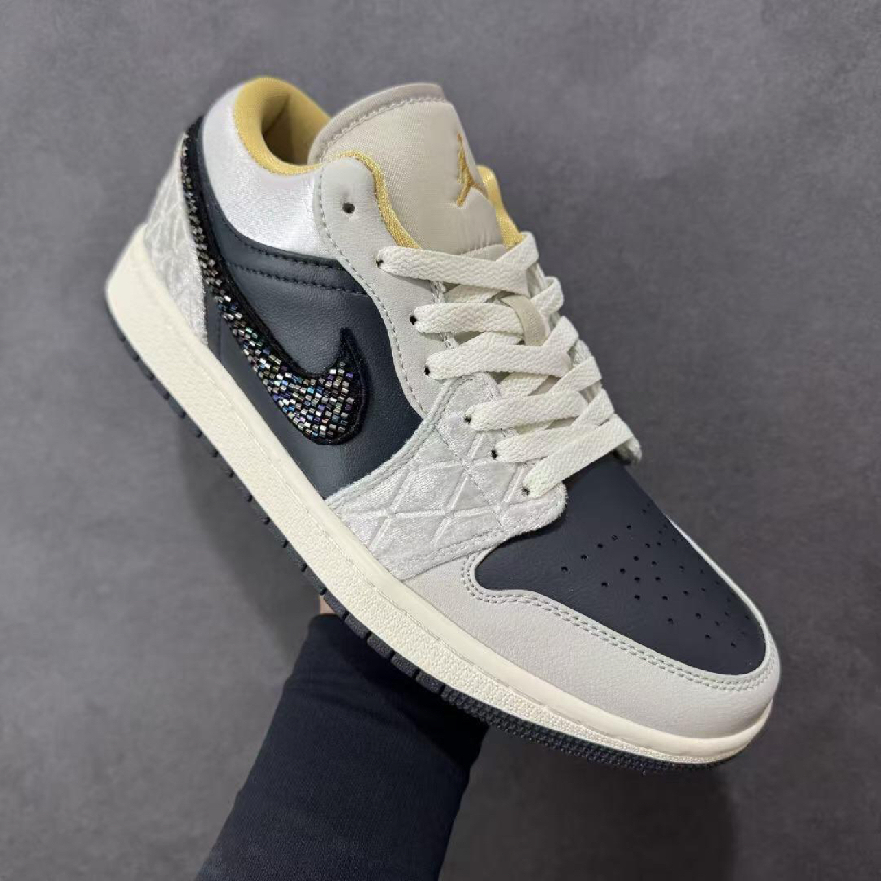 本篇笔记关联了Air Jordan 1 板鞋 运动休闲鞋 复古潮流支撑合成革 低帮/黑灰绸缎/彩虹串珠等商品,为用户提供真实的使用体验和购买参考。