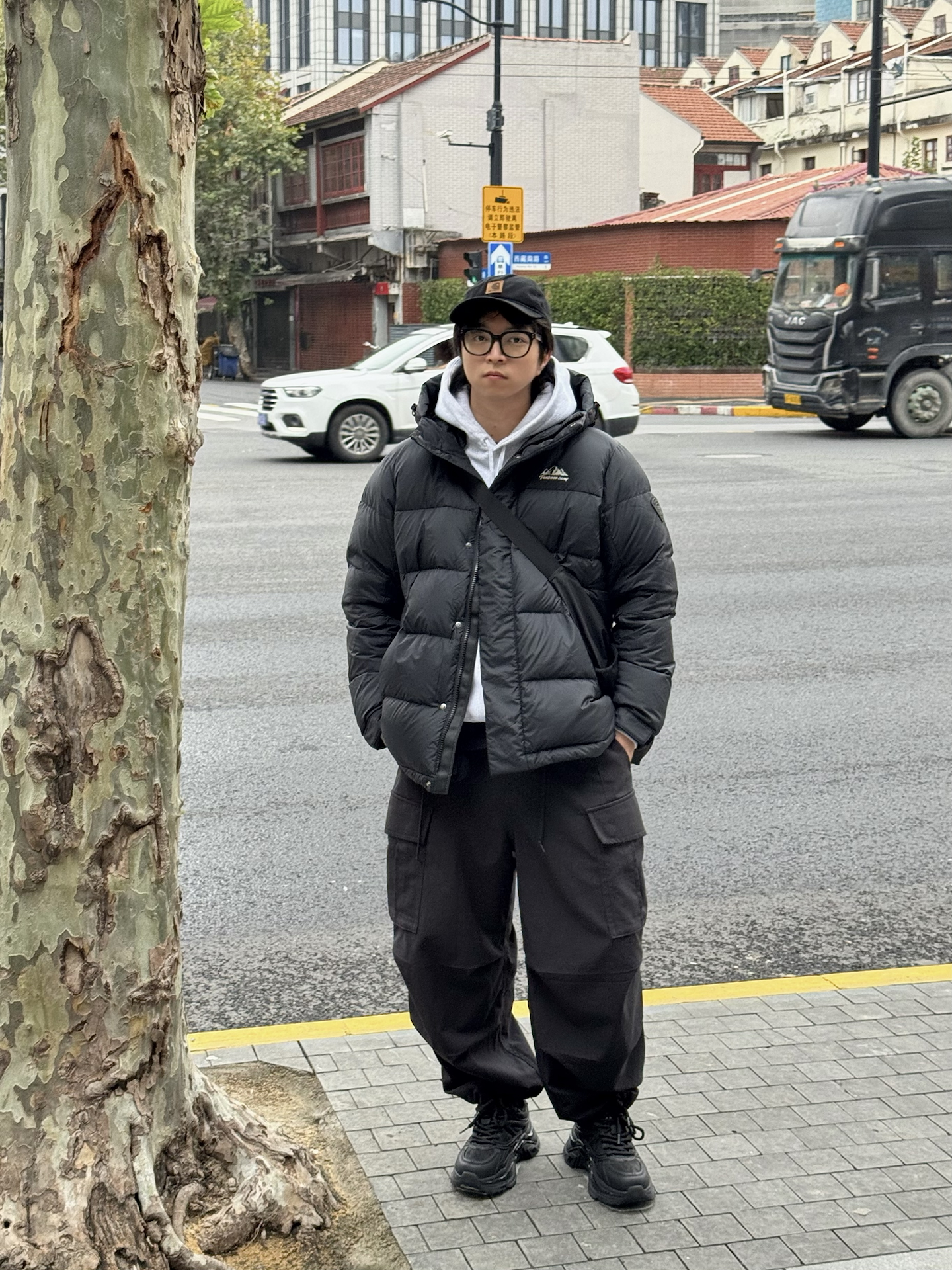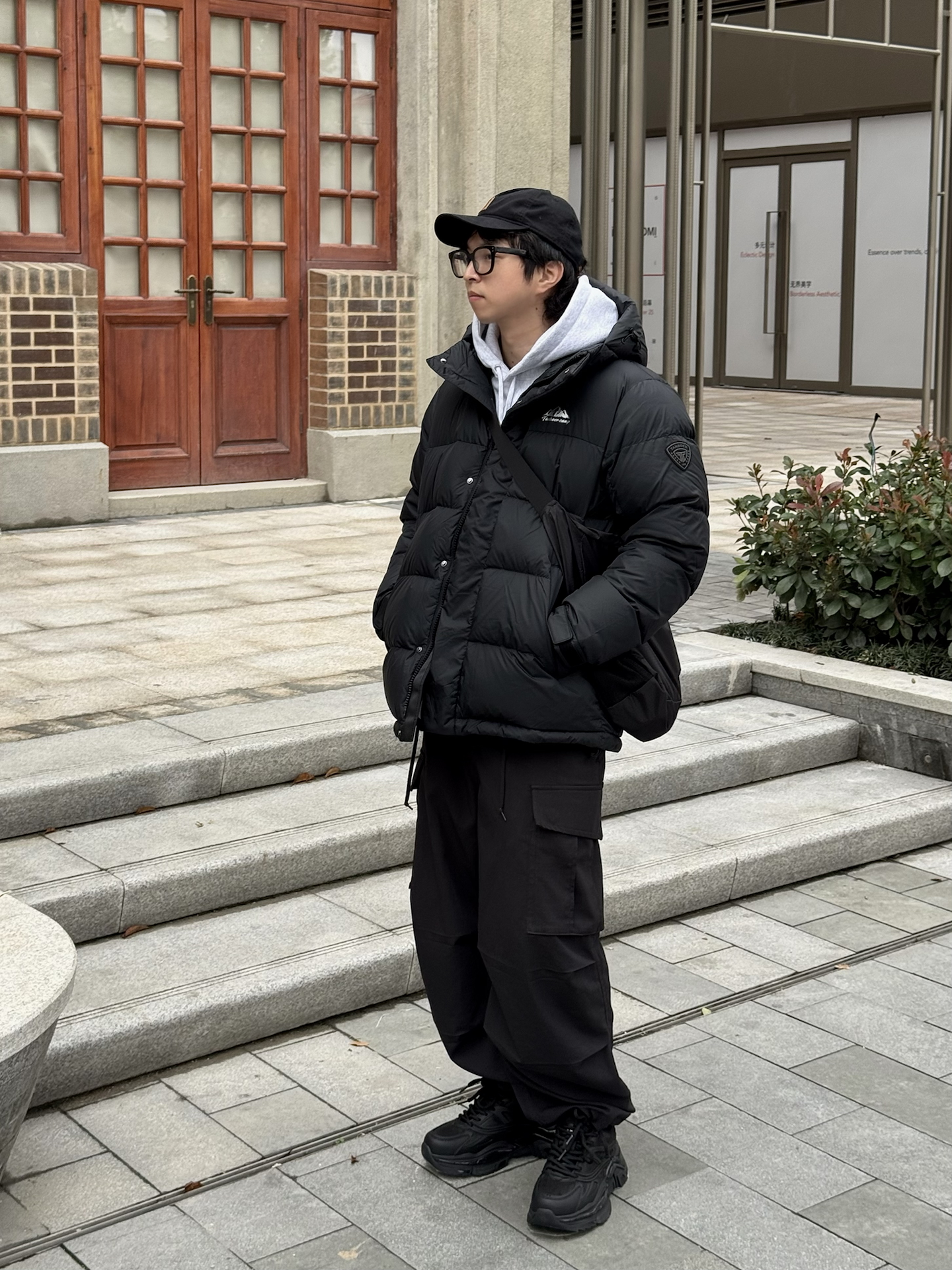 哈喽👋🏻大家好哇 这里是🪨石地夫的穿搭小日记📝 - 这几天降温好快🥶 羽绒服穿搭需要赶紧安排上🔥 今天穿的全黑面包羽绒服🍞 90充绒量妥妥的保温神器,上身好蓬松啊✨ 我特别喜欢防风的高领口设计☑️ 日常通勤遇上大风天也不怕了🌬️ - 内搭我选择了一件灰色连帽卫衣叠穿 这样穿更显年轻和层次感💫 下身搭配全黑工装裤和老爹鞋👟 这样一套OOTD不用费脑子去考虑就能高效出门🫡 真的又耐看又实穿♨️ #冬日...