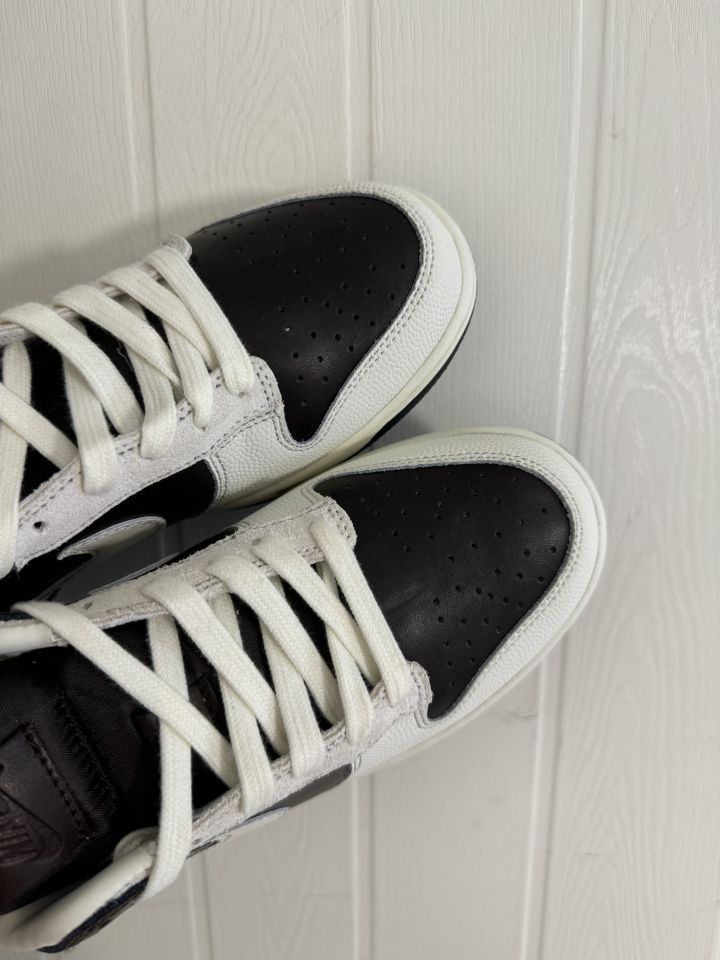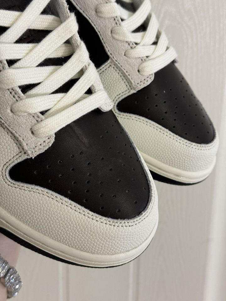 棕+黑+米白的配色也太高级了吧!裂纹Swoosh+荔枝纹皮料,摸起来软乎乎还自带做旧质感~鞋舌那个十字缝线小细节真的很戳!上脚是那种不费力的松弛感,配牛仔裤/运动裤都巨搭! 谁穿谁是美式复古剧里的松弛感美女!今天的快乐是新鞋给的✨