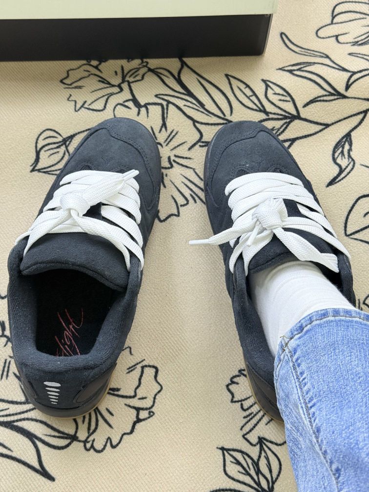 这双Jordan鞋的麂皮质感挺舒服,配白鞋带显得干净,搭牛仔裤或休闲裤都不违和😊脚感方面,鞋底不算软但支撑性够,日常通勤走个万步也不会太累。 不过有个小缺点:麂皮太容易沾灰,尤其是藏青色这种深色,落上白灰会很明显,得经常用软毛刷打理。另外鞋型偏窄,脚宽的朋友穿久了会有点挤脚。 胜在它的风格低调不张扬,算是鞋柜里“随便穿都不出错”的款。要是你喜欢这种简约复古调调,不介意偶尔打理鞋子,倒是可以...