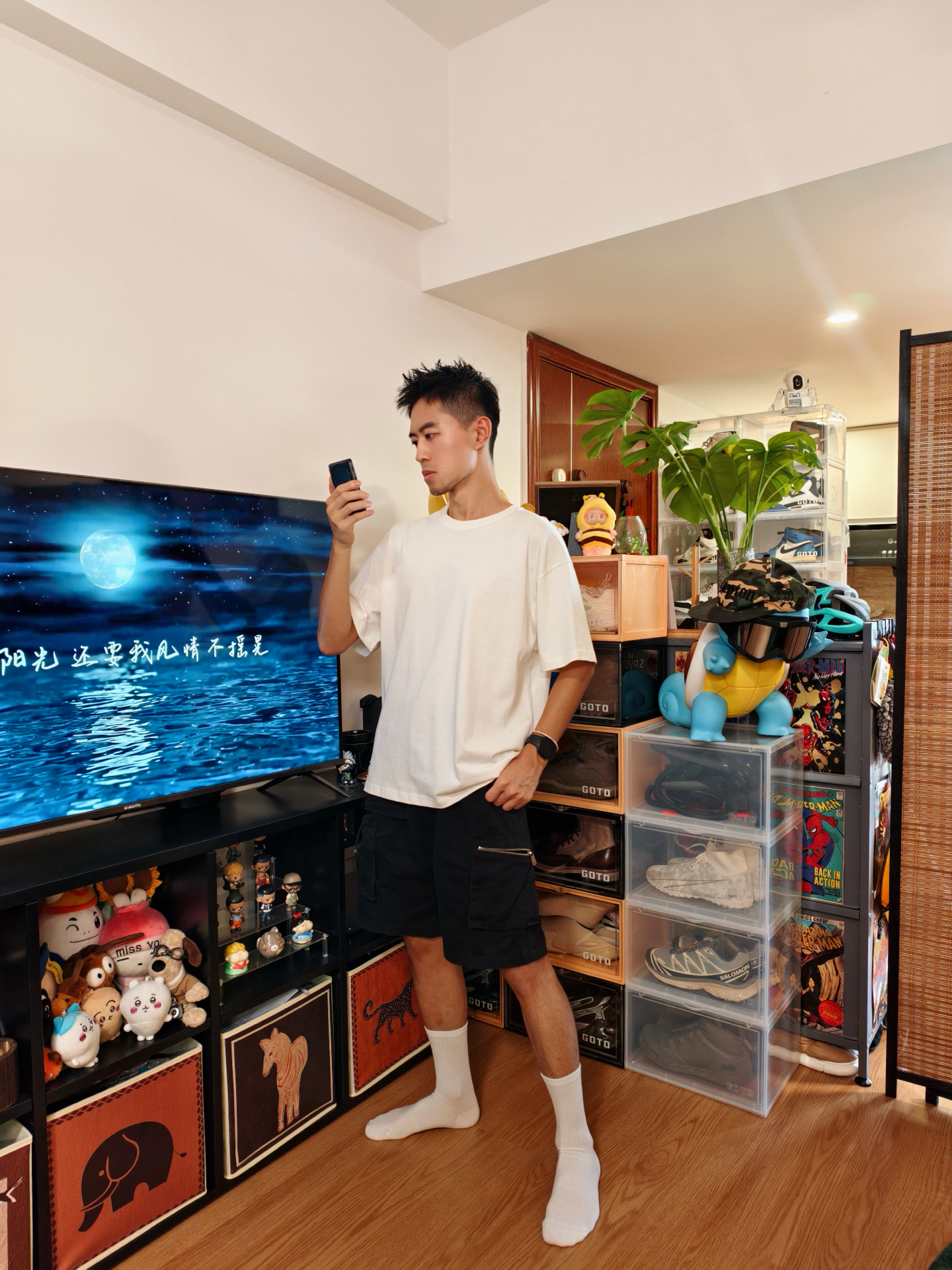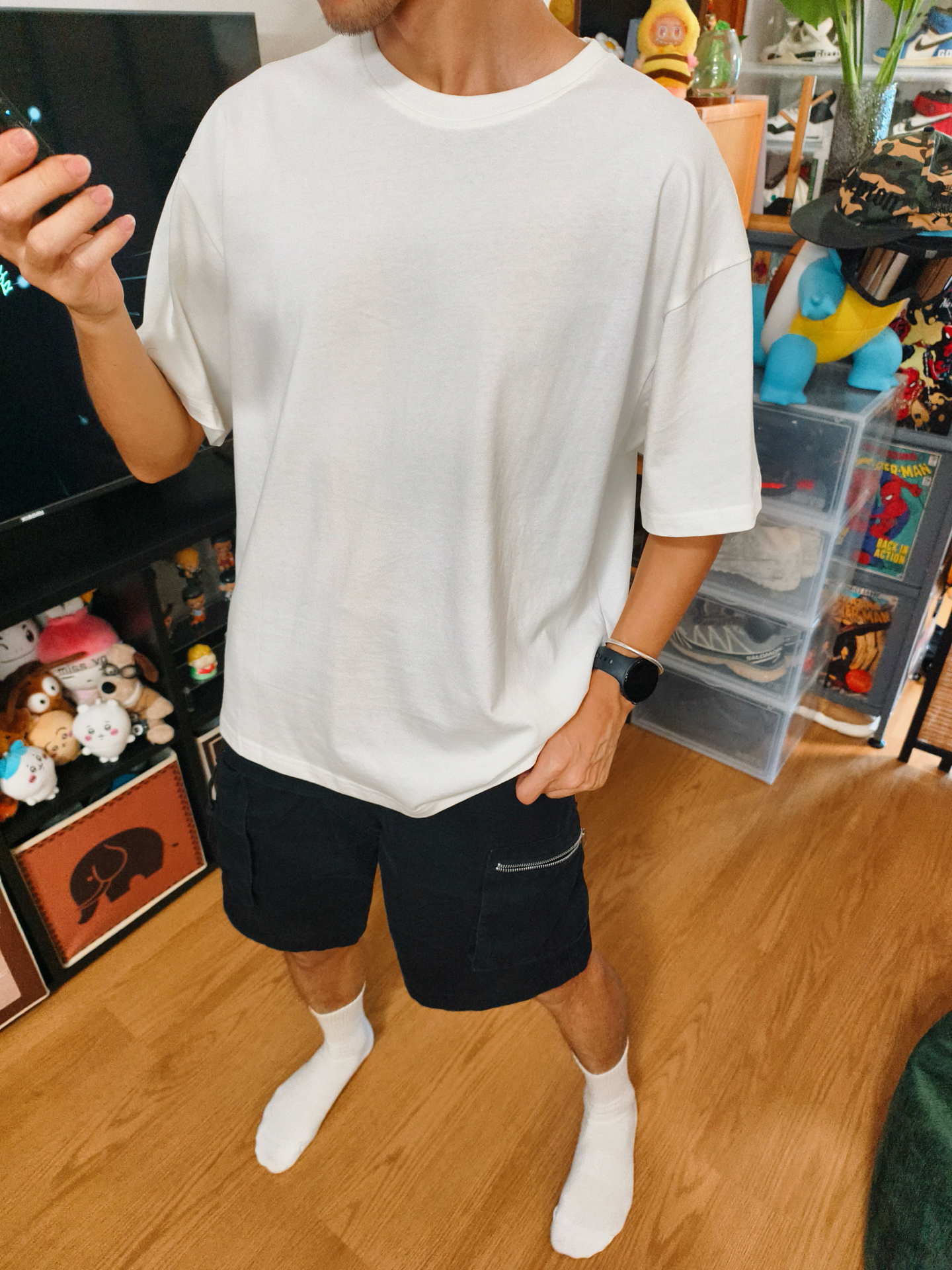 👕白色短袖T恤版型宽松随性,垂坠感在线不拖沓,面料软乎乎的贴肤不闷,日常居家或轻出门买个东西都适配,松弛感一下就到位了。 🩳黑色工装短裤细节感在线,口袋设计实用不杂乱,版型宽松无束缚,活动时蹲起都自在,舒适与造型感双拿捏。 🧦白色中筒袜干净利落,和整套穿搭色调形成反差又不突兀,贴合脚踝不滑落,日常穿既清爽又不拖沓。 – #特别强推的一款袜子 #双十一这件我必买 #宝藏运动袜子分享 #棉竹屋袜子...