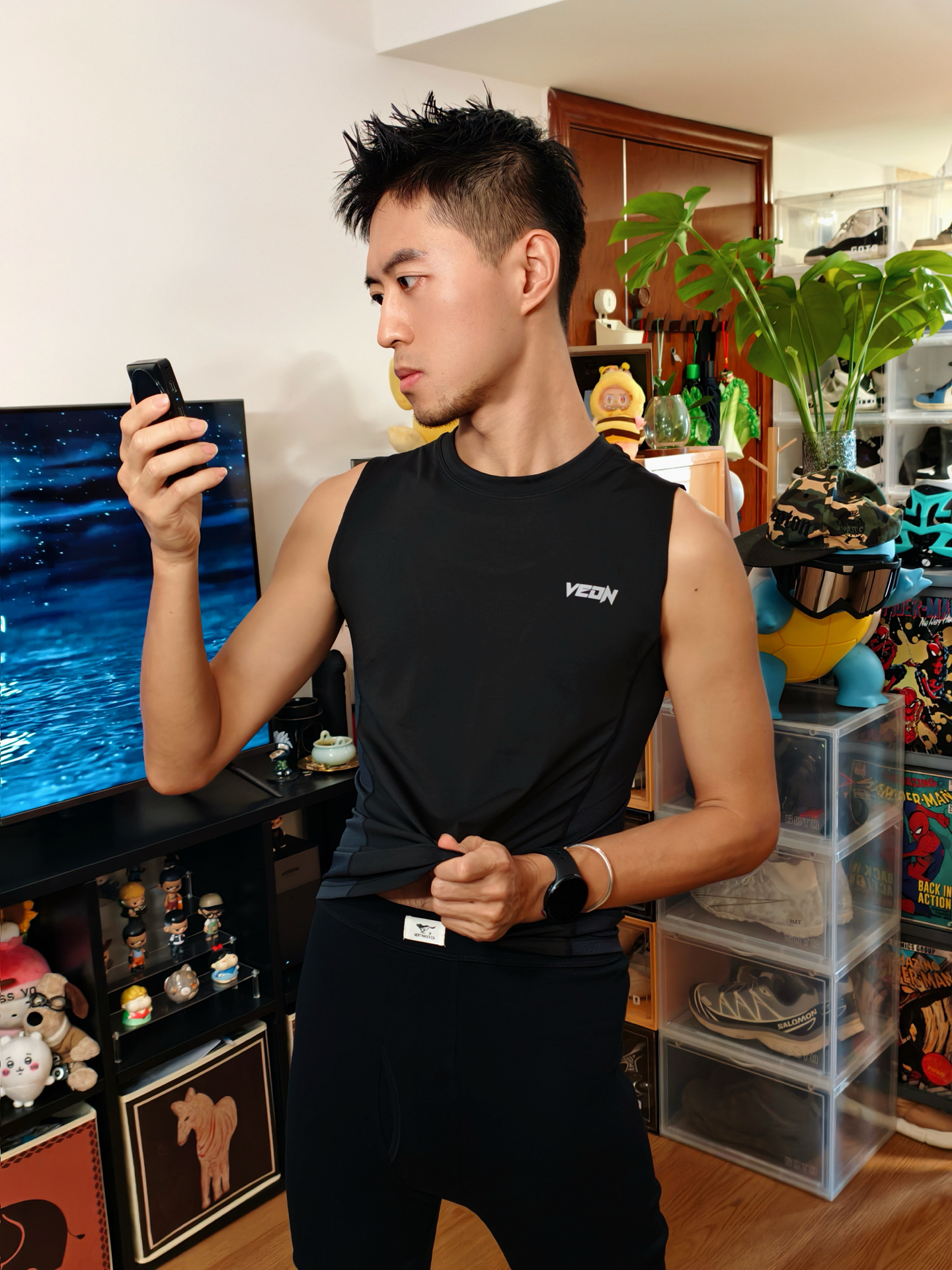 🎽黑色无袖背心版型贴合不紧绷,面料软乎还透气,居家穿刚好能露出点线条,松弛感一下就到位了。 🩳这条秋裤是核心加分项——厚度刚好适配秋冬室内的凉意,面料贴肤不扎腿,弹力够足蹲坐都不勒,裹在身上暖乎乎的但不闷,作为居家内搭舒适感直接拉满。 整套黑调搭配利落耐看,秋裤的保暖细节刚好踩中秋冬居家的需求,不用费心思就能穿出舒服的氛围感✔️ – #七匹狼保暖裤 #抗静电内衣 #7A抗菌内衣 #降温要换新装...