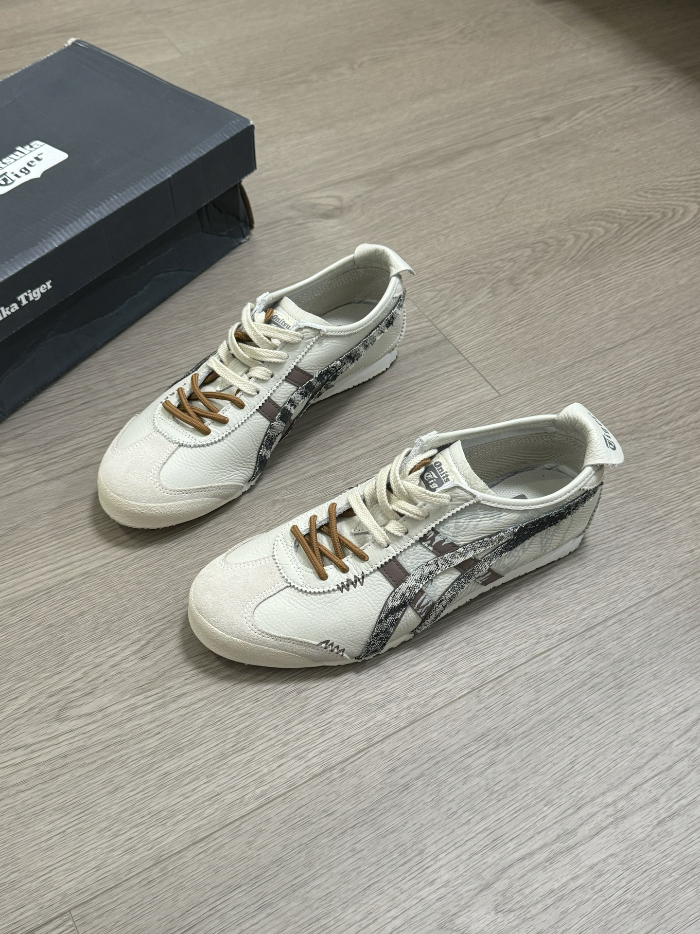 果然时尚是个圈 今年又开始流行薄底鞋了 今天就给你们分享一双 我觉得特别好穿的鬼塚虎薄底鞋~ 鞋身配色挺特别的 是这种原木色 加上灰色和咖色点缀 看起来我觉得就很复古风 日常搭配 很适合一些宽松的裤子 而且虽然是一双薄底鞋 但脚感很舒服 穿起来的感受挺软的 又有一种赤足的灵活感 #秋日鞋履焕新指南 #交出你的鞋靴链接 #踏秋暴走鞋 #万花弄 #万花弄定制鞋