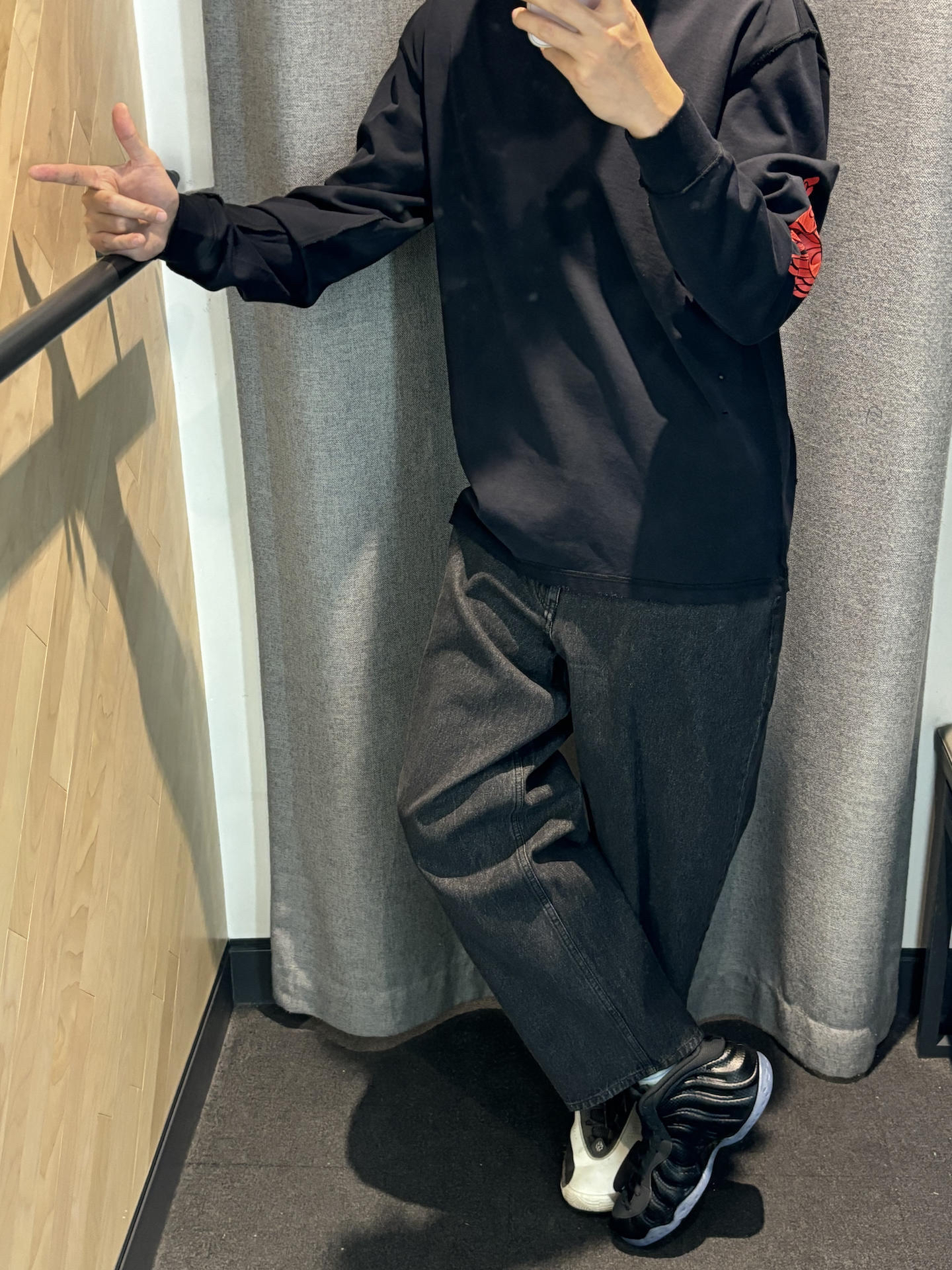 #总觉得双11差双鞋 设计灵感 鞋面采用碳纤维纹理,灵感源自顶级跑车,搭配全黑配色(黑武士风格),耐脏且百搭 科技元素 延续Foamposite系列的发泡材质鞋面,碳纤维纹理增强视觉冲击力与耐用性 👖王嘉尔同款 👟耐克碳纤维喷 👔jordan破洞风长袖