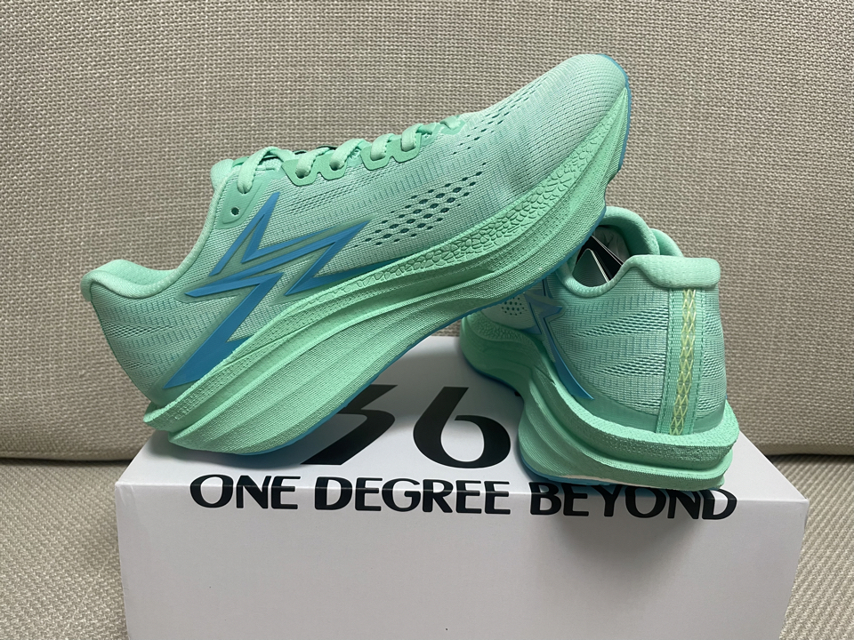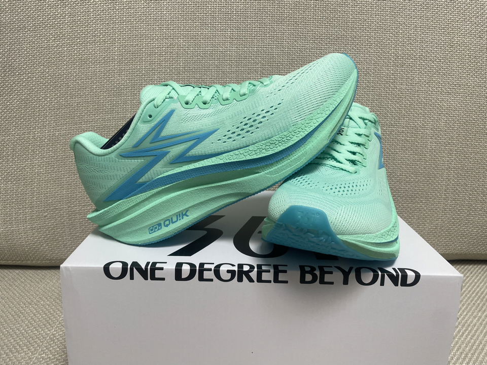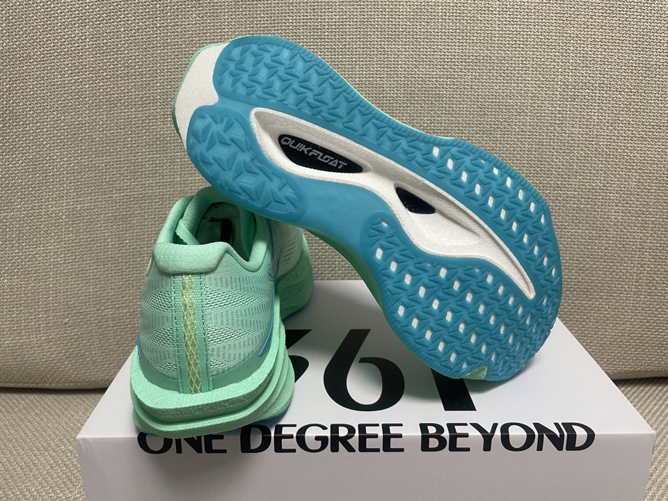 鞋子型号: 361° 飞燃4.5MIX 低帮 碳板 长跑训练跑步鞋 货号:672532217F-6 👟外观:鞋子整体由绿色透气贾卡织布覆盖,左侧、右侧、前侧由韧性十足的轻薄覆盖,显得十分轻薄,鞋带处与鞋跟处由轻薄的柔性材料组成,在尽可能轻的设计下增加了与脚的接触舒适性。鞋底则有抗扭炭板、缓震层、防滑层组成。在厚实加宽的缓震层中做了漏空处理,能够在中间直接看到炭板的情况,此设计减轻了重量但不...