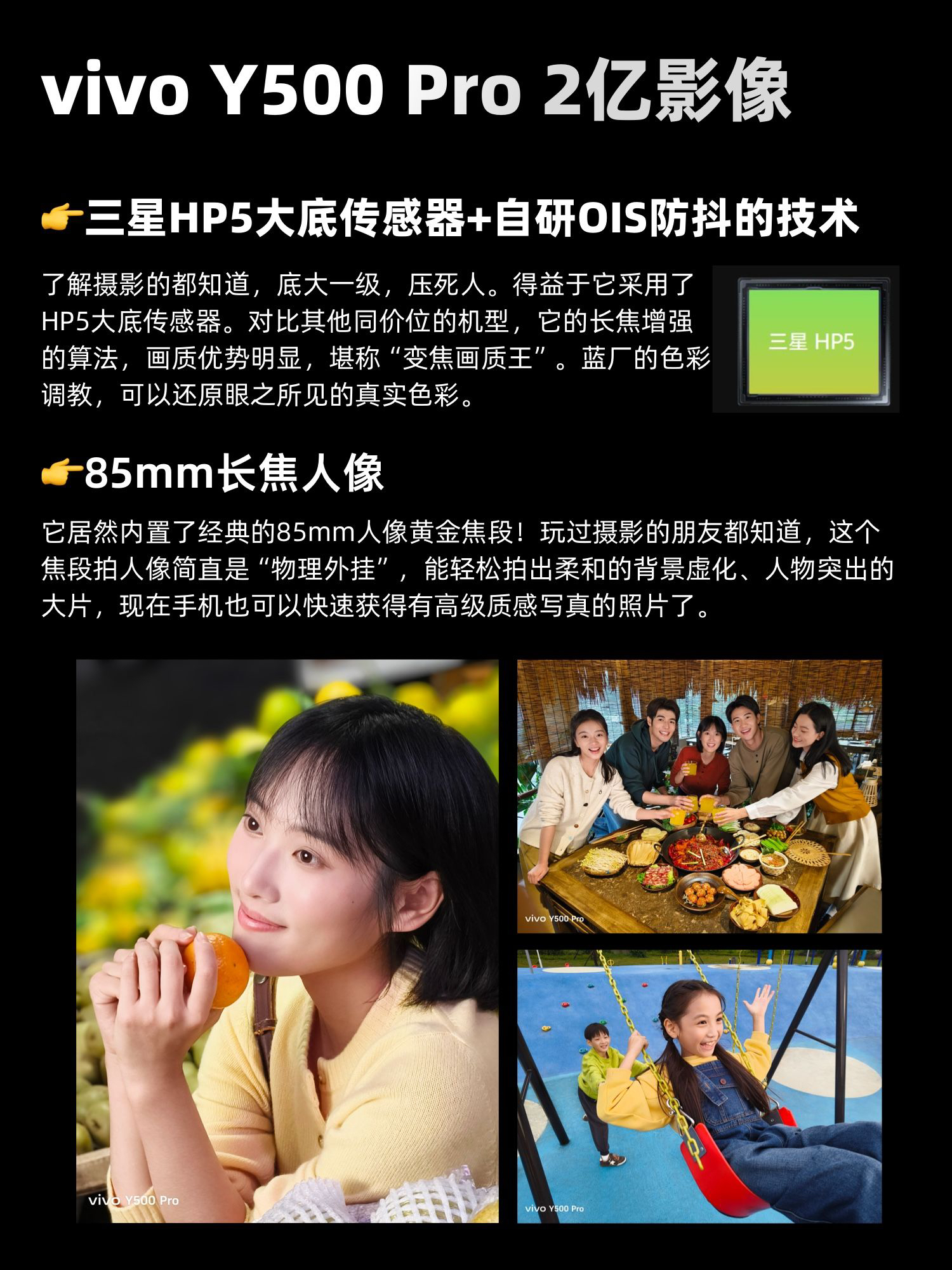 家人们!🔥vivo Y500 Pro新机终于来了!作为一名数码博主,我必须说:2k不到这个价位里它可能真的找不到对手!今天一篇看懂它有哪些升级,值不值得入手? 📸 2亿影像! 2亿像素+三星HP5大底传感器+自研OIS防抖加持 不管是拍外景还是拍文档,都能精准拿捏细节 —— 2 亿像素主摄+搭载的三星 HP5大底传感器,原图直出自带质感,发朋友圈根本不用修图,后期二次构图也很清晰!内置85mm人...