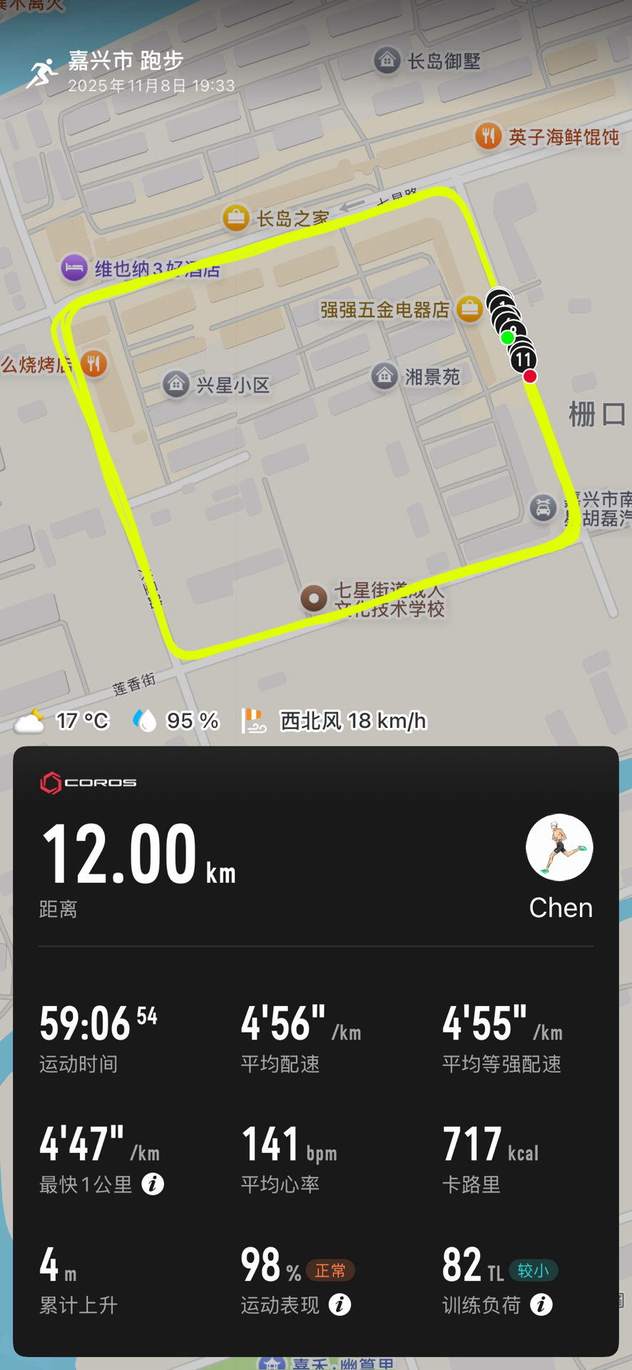 #今天也跑了 周六晚夜跑一下🏃🏻 非常充实的一个休息日,下午约个球局,两个小时的半场打完 晚上一个人的小长距离打卡,简简单单12公里结束,比赛倒计时15天了只有 说实话现在心里完全没底!