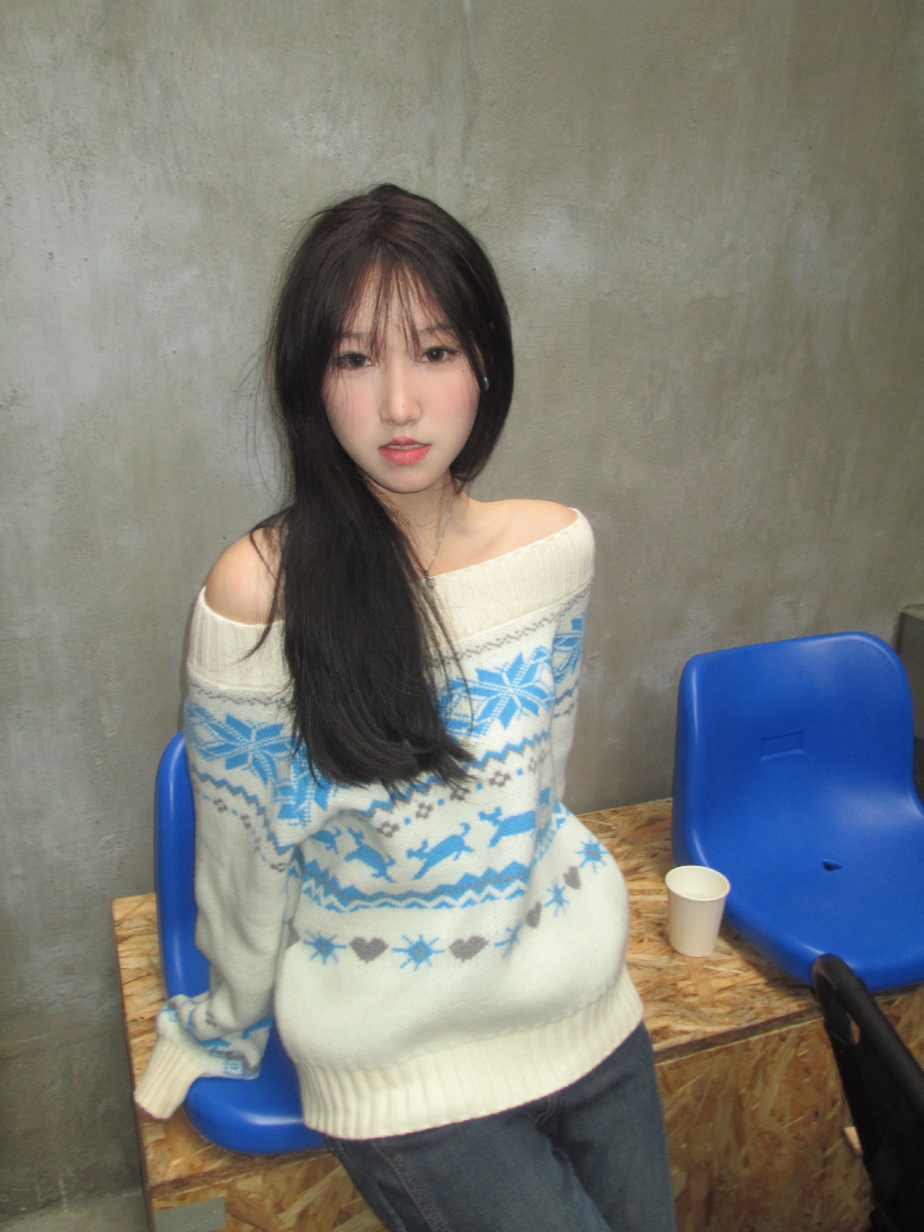 蓝色毛衣简直韩的没边!一字肩妥妥拿捏! 人手一件不在话下的百搭