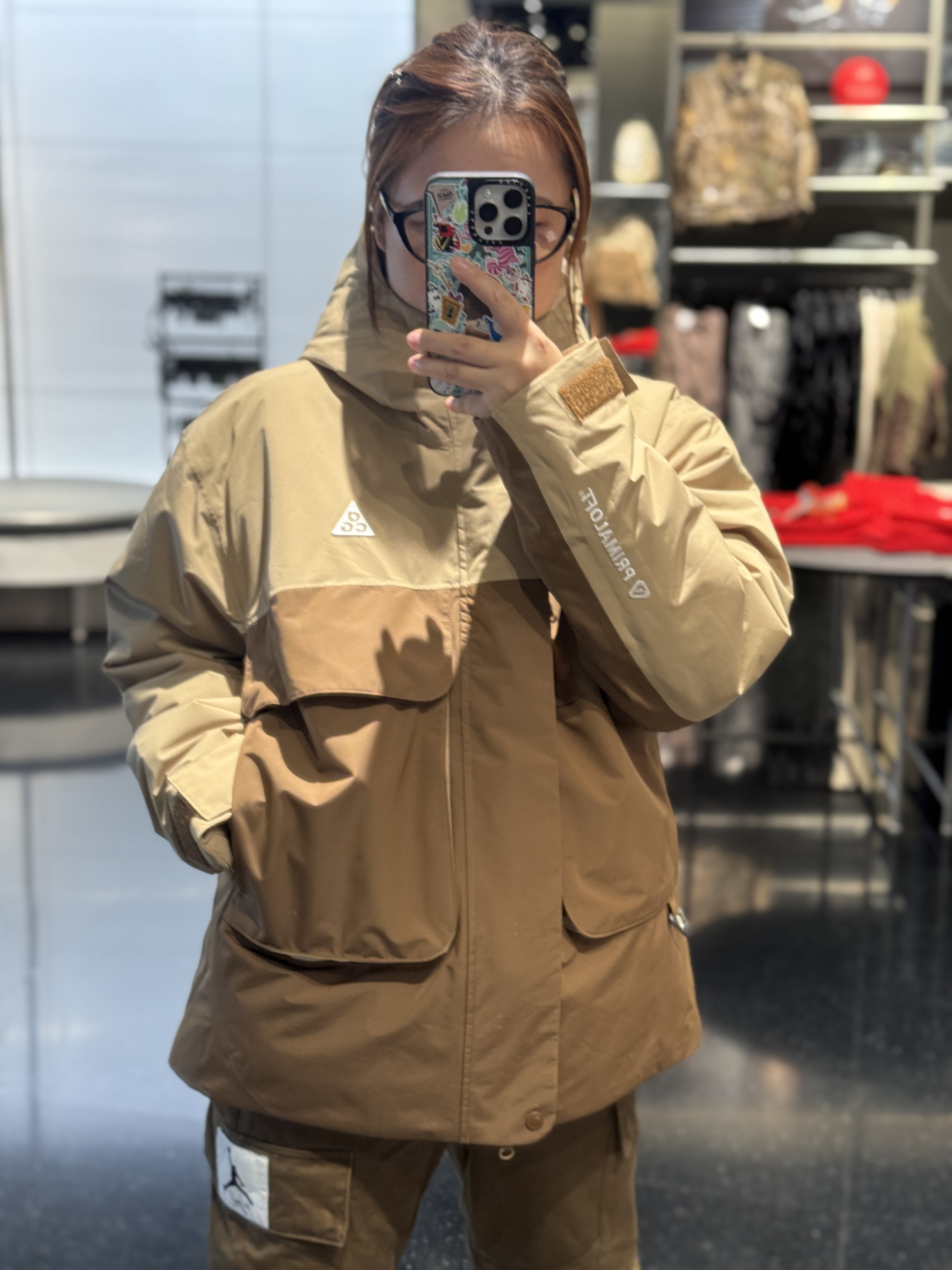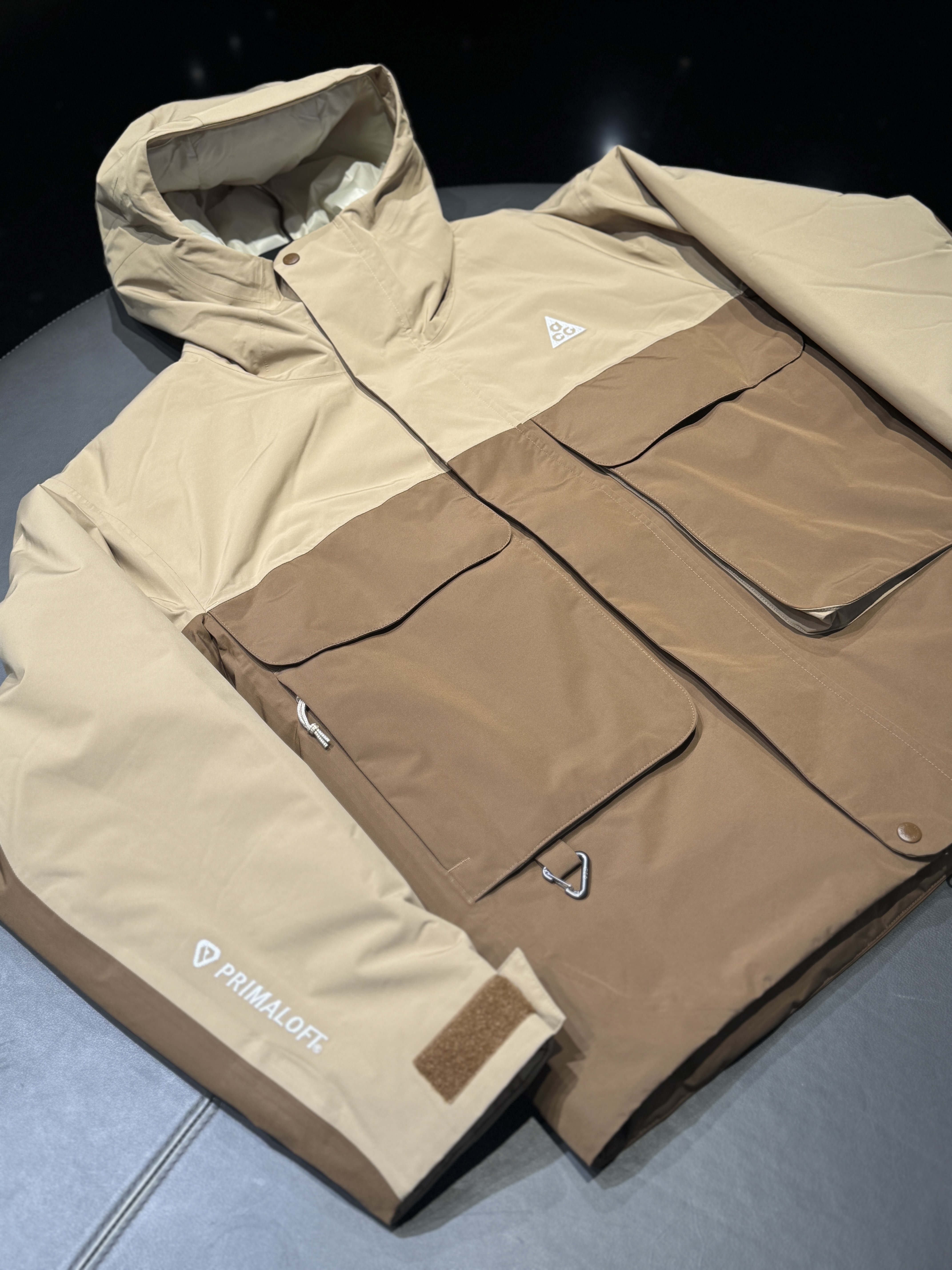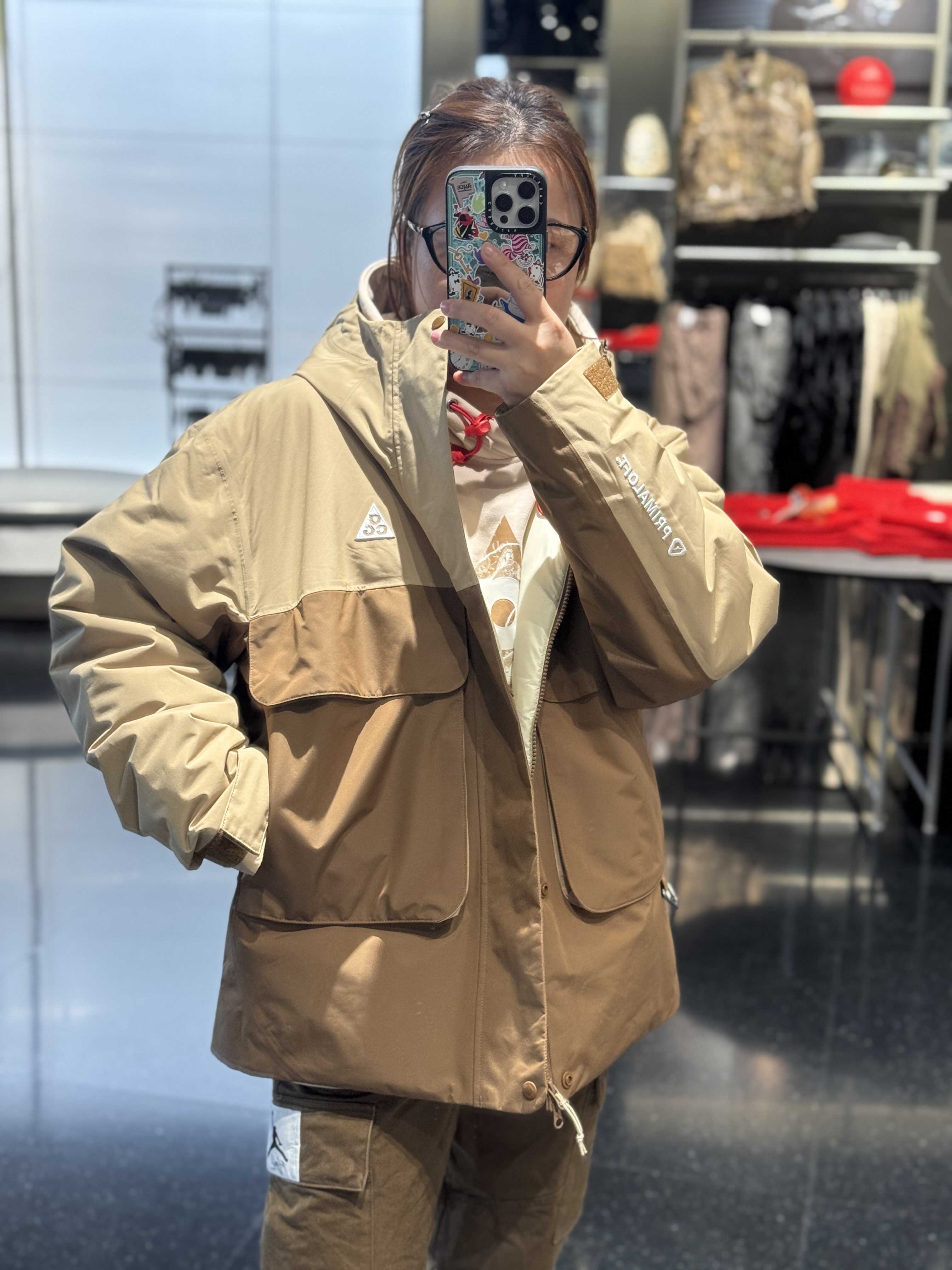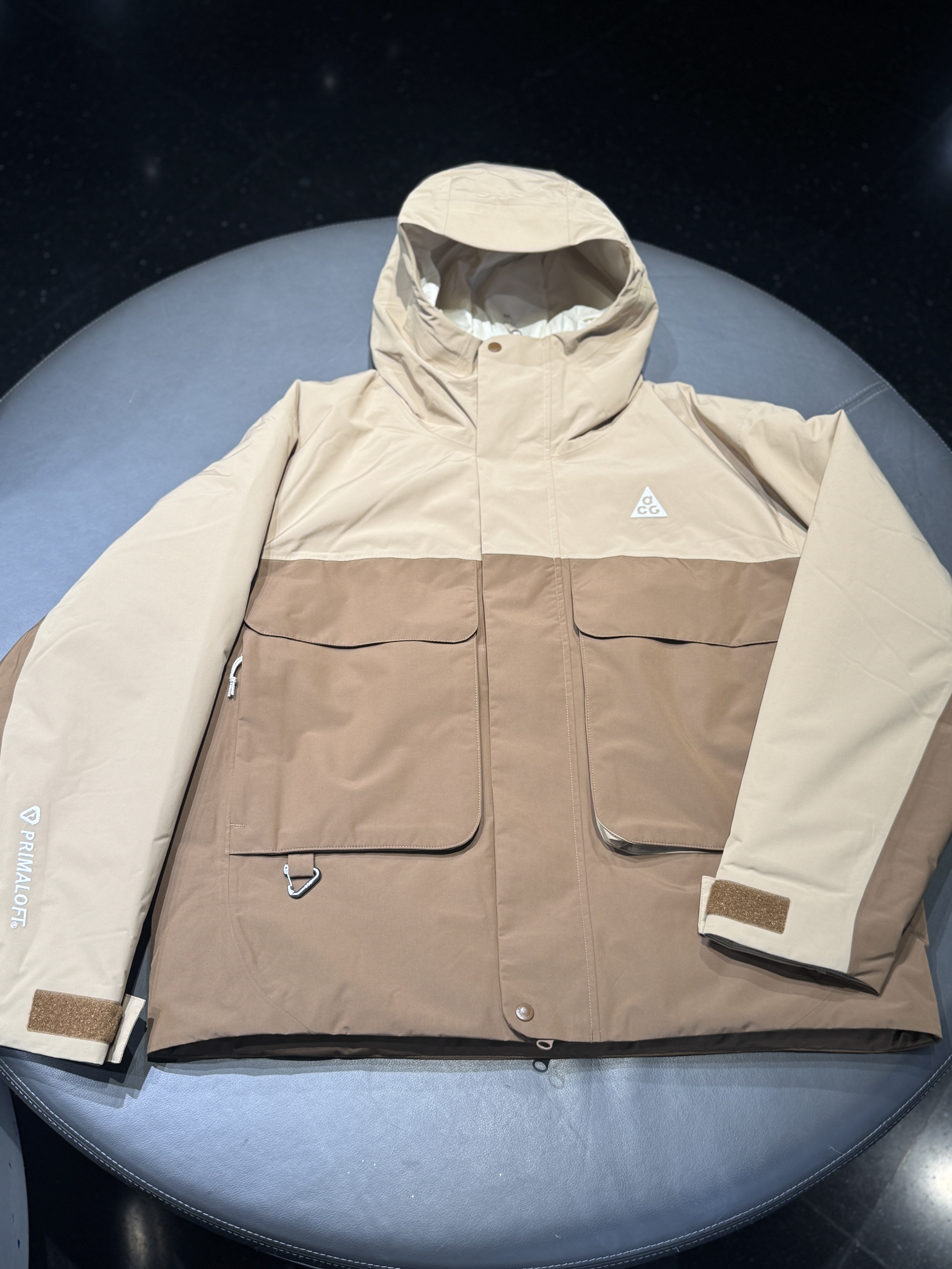 谁懂啊家人们!谁懂啊!今天在店里试的这套Nike ACG冲锋衣版型的棉服外套!有被这个双咖拼接配色帅到了🤏🏻直接戳中我心巴💕 卡其拼浅棕的外套工装感拉满,大口袋设计又酷又实用,内搭米白连帽衫柔和了整体风格,下装同色系工装裤版型超正,配上黑鞋整个look协调到不行~🤌 穿上瞬间变身户外系潮人,日常出街或者去徒步都很适配!店里其他ACG系列也好好看,忍不住疯狂试穿hhh,有没有宝子和我一样沉迷这种机能...