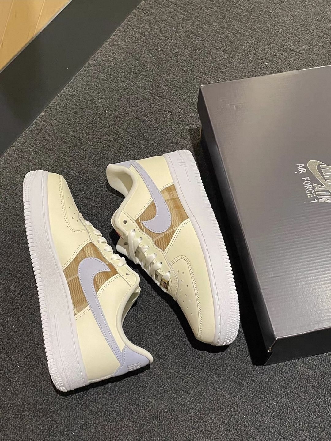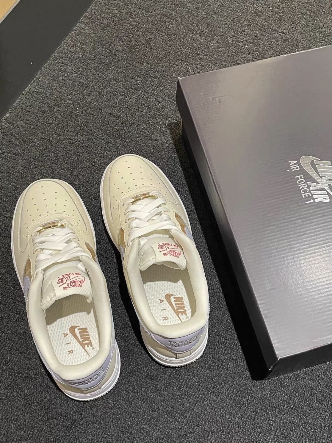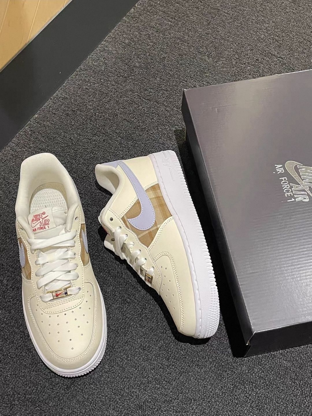 AF1这双米白+浅棕的配色也太戳心了!像把冬日的热奶茶穿在脚上,温柔又耐看,随便搭条卫衣裤都软乎乎的~ 细节里的小标签更是藏满小心机,低调又有质感👟