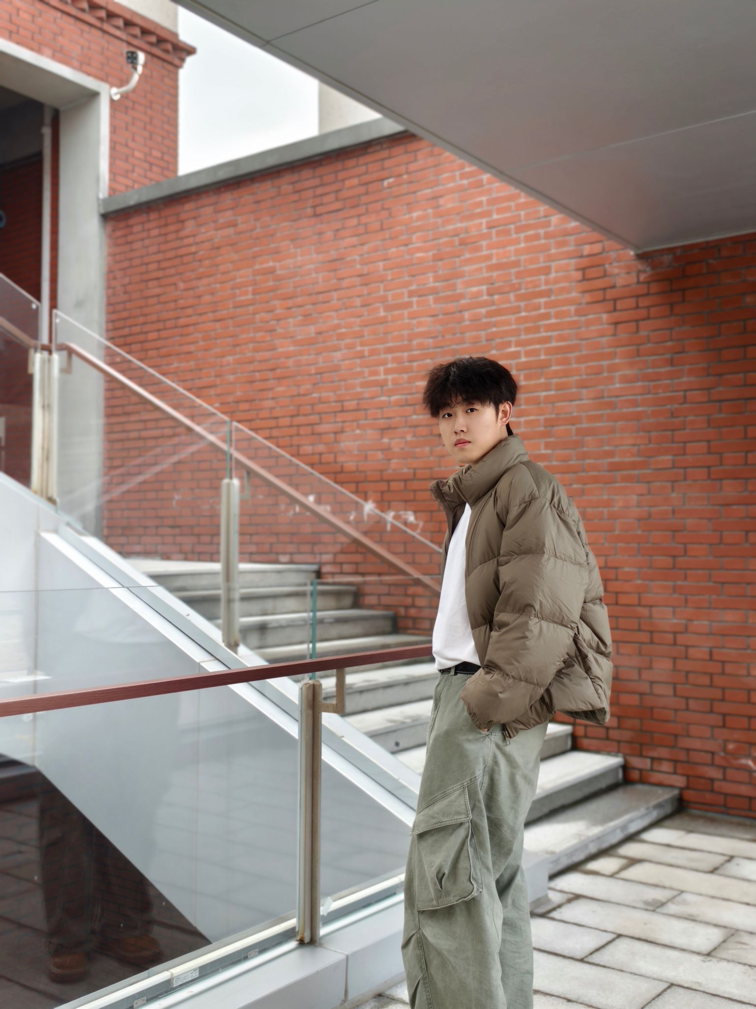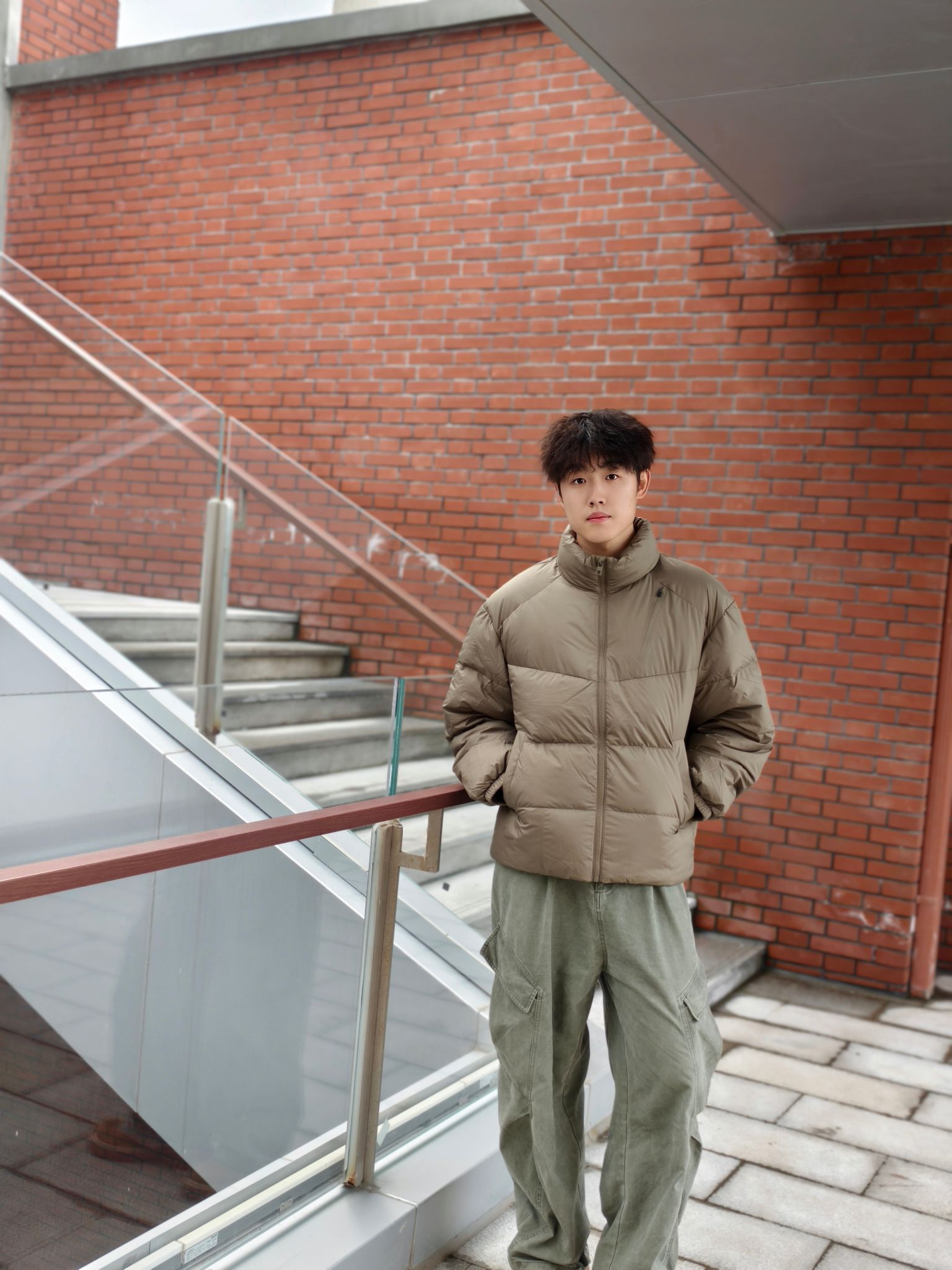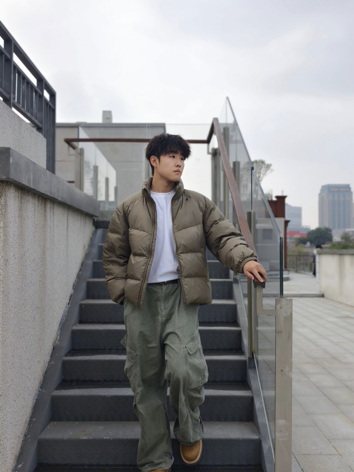 卡其色短款羽绒服+白色内搭+军绿色工装裤+大黄靴👢 我身高178,宽松度刚好,活动起来很自在。羽绒服很轻但保暖性不错,短款版型不压个子,对小个子也友好。军绿色工装裤口袋多,能装又显腿长,搭配起来休闲随性。 这种搭配日常出街、通勤都合适,卡其与军绿的色调很和谐,低调有质感。秋冬微凉的天气穿正合适,不会太厚重,也能应对早晚温差。