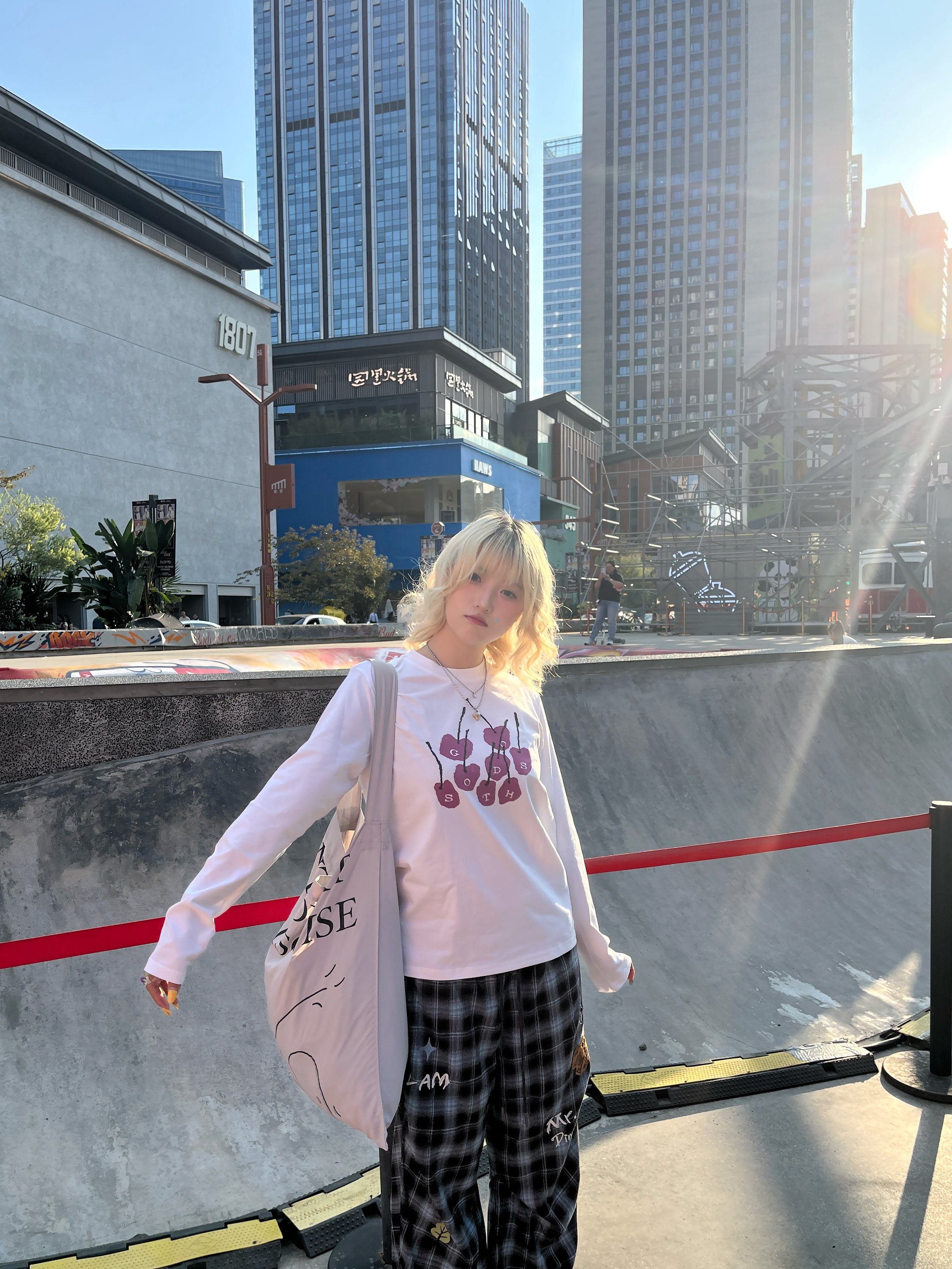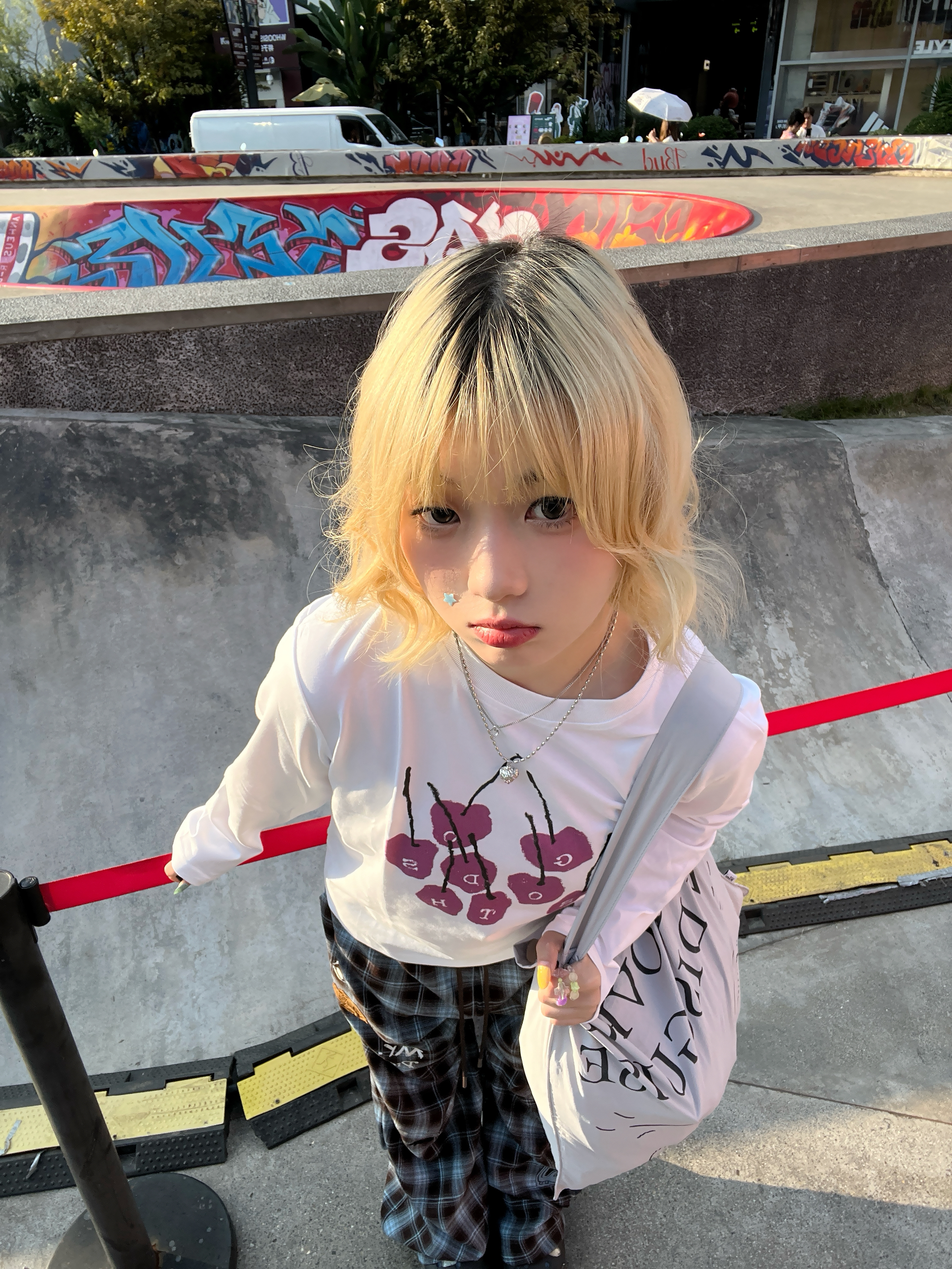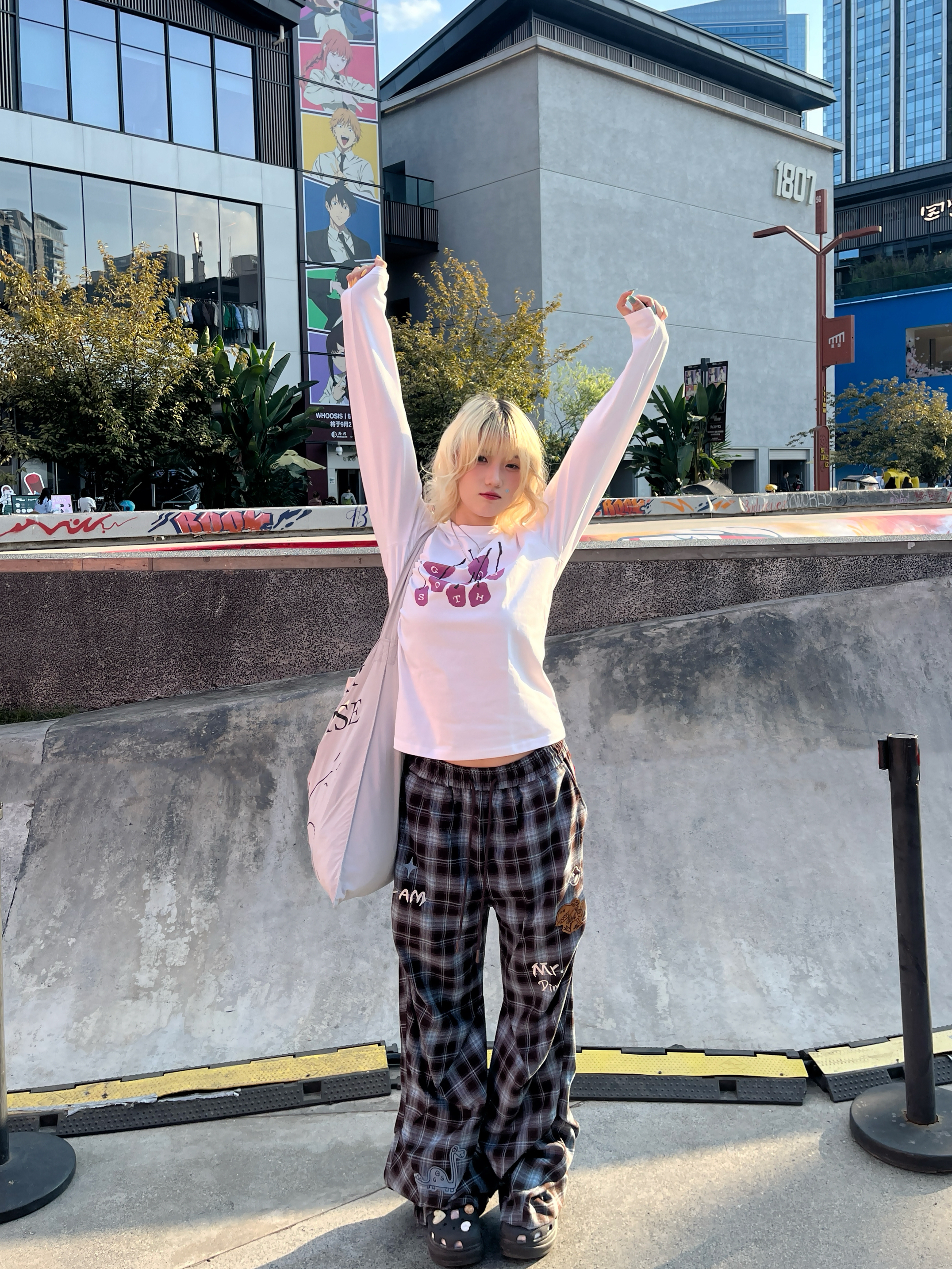 秋天的街头感ootd~ 长袖T恤搭配格子裤太酷啦 又甜又酷的街头感@识货穿搭君