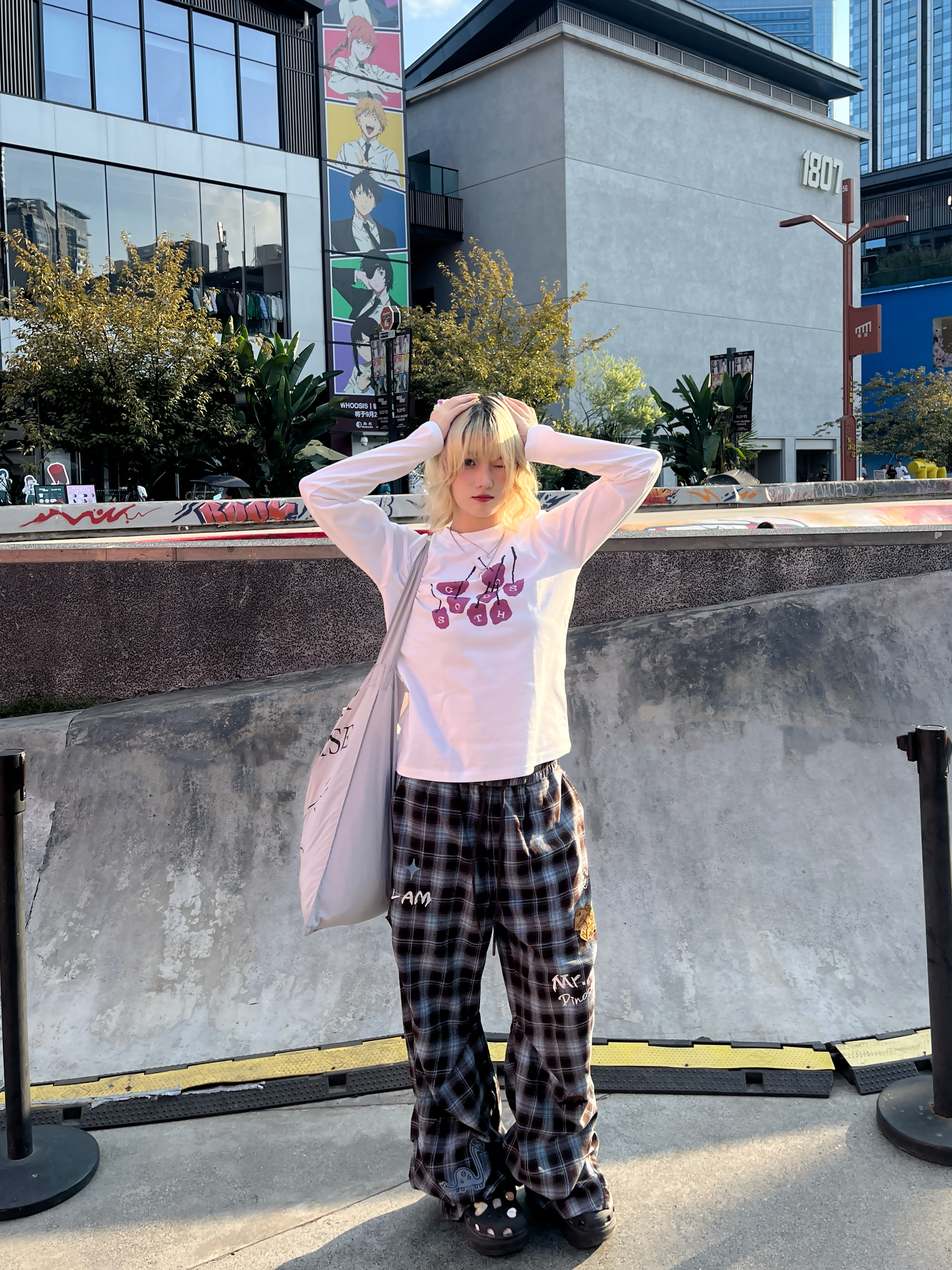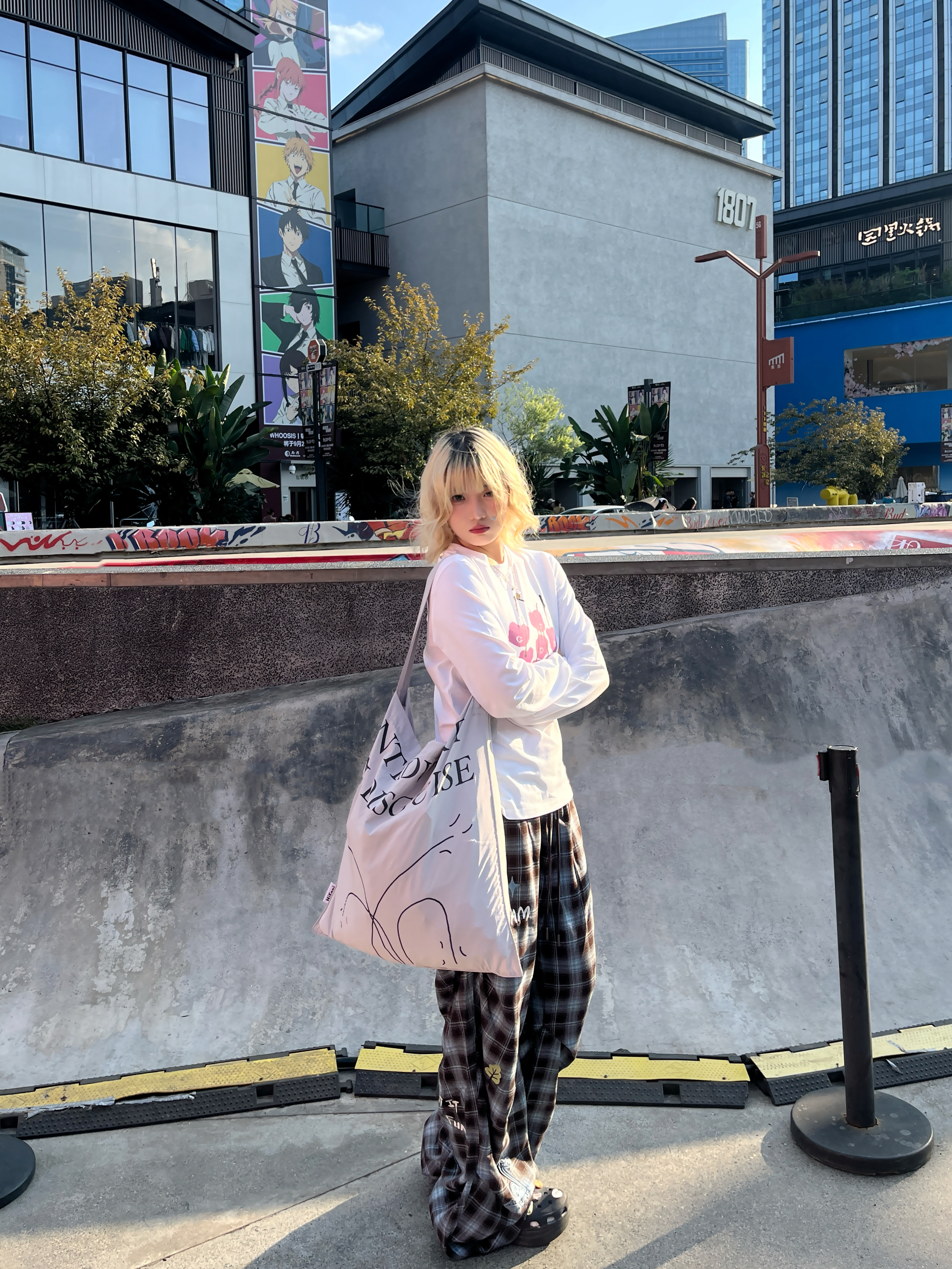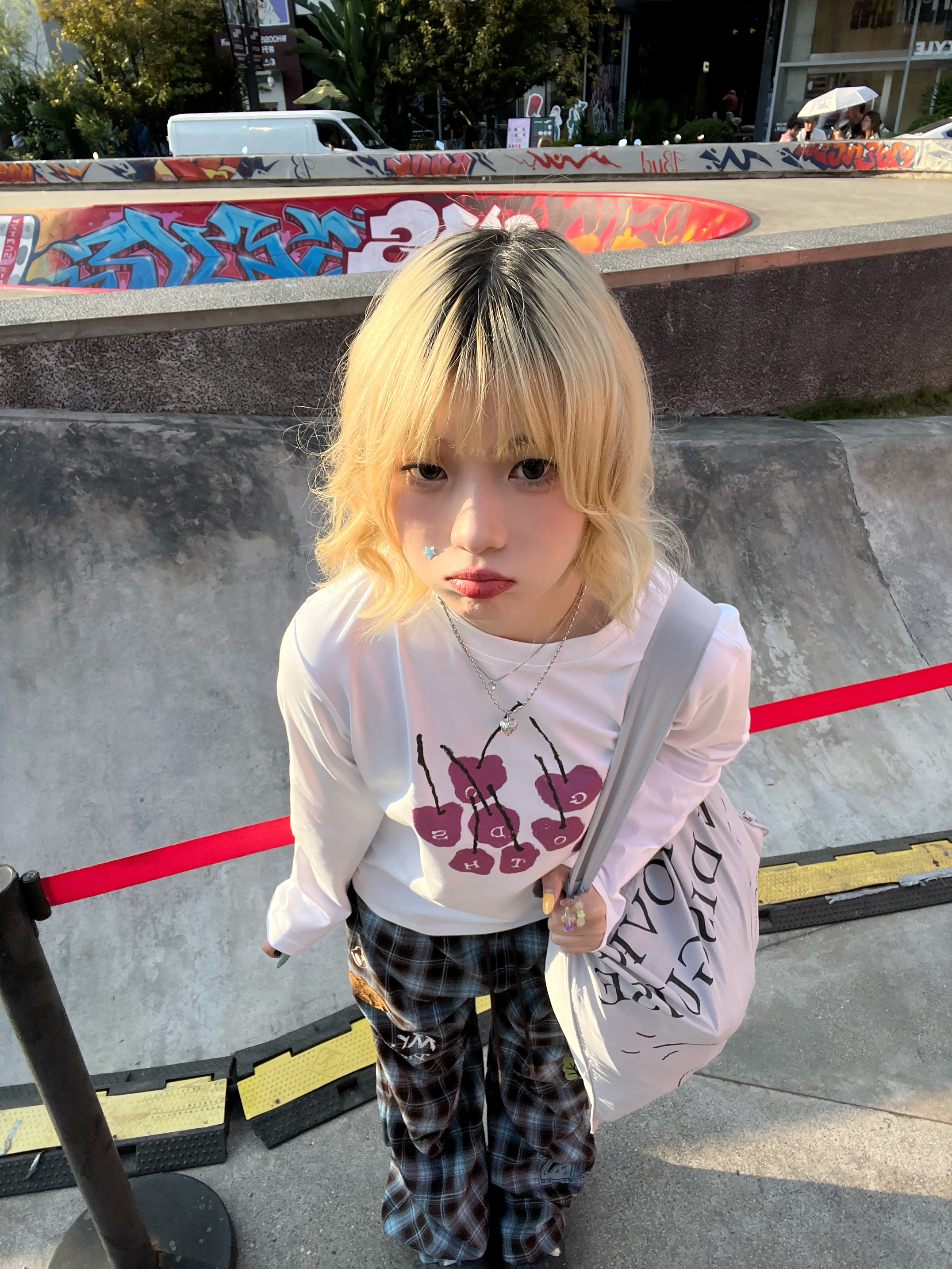 秋天的街头感ootd~ 长袖T恤搭配格子裤太酷啦 又甜又酷的街头感@识货穿搭君