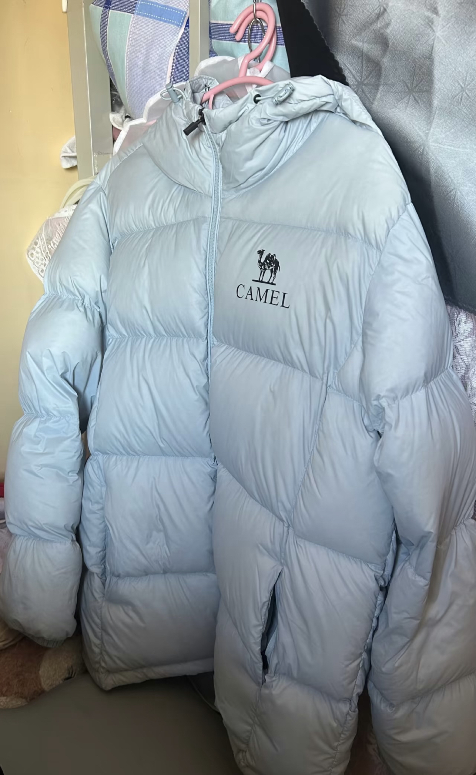 最近入了这件骆驼短款连帽羽绒服,浅浅的色调很戳我。 穿它出门,早上上班时冷风刮在脸上,可身上却暖乎乎的,羽绒填充很实在,却不会显得人臃肿。连帽一拉,脑袋也被护得妥妥的。配牛仔裤是我最常搭的,休闲又利落,日常通勤或者周末逛个街都很合适。 胸前的品牌标简约不花哨,我觉得这种低调的设计还挺有质感的。这几天降温全靠它,走在街头都觉得踏实,算是我这个冬天挖到的一个保暖小宝藏~