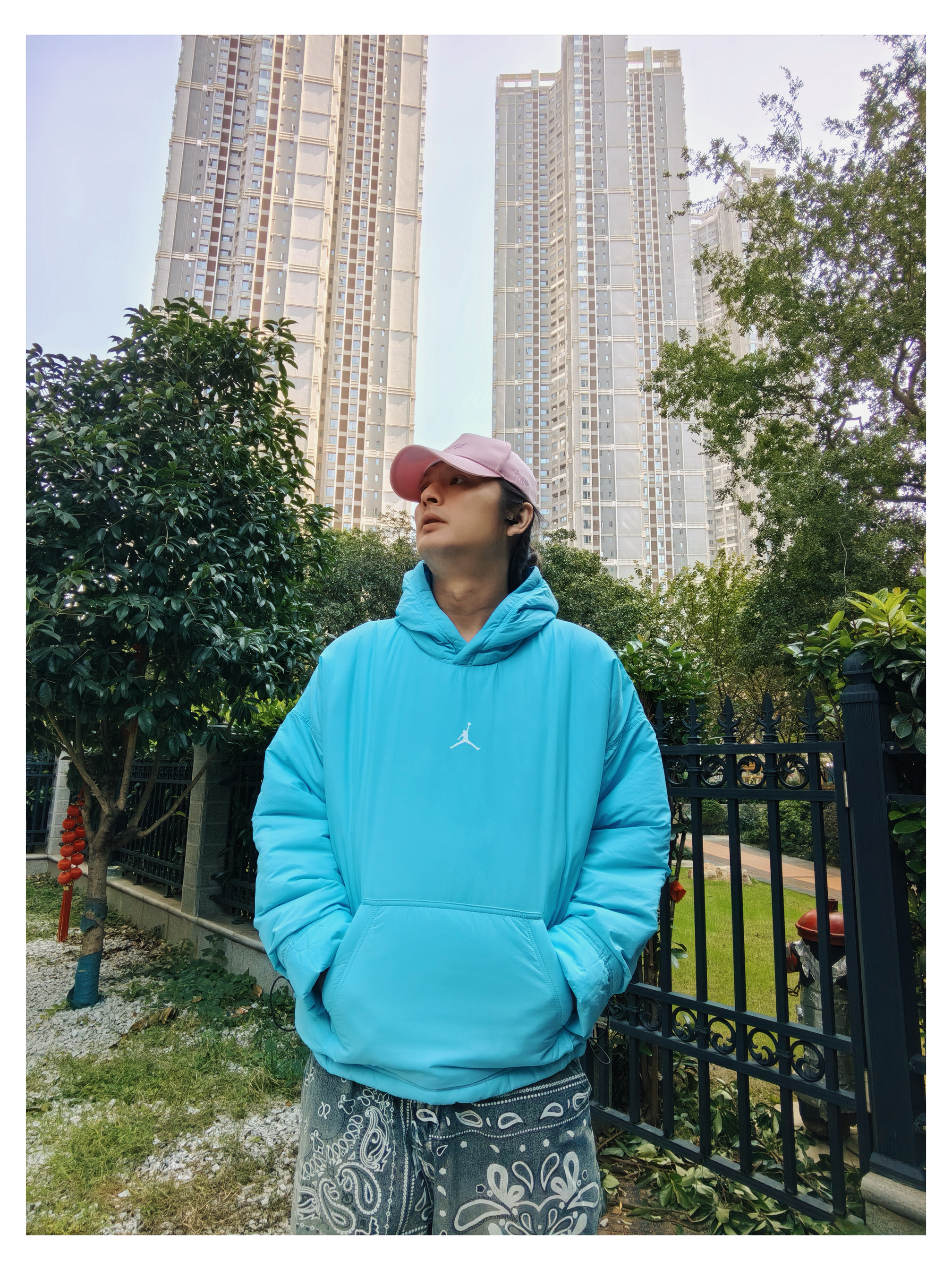 时髦运动风加厚保暖卫衣穿搭分享 上衣:jordan 蓝色系 加厚连帽上衣 下装:腰果花洗水牛仔裤 鞋子:黛西法罗厚底老爹鞋