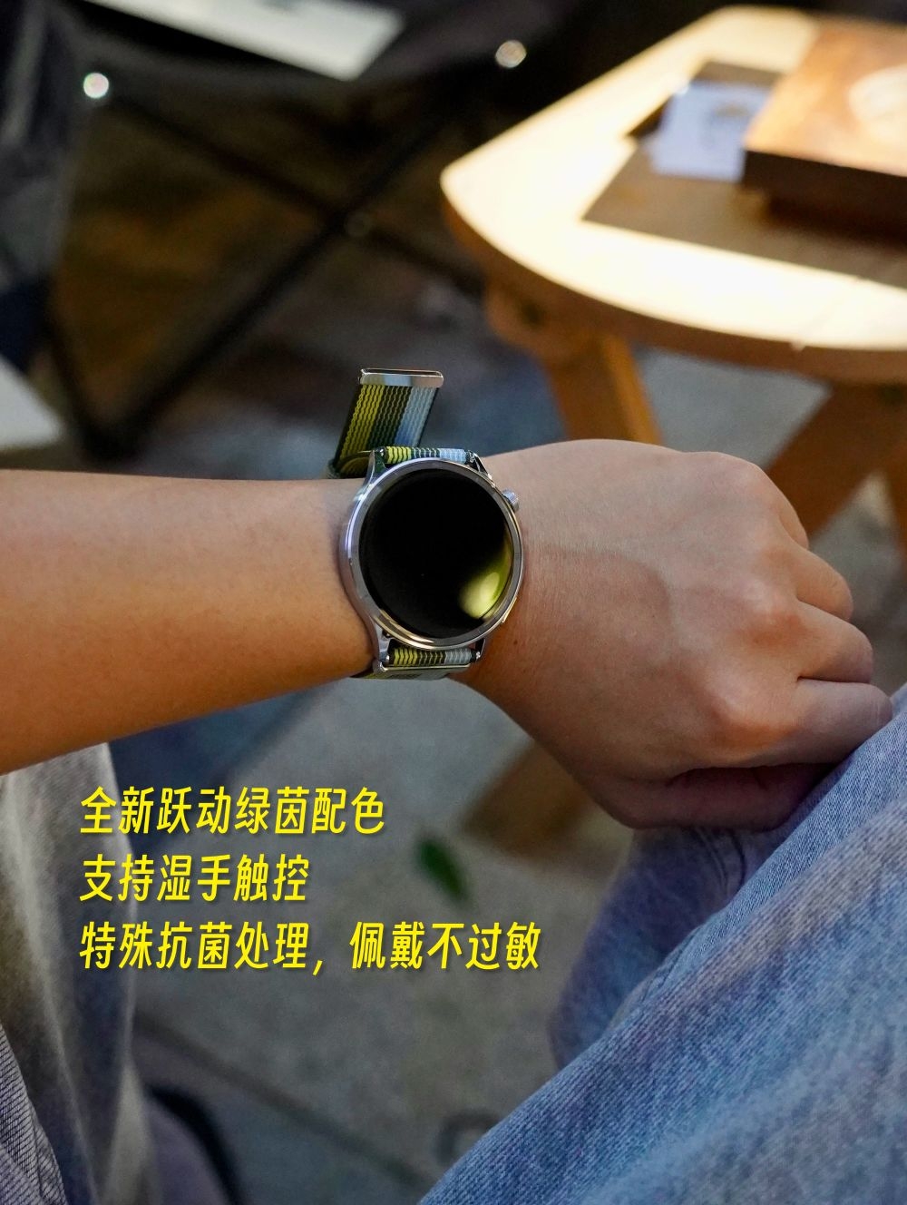颜值方面同样在线。全新的跃动绿茵配色,特殊抗菌处理,戴不过敏。抬手就能成为整套穿搭的亮点。1.46英寸超亮屏幕,还支持湿手触控。