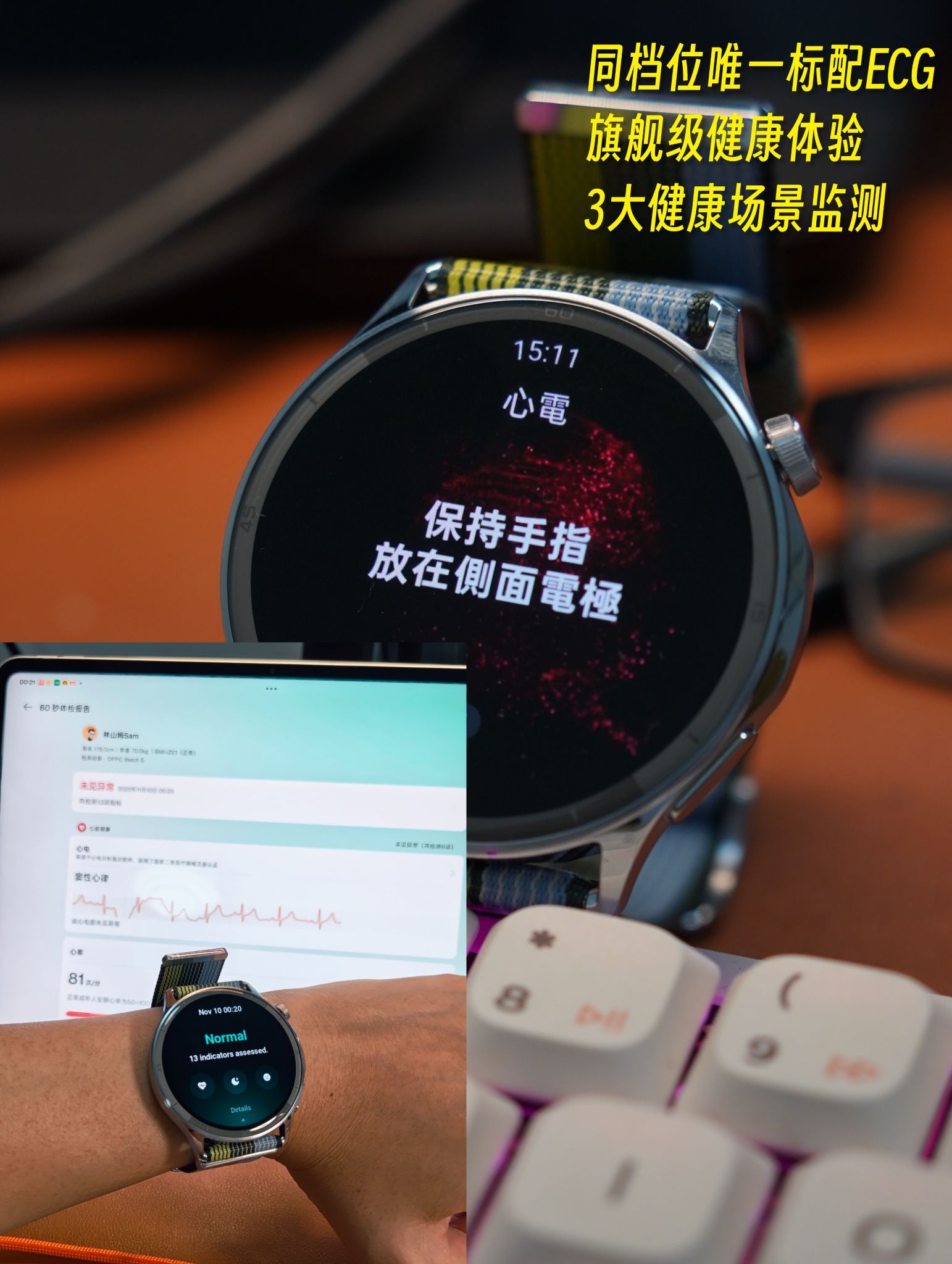 健康监测方面是同价位段的天花板。OPPO Watch S是同档位唯一标配ECG心电功能的智能手表,只需30秒,即可检测并提示心房颤动、早搏等心律异常,同时显示窦性心律(正常心律)结果。60秒一键体检功能,可监测血氧、血管弹性、腕温等多项健康指标,特别适合经常熬夜的打工人。