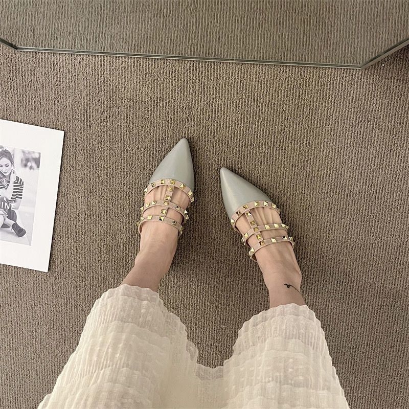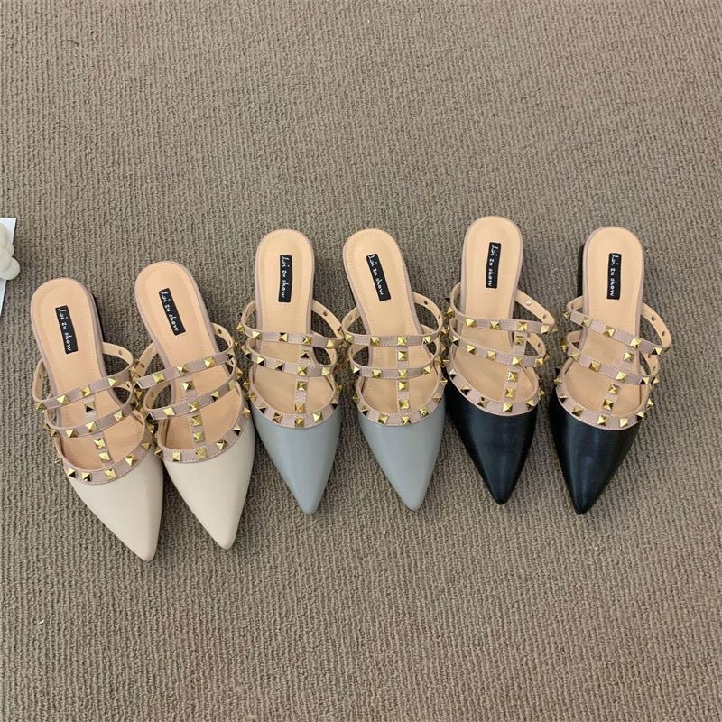 这双铆钉穆勒拖简直是春夏穿搭的“时髦作弊器”!尖头+细带铆钉的设计,把甜酷感平衡得刚好——裸色温柔适配仙女裙,灰色高级搭西装裤秒变通勤精,黑色飒爽配牛仔直接拽姐出街。 半拖版型懒人友好,一脚蹬就能出门,不管是约会下午茶还是上班赶通勤,都能踩出松弛氛围感。自带精致滤镜,上脚显脚瘦还不磨脚,三个色系闭眼入都不踩雷,这波美貌与实穿性双在线,不囤两双都说不过去!