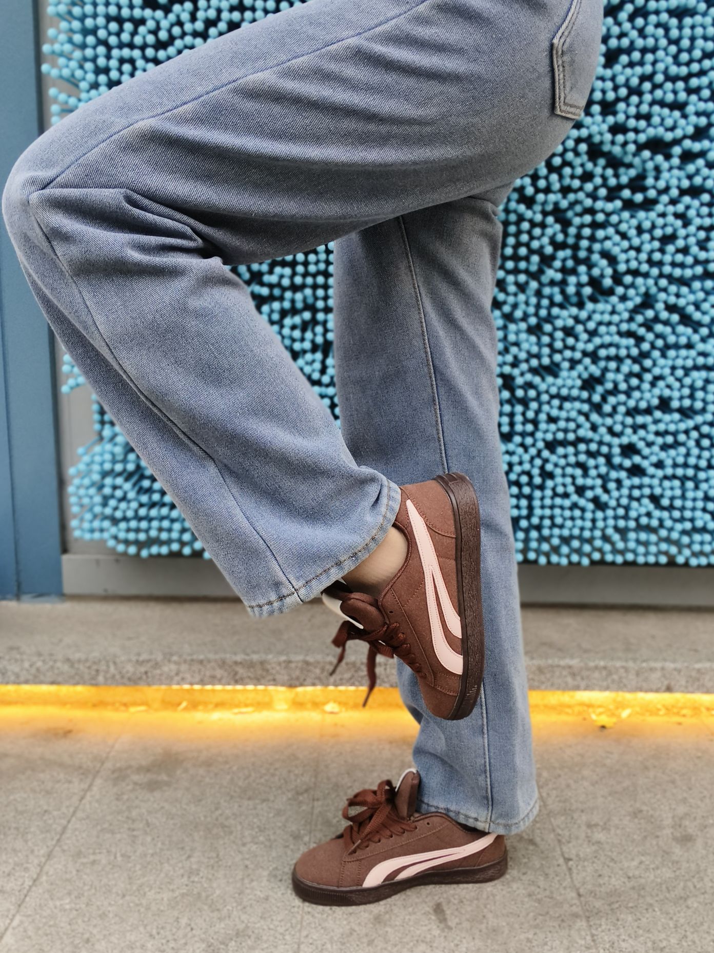 难🉐的约会时可当然要精心打扮一番了! 简单伪素颜配件喇叭袖修身帽衫 穿条百搭不出错的牛仔裤👖 我天😱我竟然不知道我这身材这么jue~ 既然逛街当然🉐蹬一双走路舒服的鞋👟 正好试试我刚收到的NK板鞋 咖色配白真是越穿越爱❤️ 休闲风的款却🈶着运动鞋的脚感 这种感颜又舒服的鞋真的太🈴我心意了! 夜幕前的都市感约会风不就来了❗