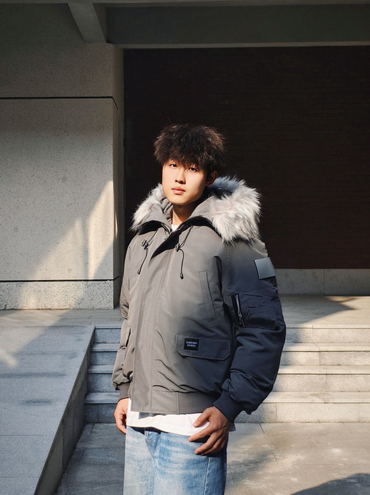 今分享#FDR 灰色毛领派克服。 蓬松的灰色毛领不仅提升了整体的层次感,还能在寒冷的天气里为脖子提供额外的保护。外套的多口袋设计非常实用,胸前和手臂上的口袋不仅方便放置小物件,还为整体造型增添了几分工装风的硬朗感。 在搭配上,我选择了白色T恤作为内搭,既简约又能凸显外套的质感。下装搭配了一条浅蓝色牛仔裤,轻松打造出日常休闲的风格。鞋子方面,我选择了一双运动鞋,与整体造型的休闲感相呼应。 ...