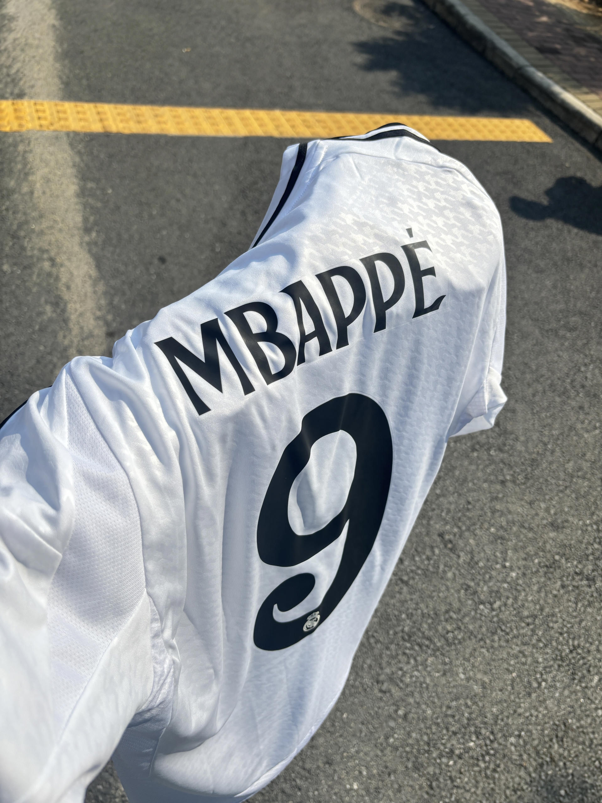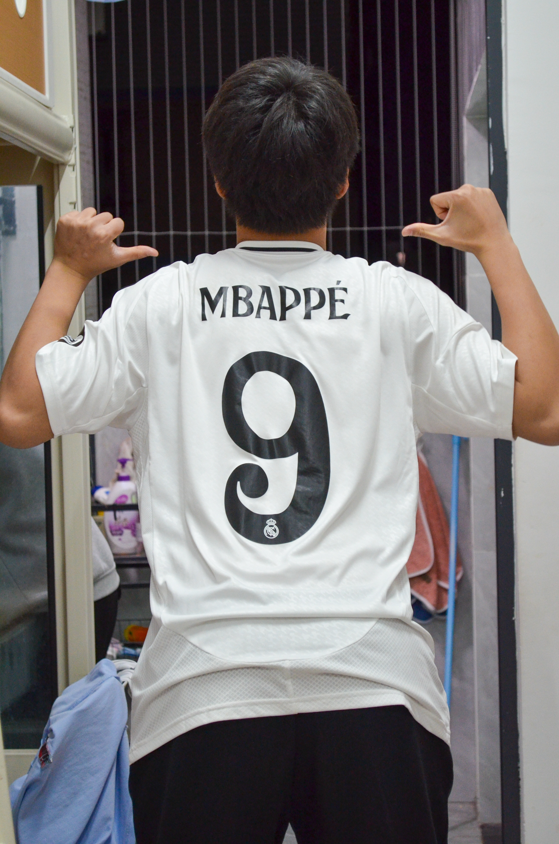 谁能拒绝姆巴佩同款皇马速干球衣啊!经典白黑配色干净又大气,胸前醒目的队徽瞬间把皇马DNA拉满,超有辨识度,一眼就能看出是球队死忠粉~背后印着的号码设计,往那儿一站,仿佛自带球星上场时的强大气场,感觉下一秒就能在球场上驰骋~ 而且这球衣面料绝了,摸起来滑溜溜的,像被丝绸包裹住一样,质感特别好。关键是它透气又速干,夏天稍微动一下就出汗的日子,穿上它,汗液能秒被吸干,衣服完全不会粘在身上,保持清清爽爽的...