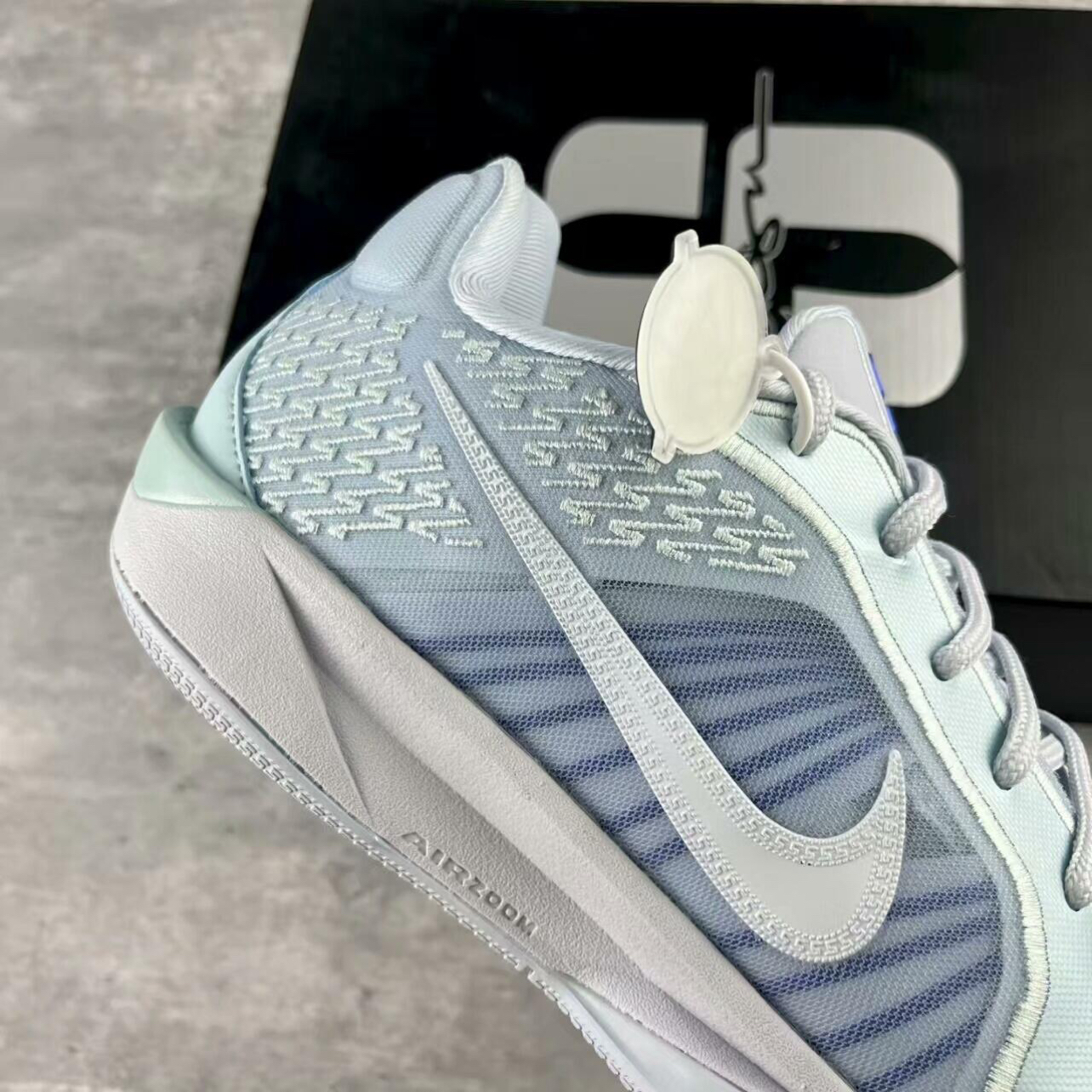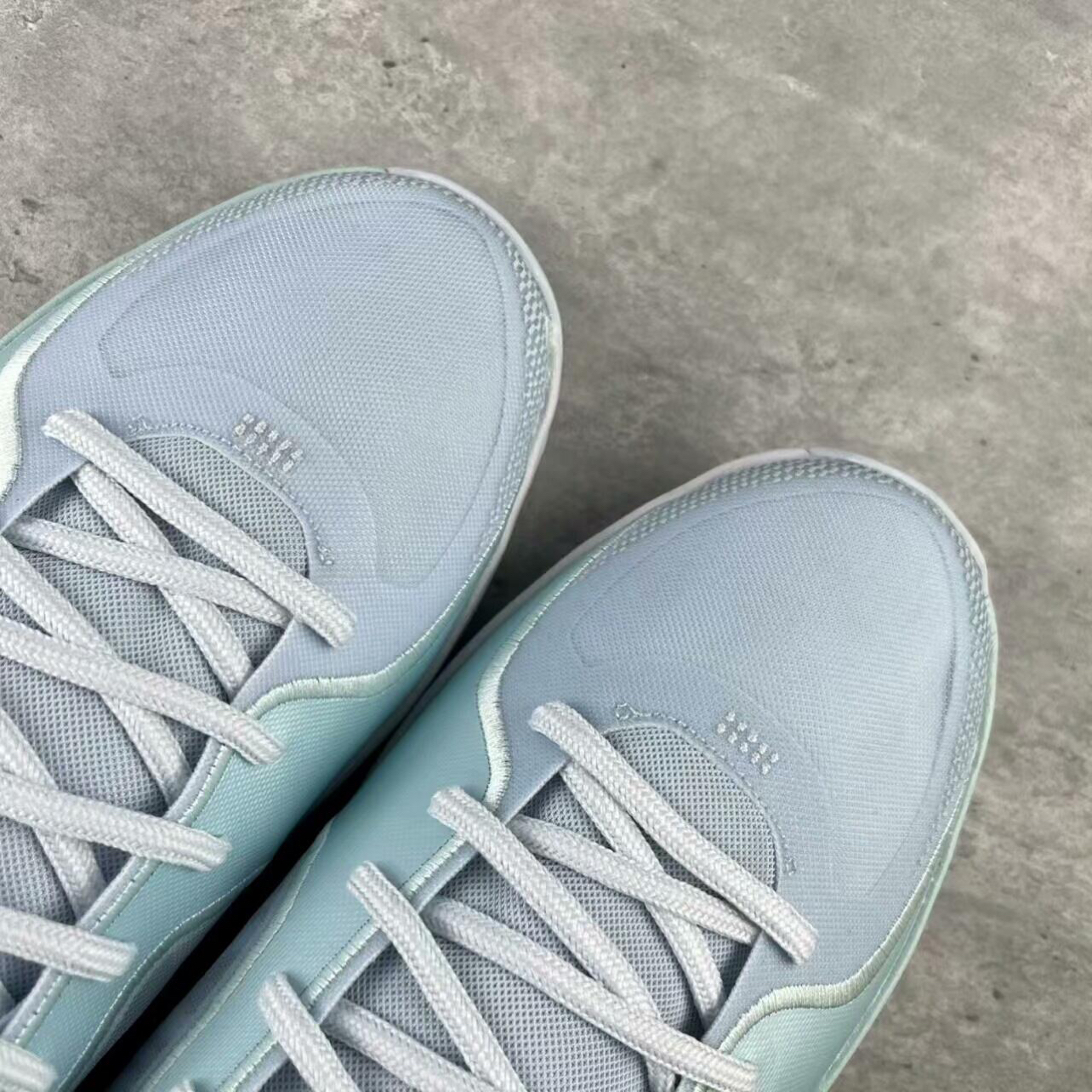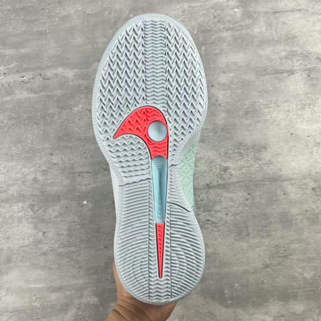 • 颜值是实战鞋里的清流:浅薄荷+冰雾灰的低饱和渐变,是那种“赛场上能亮眼、日常穿不违和”的调调;鞋身的半透明网布+立体纹路,把“实战科技感”和“清爽氛围”捏得刚好,不是硬邦邦的“直男篮球鞋”。