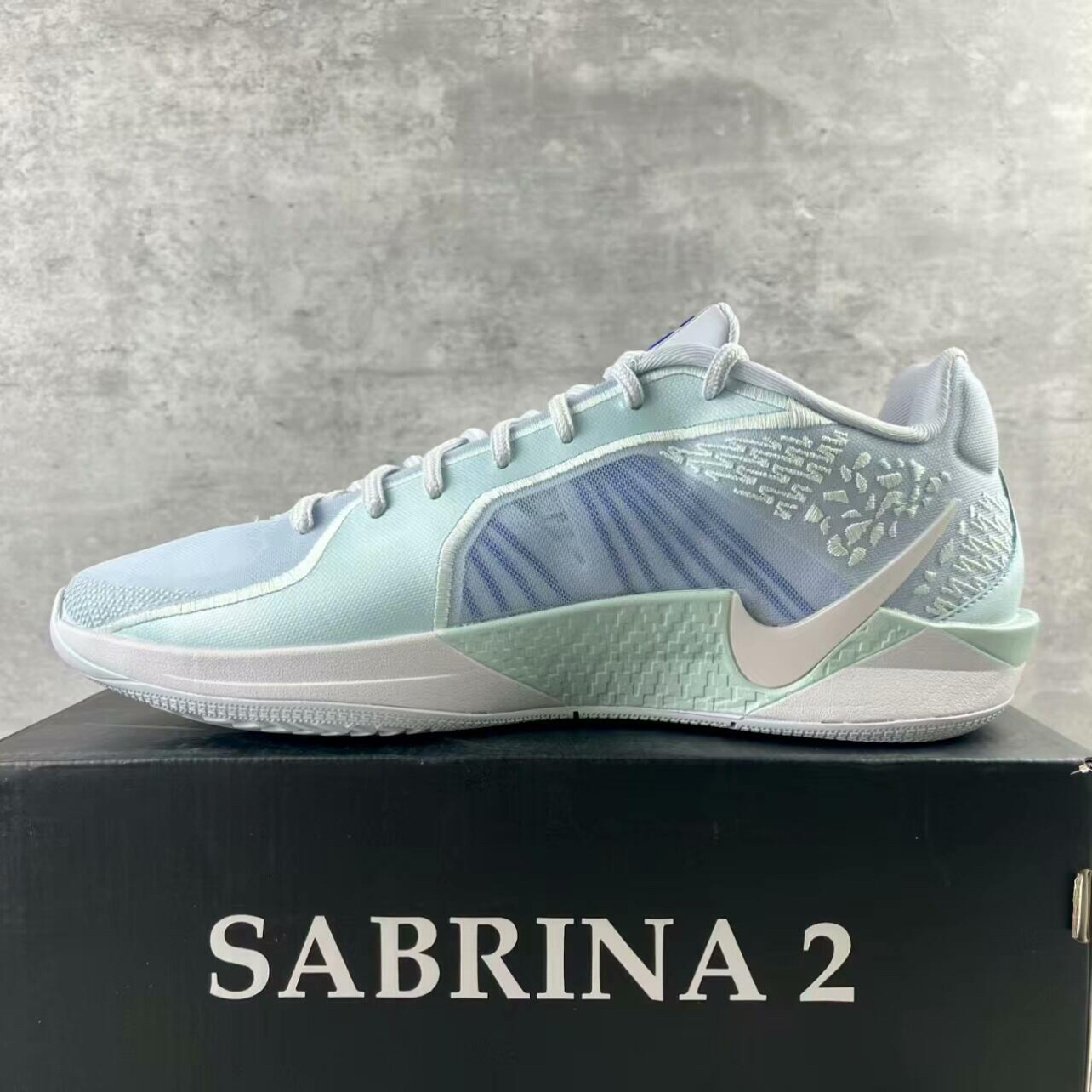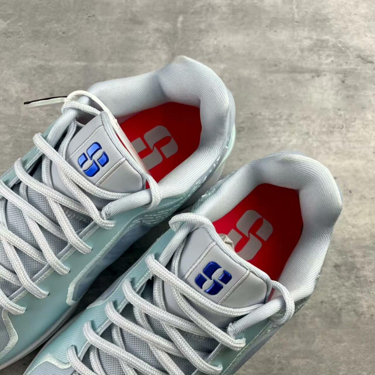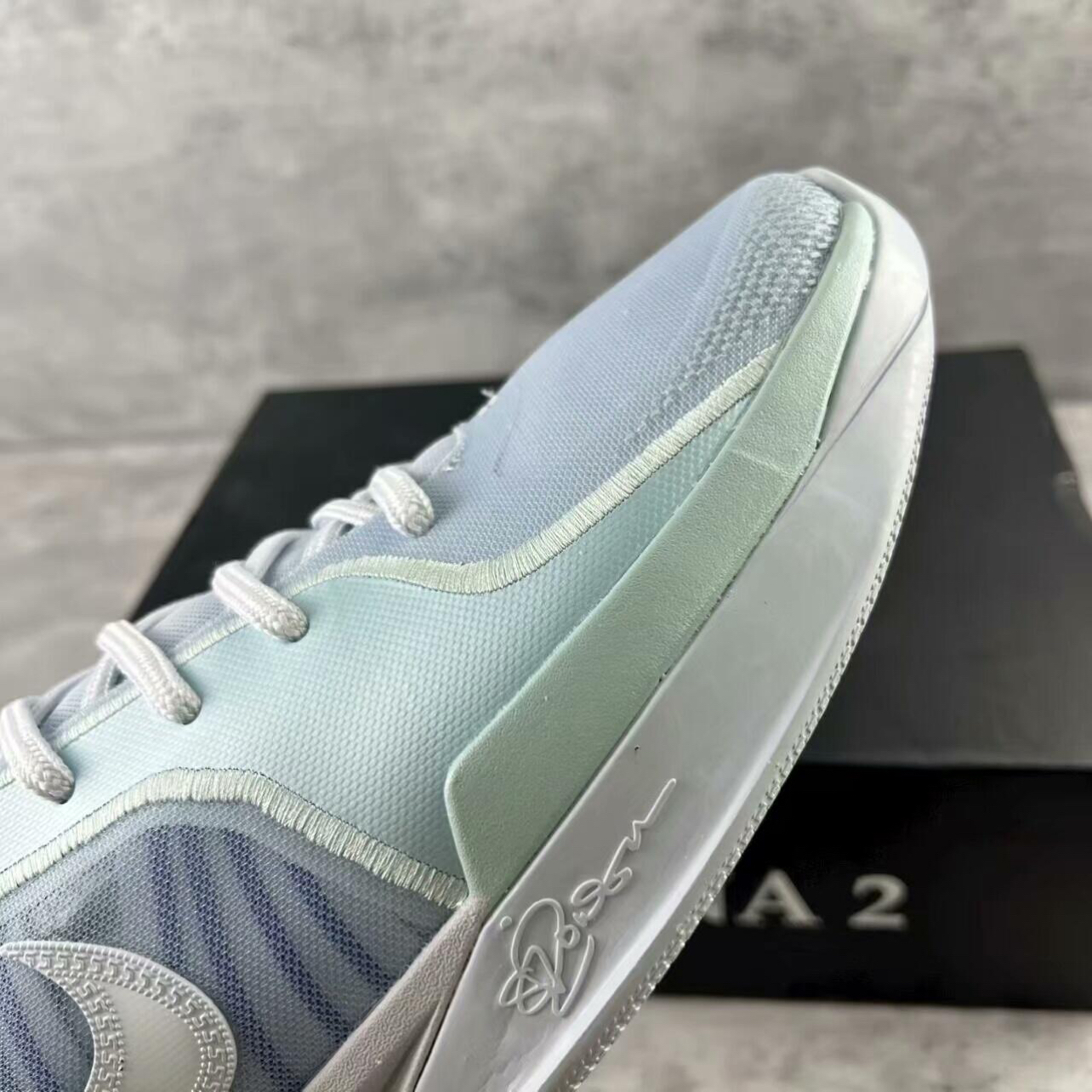 • 颜值是实战鞋里的清流:浅薄荷+冰雾灰的低饱和渐变,是那种“赛场上能亮眼、日常穿不违和”的调调;鞋身的半透明网布+立体纹路,把“实战科技感”和“清爽氛围”捏得刚好,不是硬邦邦的“直男篮球鞋”。