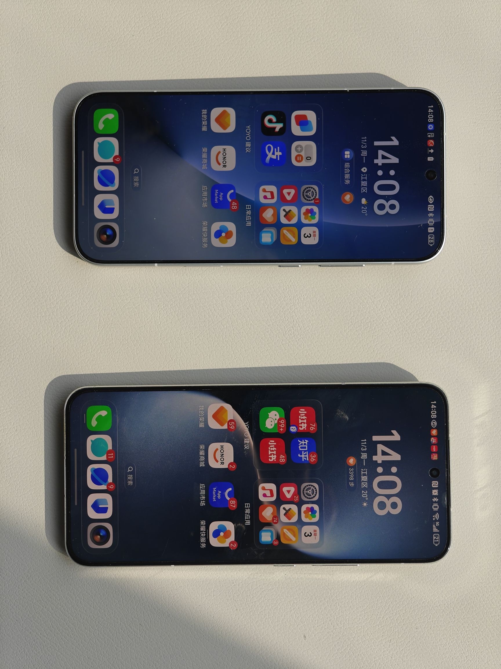 趁着双十一把用了快一年多的Magic7换成了Magic8,虽然前者使用依旧很流畅,性能妥妥的够用,刚也更新了MagicOS10,许多功能用着不错,但是也抵不住新品的吸引力,果断换新入手了Magic8,虽然整体的外观看起来似乎变化不大,仔细看还是有不少区别。 屏幕尺寸:Magic 7采用6.78英寸OLED直屏;Magic 8标准版用的是6.58英寸直屏,Magic 8机身尺寸相对变小一圈,握持手...
