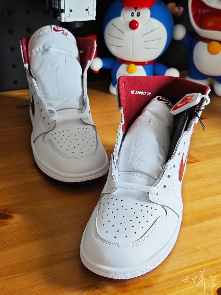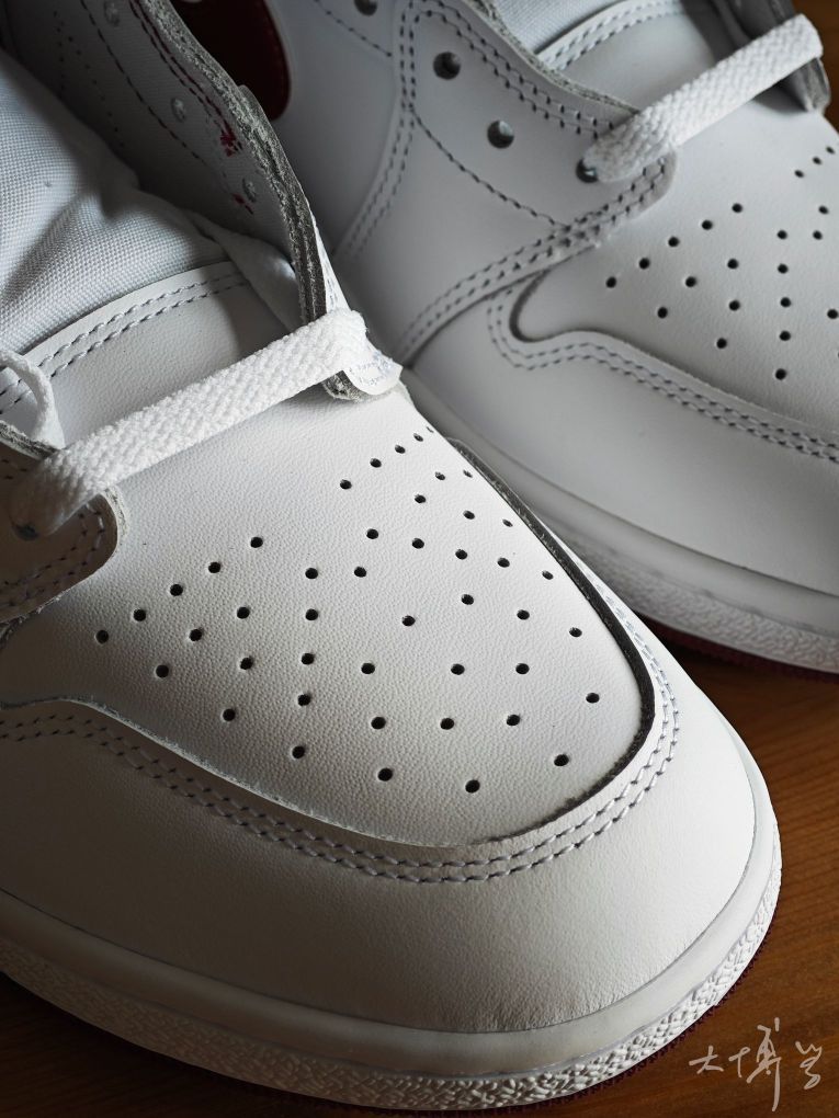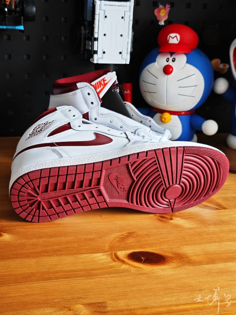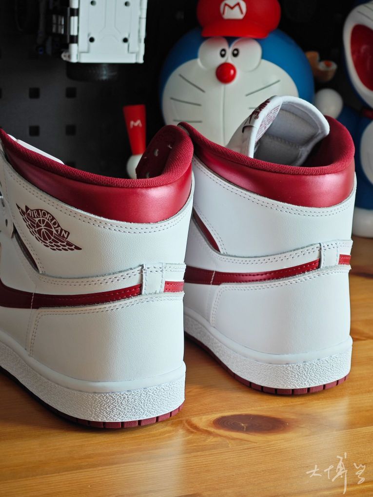 一双白红配色的高帮AJ1 是对1985年元年鞋型的经典复刻 白+金属酒红的配色组合我觉得挺亮眼 鞋型相比常规AJ1 High更显“精瘦”“修长” 尽量还原85年的原始轮廓 做工扎实且耐用出色 穿着时稍显硬挺 能保持鞋型的立体感 85鞋型偏窄,宽脚哥们建议试穿或选择大半码