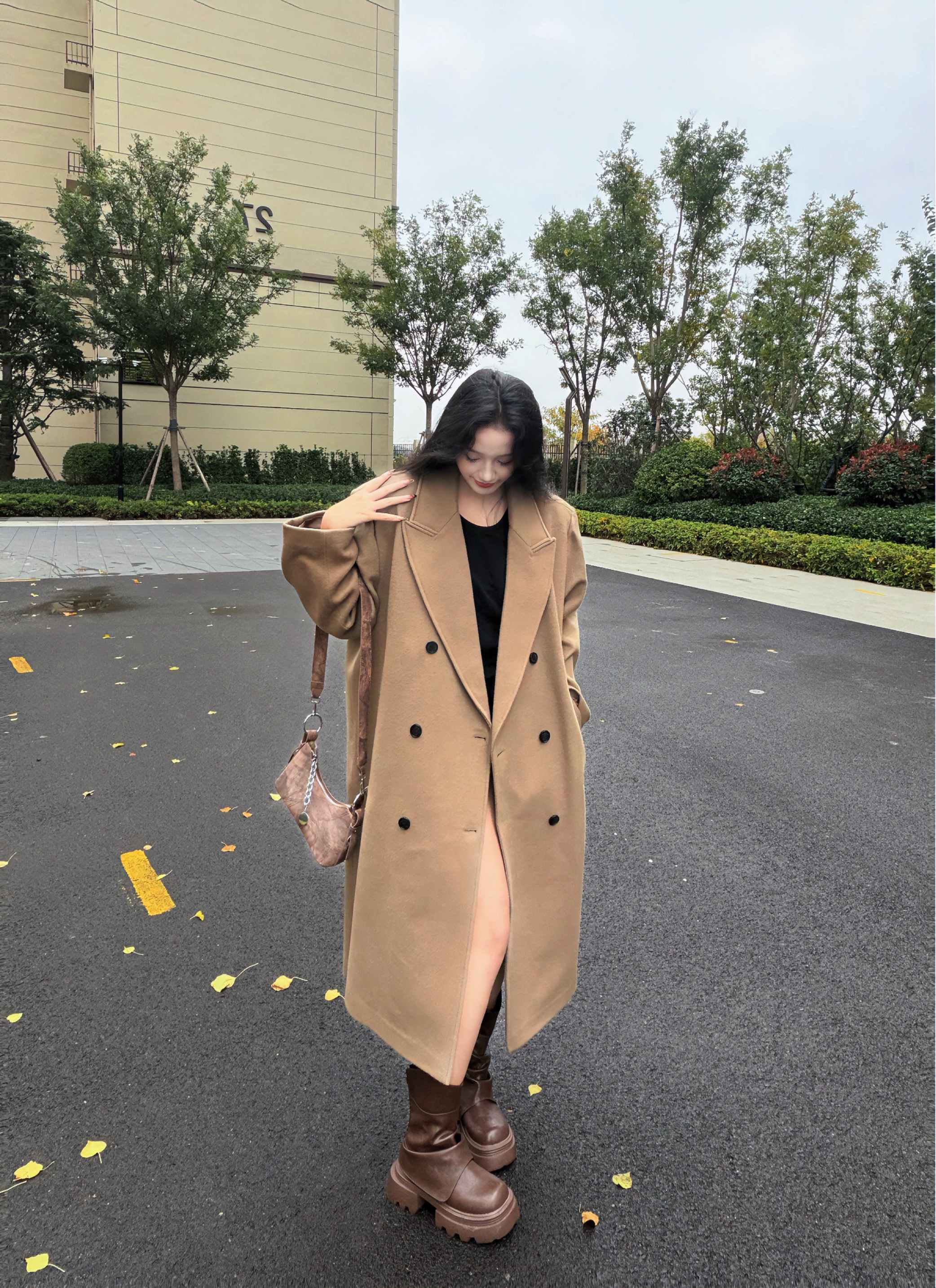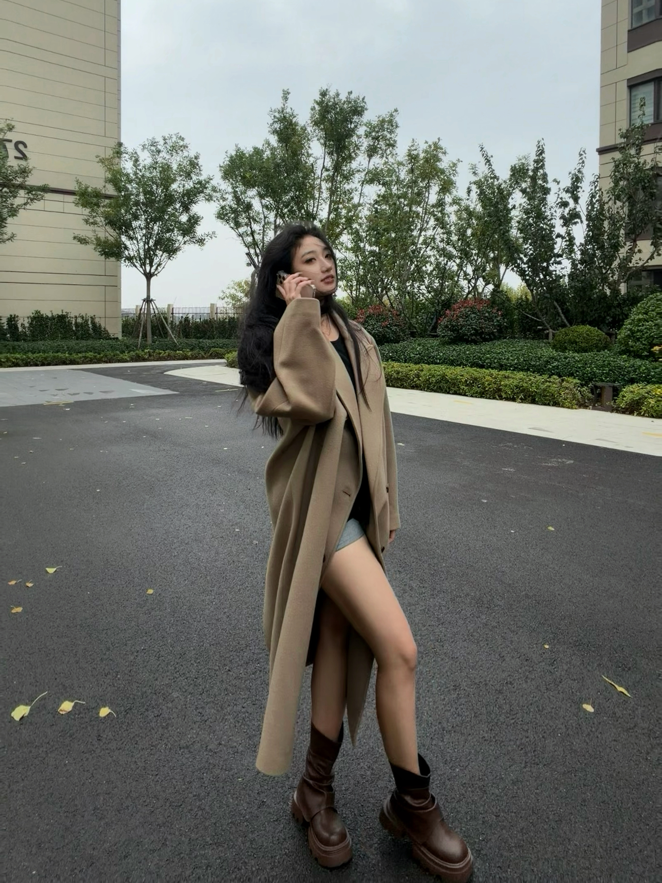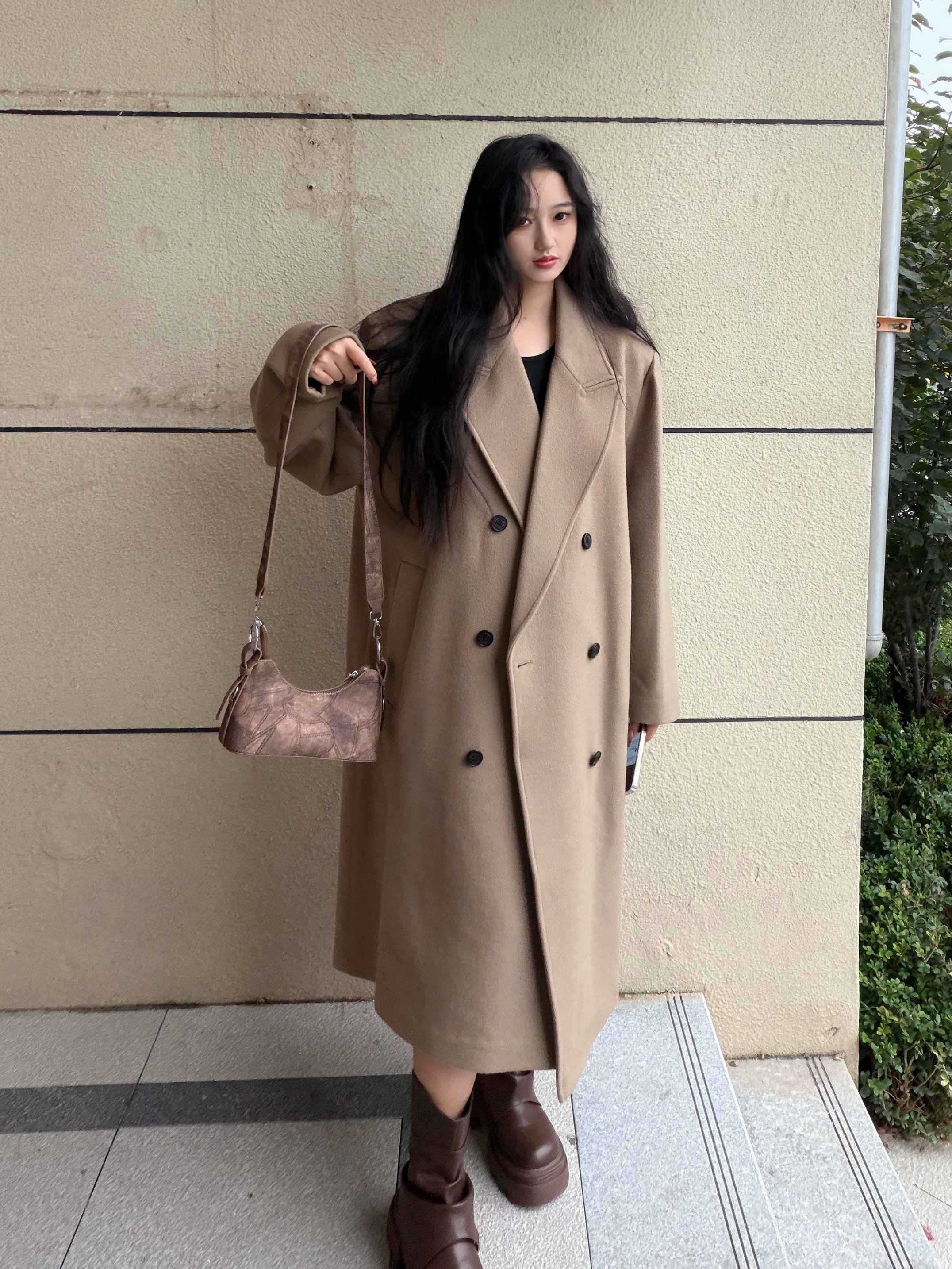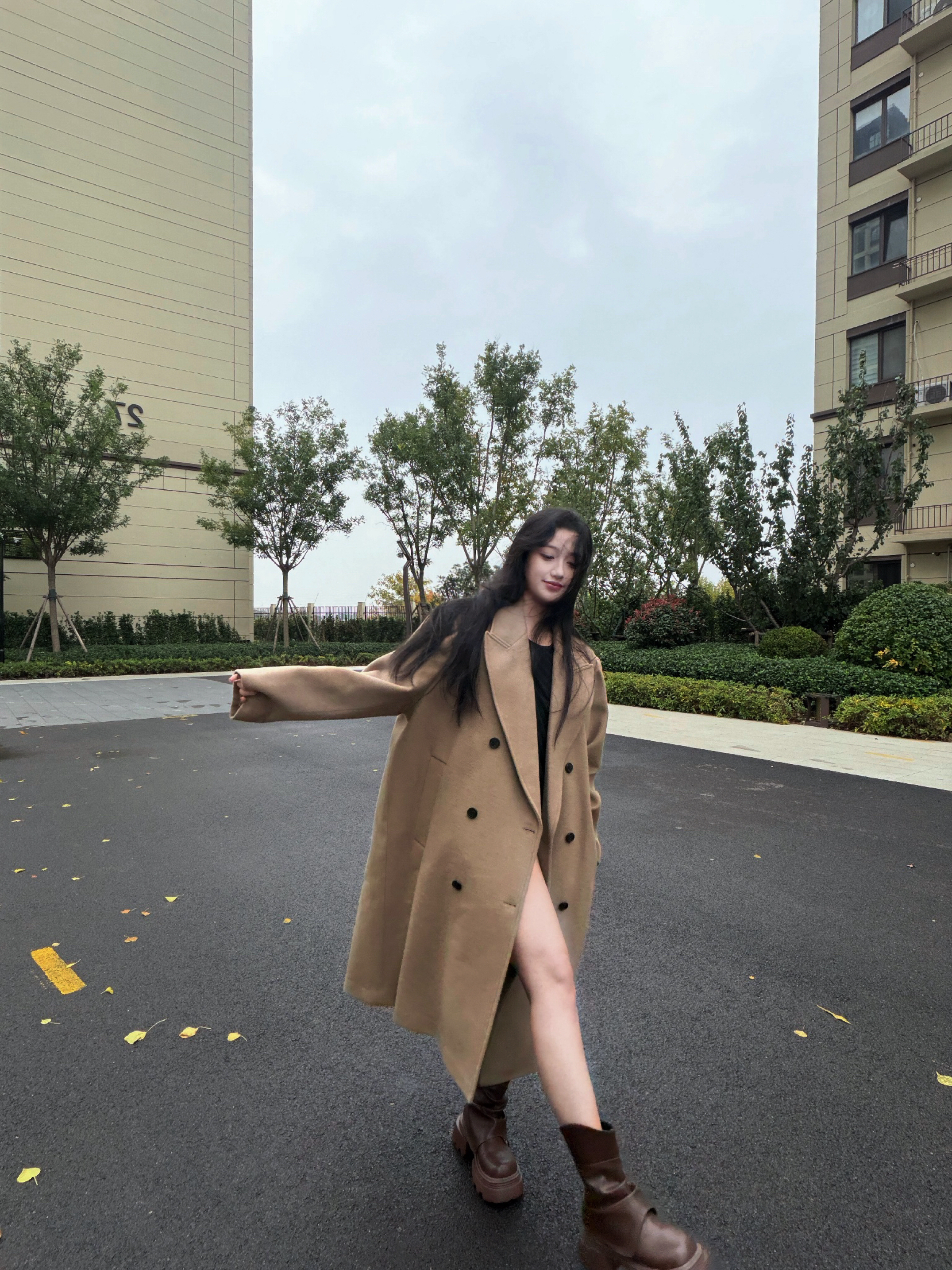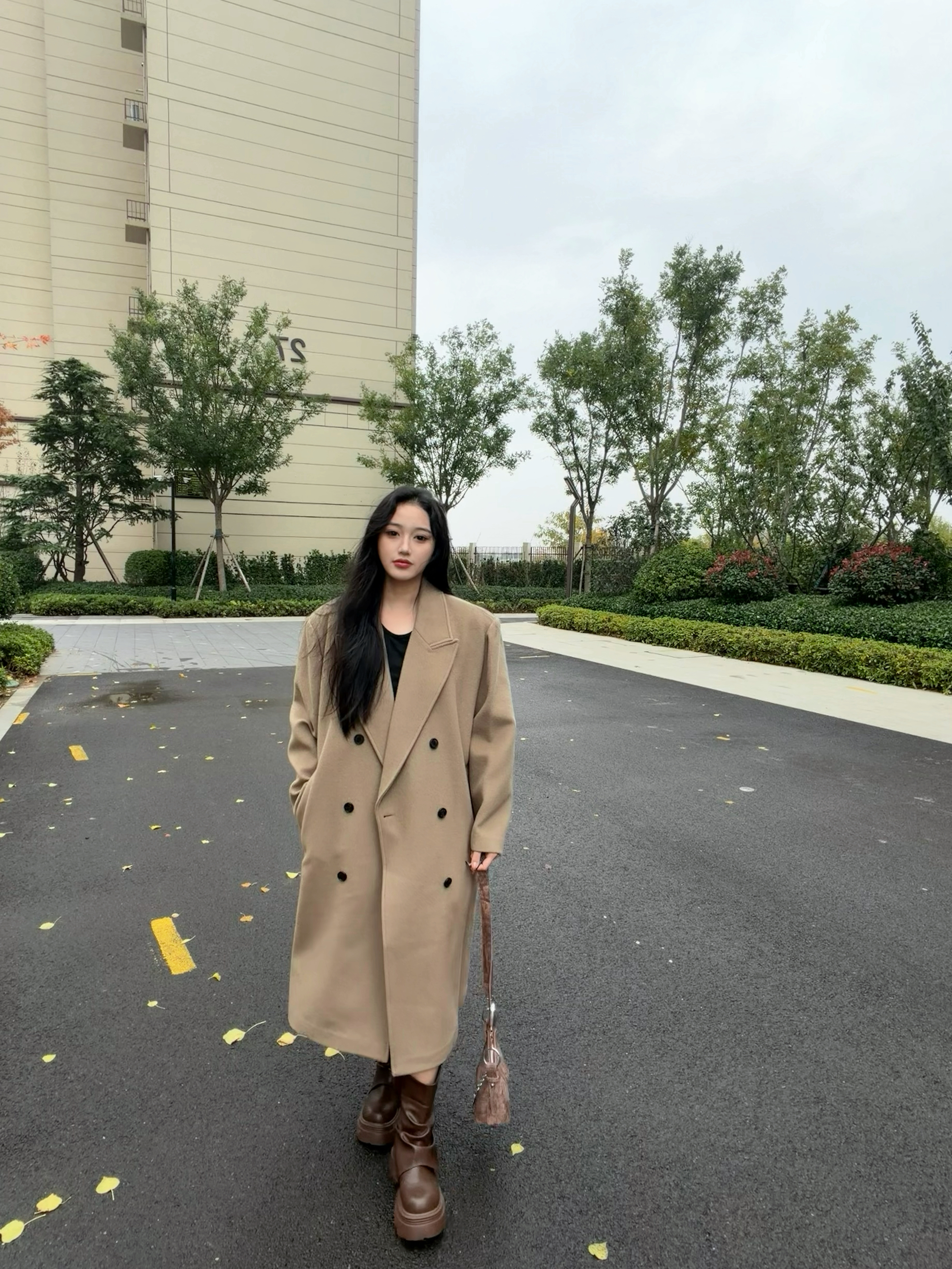 是谁的秋日衣橱还缺这件“氛围神器”? 驼色双排扣大衣自带慵懒滤镜✨ oversize版型裹出随性松弛感 走路带风还显瘦🦵 ▫️内搭选基础款就赢了! 黑色打底+同色系棕靴👢 再挎只复古包包 落叶街头随便走两步 都是电影感大片既视感📸 ▫️这波秋冬穿搭公式请锁死: 驼色大衣+简约内搭+同色系配饰 温柔又高级,通勤约会都能打💯