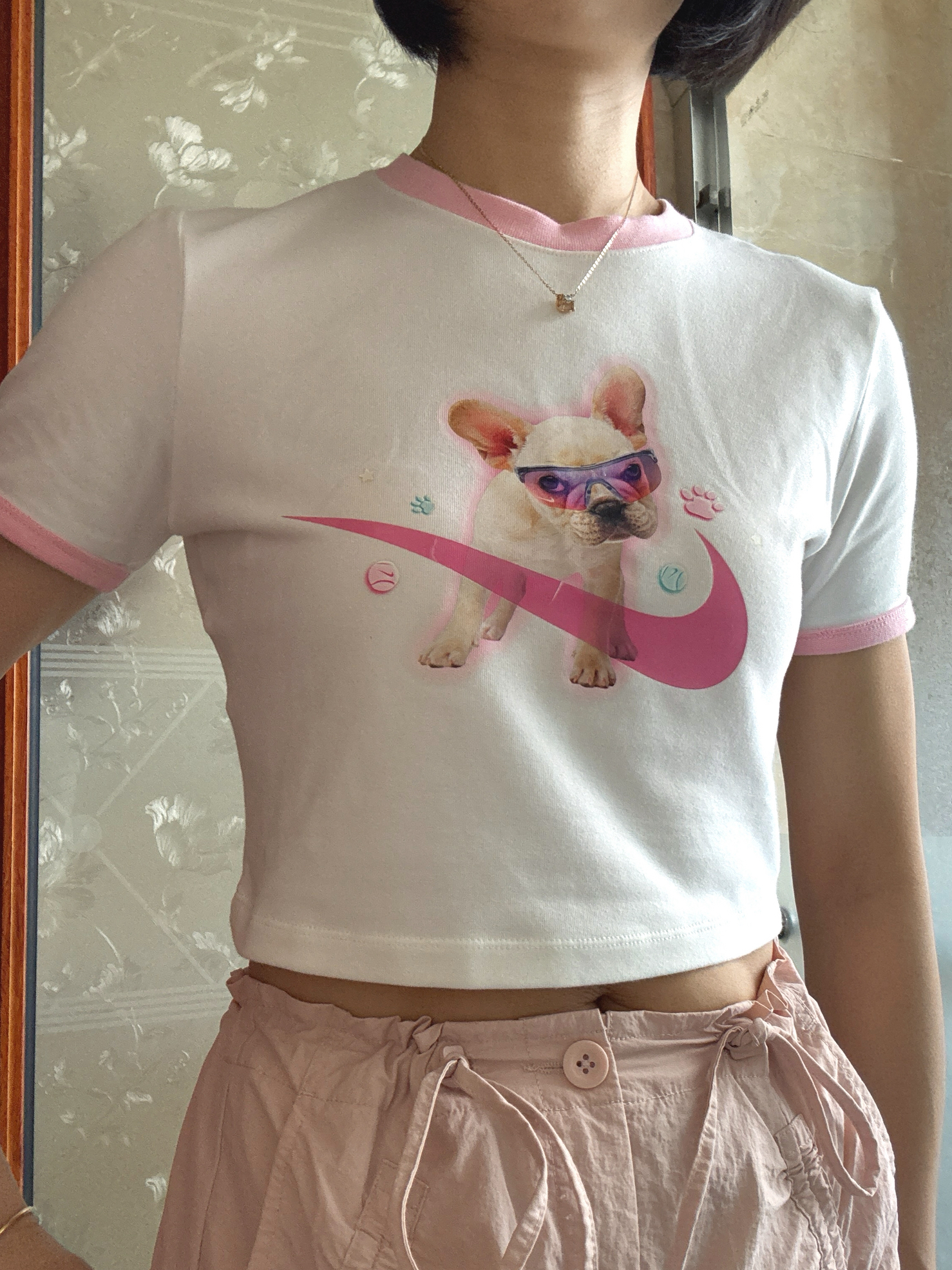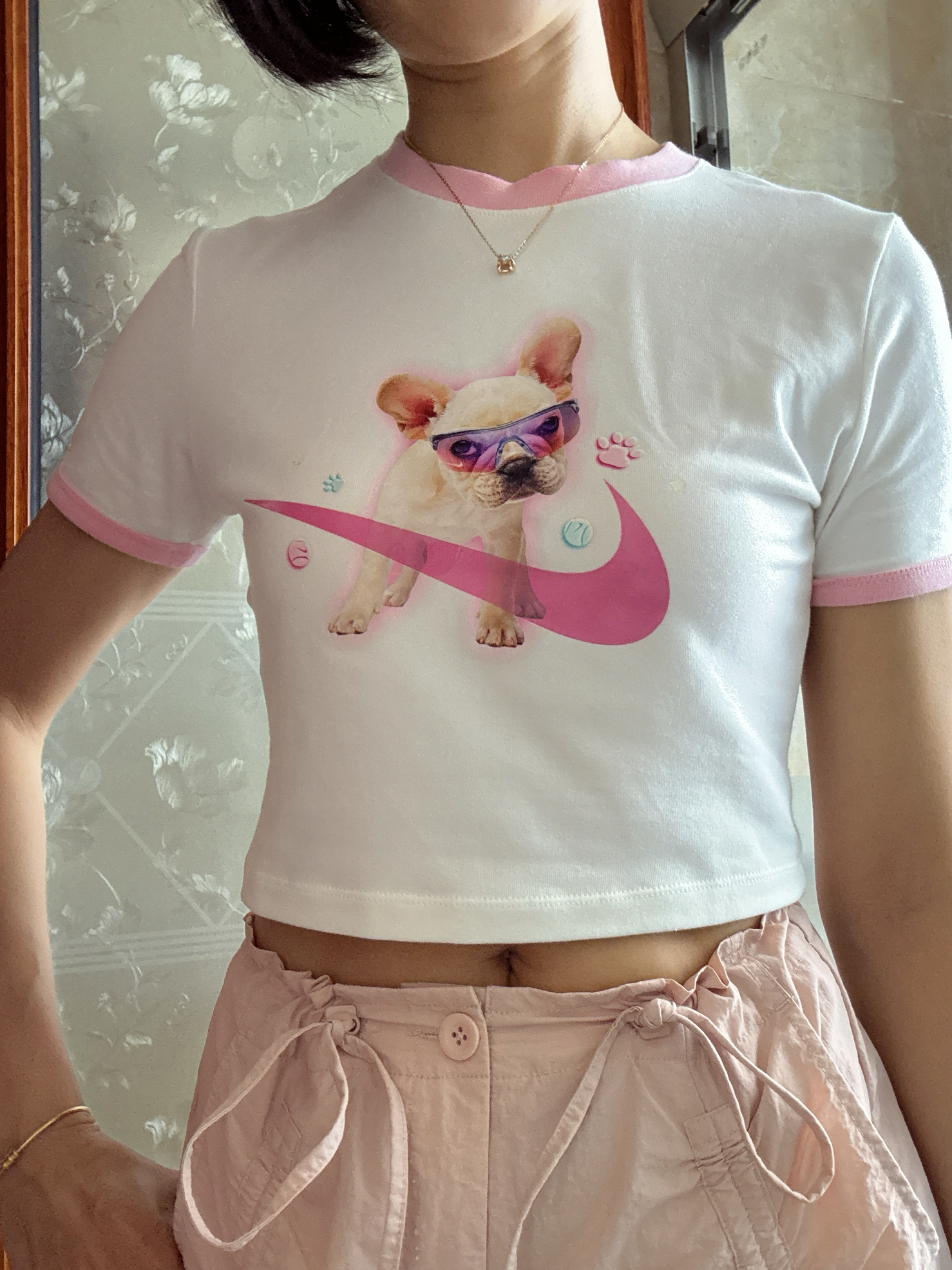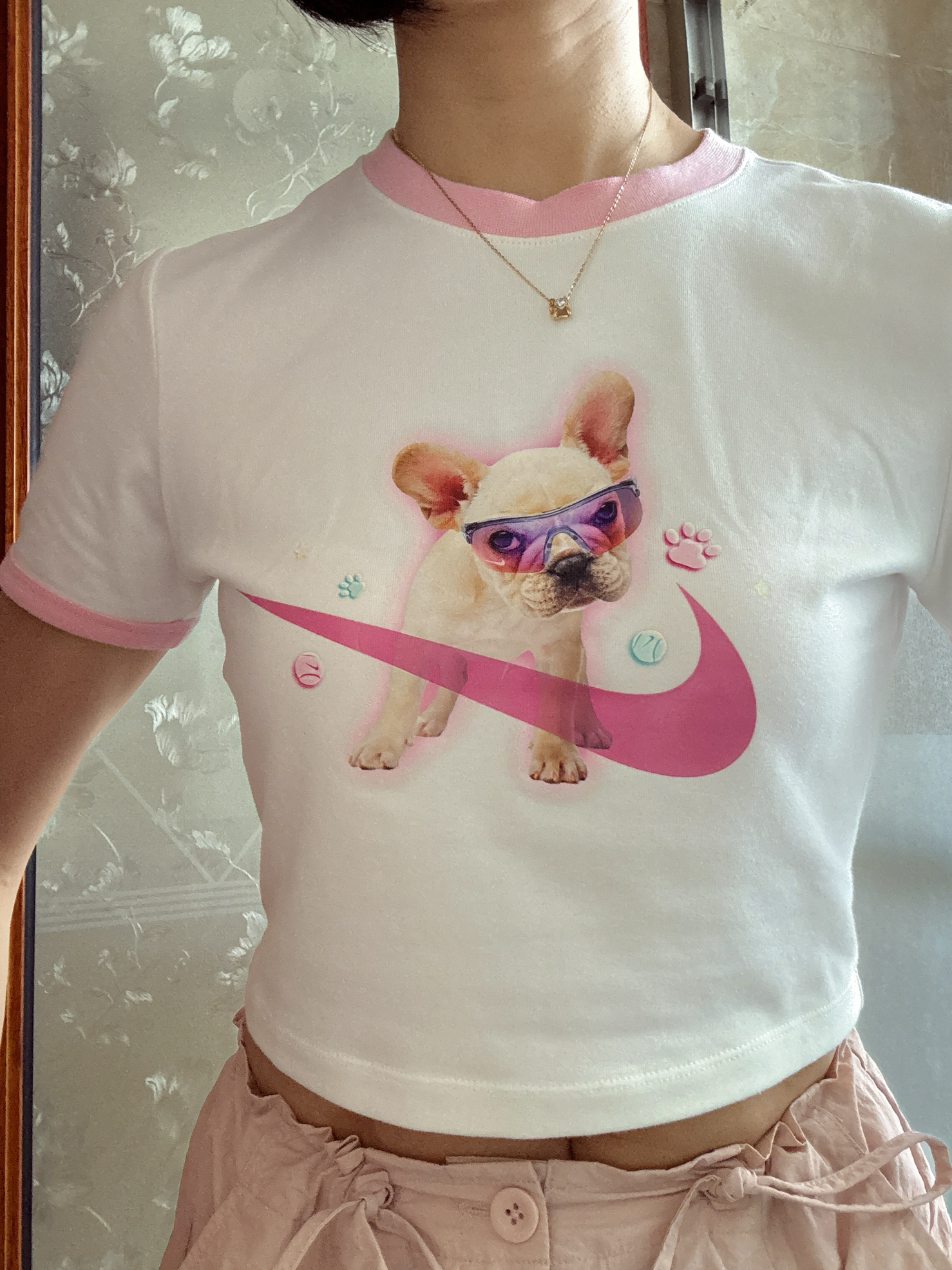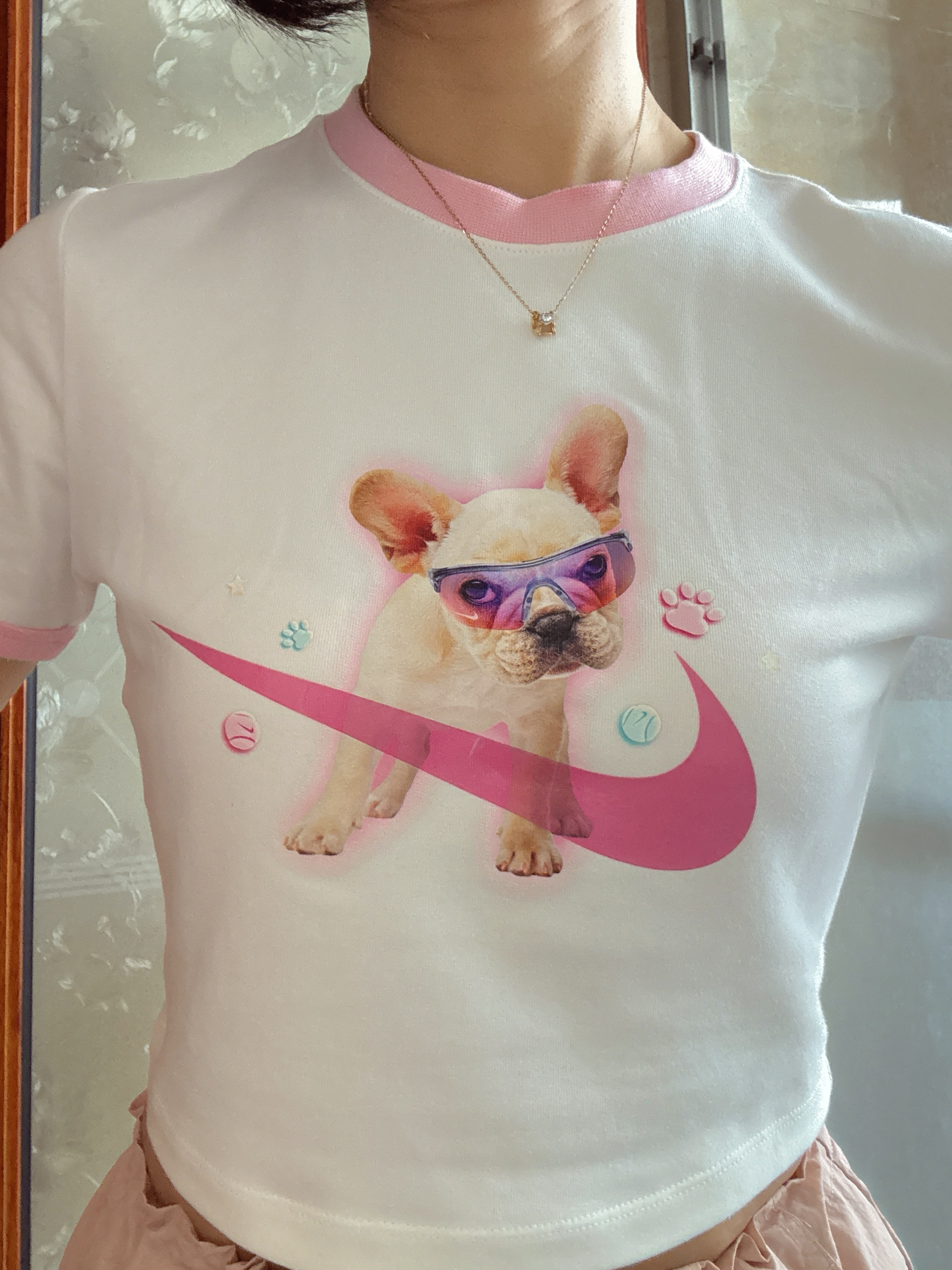 这款耐克休闲运动短款T恤,材质上身比较舒服,内搭外穿都非常OK,小狗印花配色好看,别致,显年轻。两杯奶茶的价格就能带回一件品牌短袖,性价比超高。(友情备注:衣服尺码偏小,建议拍大一码。本人身高165cm,体重52kg,M码合身。)💕