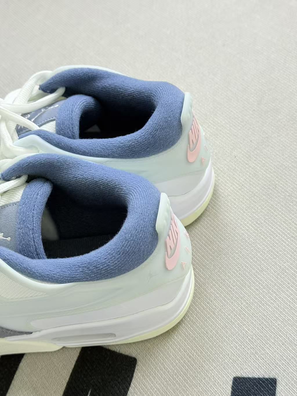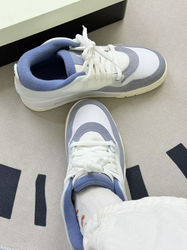 这双鞋上脚的第一感觉是轻,走久了脚腕也没什么坠感👟。鞋型是偏秀气的那种,浅蓝配白还挺衬浅色系裤子,搭卫衣牛仔裤都不违和。 脚感属于软但不塌的类型,日常通勤走个万把步,脚底不会发酸,不过鞋底偏薄,踩在石子路上能感觉到硌。鞋舌和鞋帮的蓝绒边摸着舒服,就是沾灰还挺明显的,穿两天就得擦一擦🧹。 鞋码算是准的,我正常码穿刚好,就是鞋头略窄,脚宽的朋友可能得试穿。另外鞋边的浅米色底,穿了一周沾了点污渍...