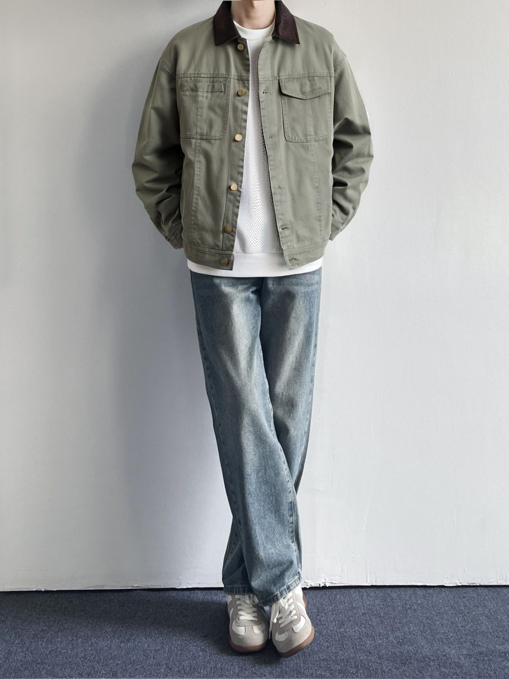 ▪️ 棕色系复古质感 翻领夹克+黑色微喇裤+拼色板鞋 内搭白T提亮整体色调 腰带与皮鞋色系呼应 打造慵懒又不失精致的都市感 ▪️ 深蓝色系清爽日常 拉链夹克+同色直筒牛仔裤 银色项链打破单调 棕色皮鞋增添复古细节 适合通勤与约会场景 ▪️ 工装风个性搭配 橄榄绿外套+浅色水洗牛仔裤 金色纽扣与德训鞋呼应 oversize版型营造街头感 背包+棒球帽即可完成造型 ▪️ ...