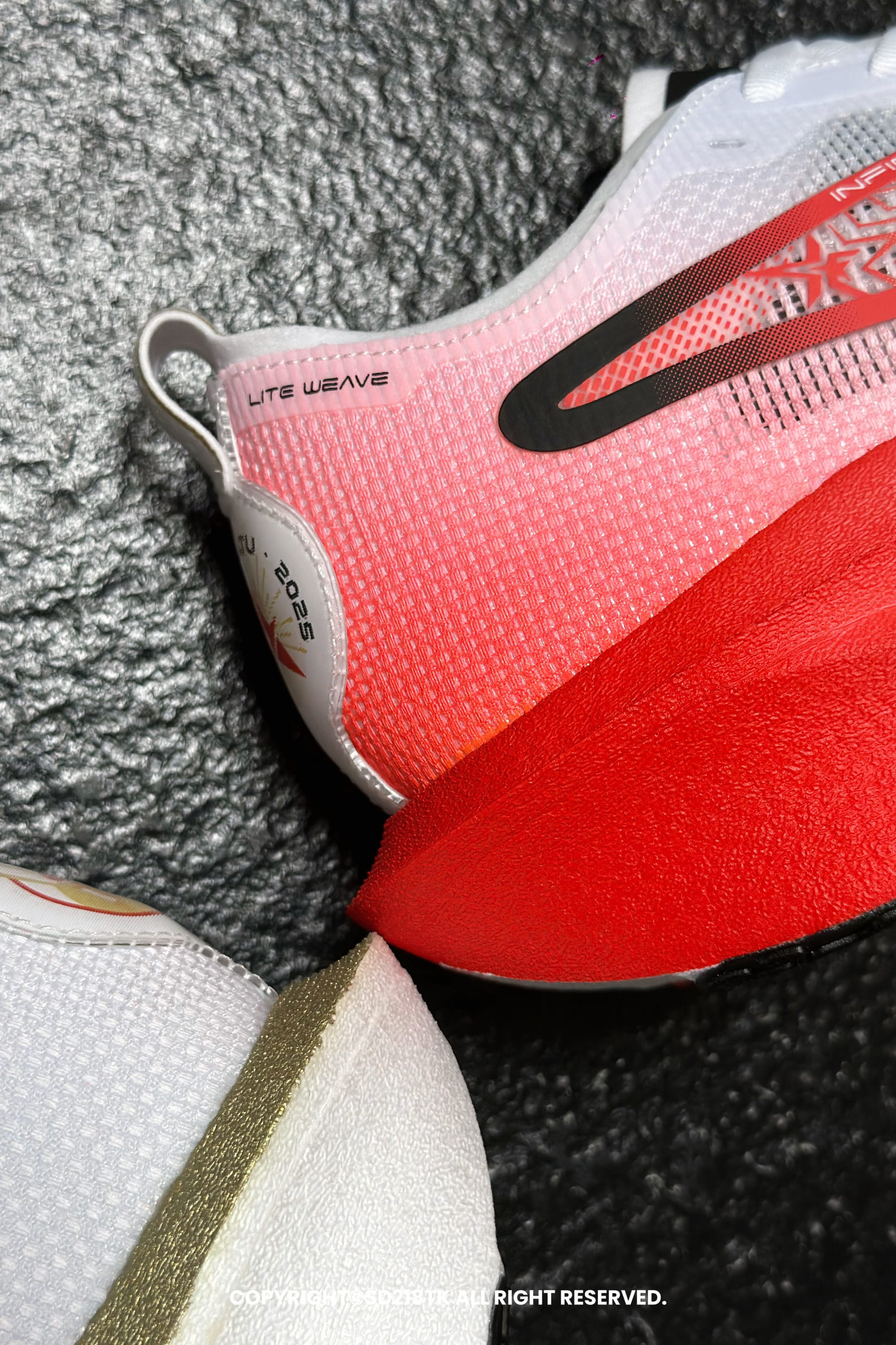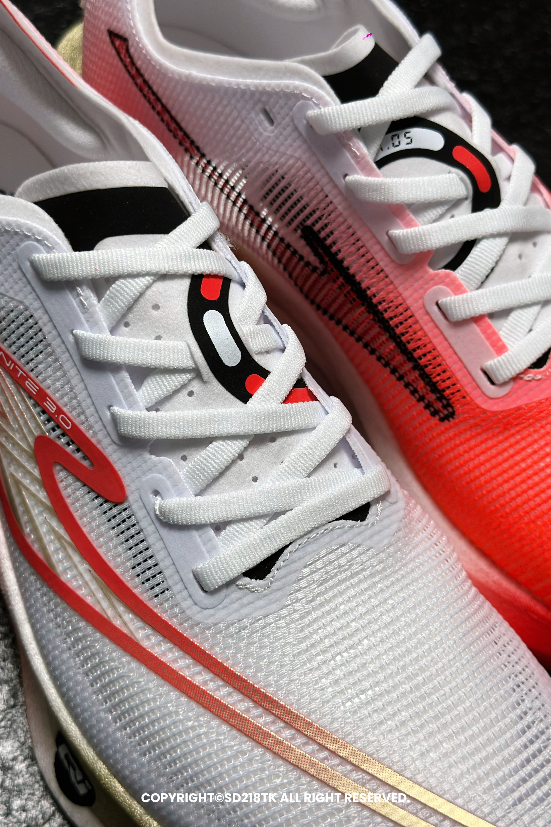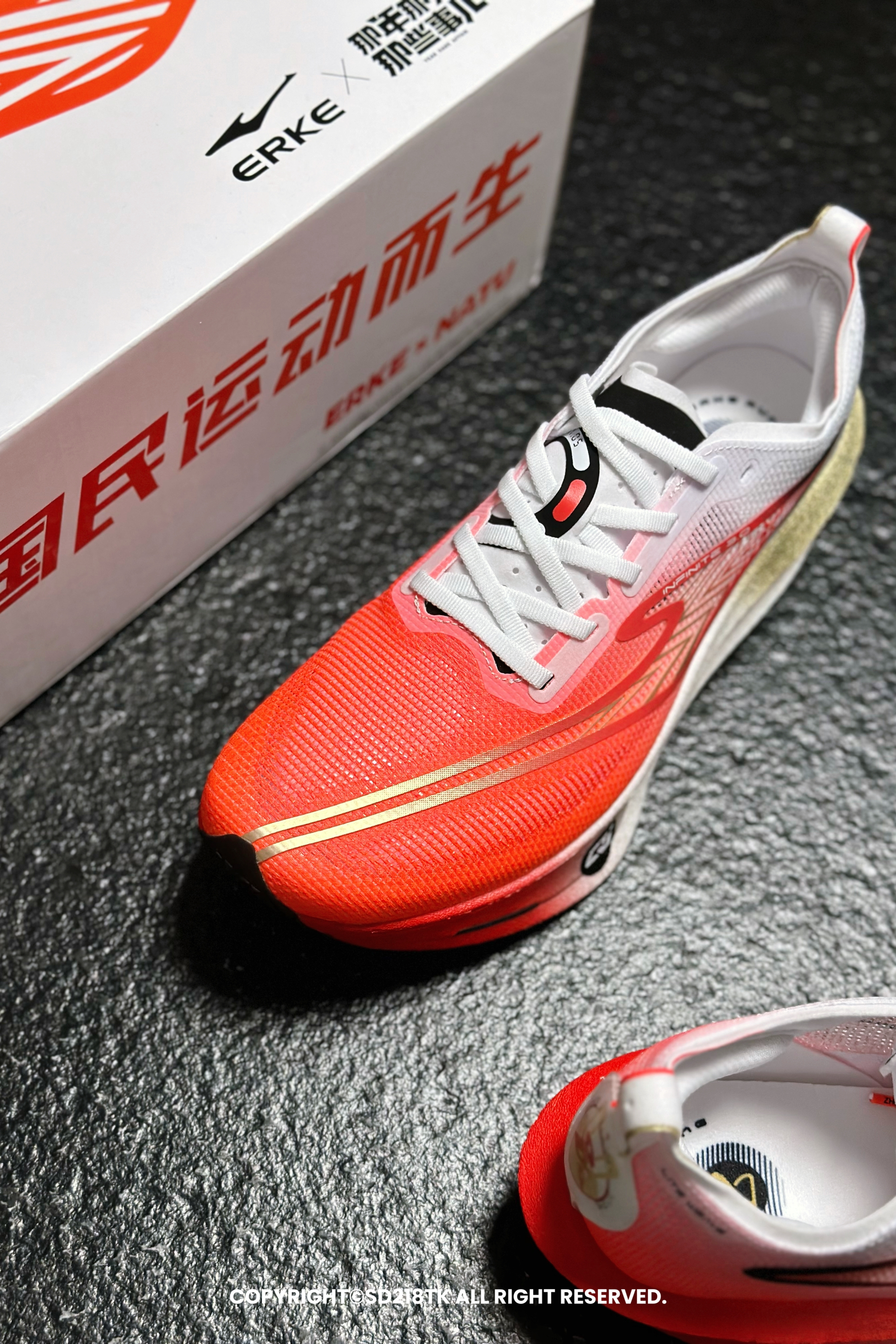 我很喜欢最近入手的这双ERKE鸿星尔克专业竞速训练跑鞋,携手《那年那兔那些事儿》打造中国星配色芷境3真的好看极了,今天再仔细拍一下他的细节,红和白的运用恰到好处,做的是前后鸳鸯的配色,红色渐变白色的设计烘托整个侧面logo层次感十足,圆形那兔的后跟位置也很醒目,这样有趣的配色设计希望会越来越多。让我们跑者的选择越来越多。