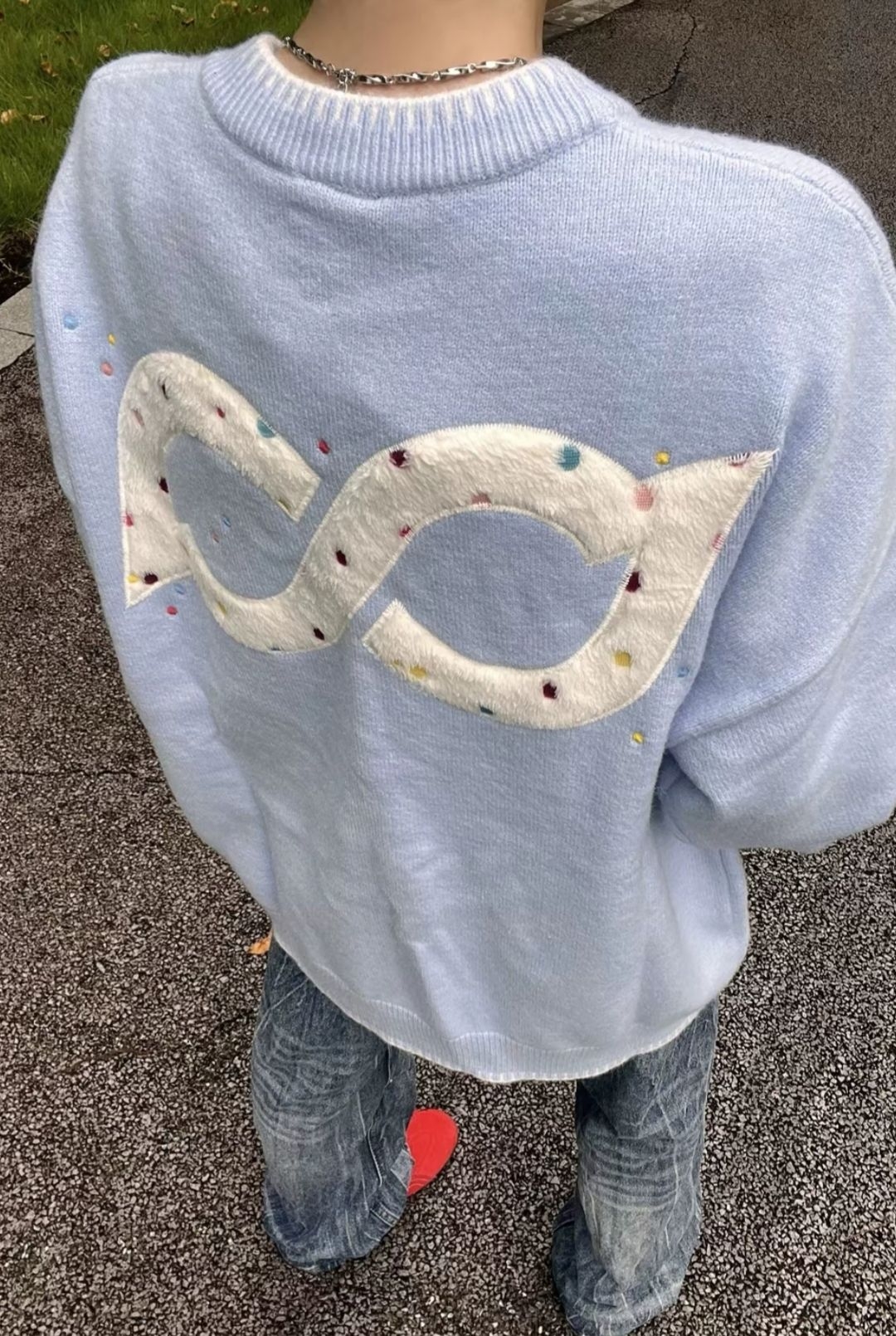 莫比乌斯环真的自带氛围感✨ 彩色波点logo设计超有个性♾️ 颜色恰到好处🩵 最重要的是它还很显白😻 版型是宽松款的 对各种身材都很友好🤭 搭配条⚡️闪电牛仔裤👖 少年感直接拉满💥