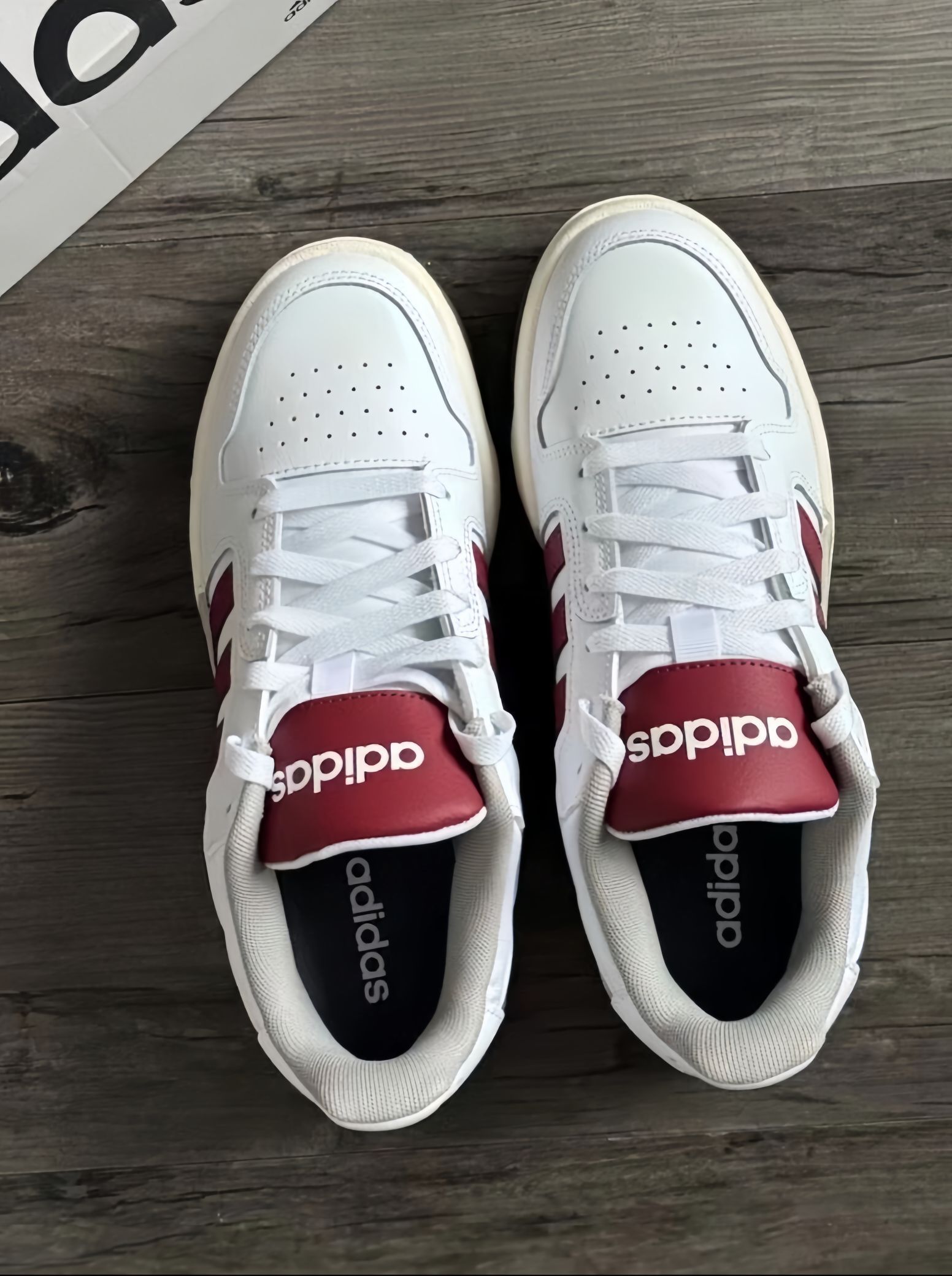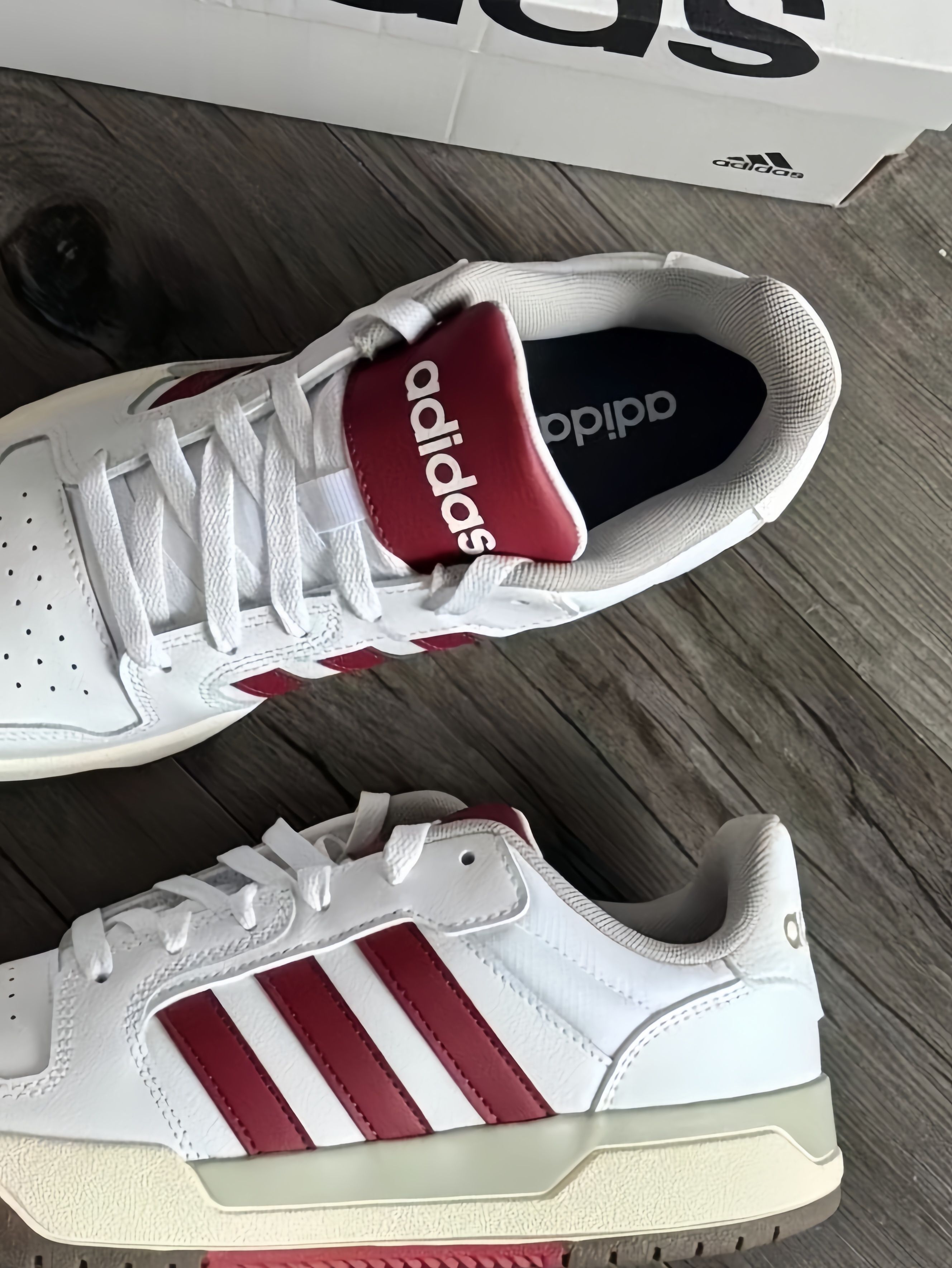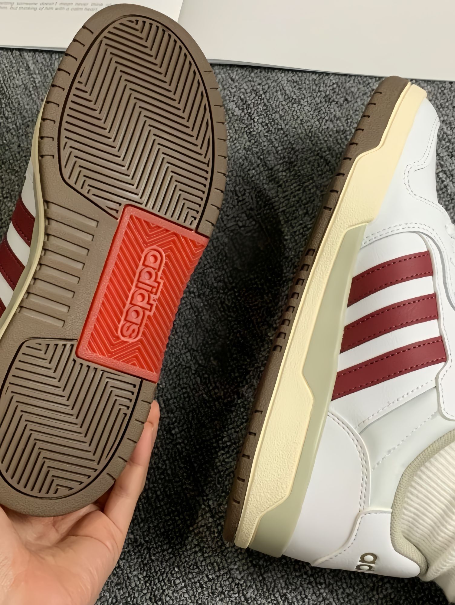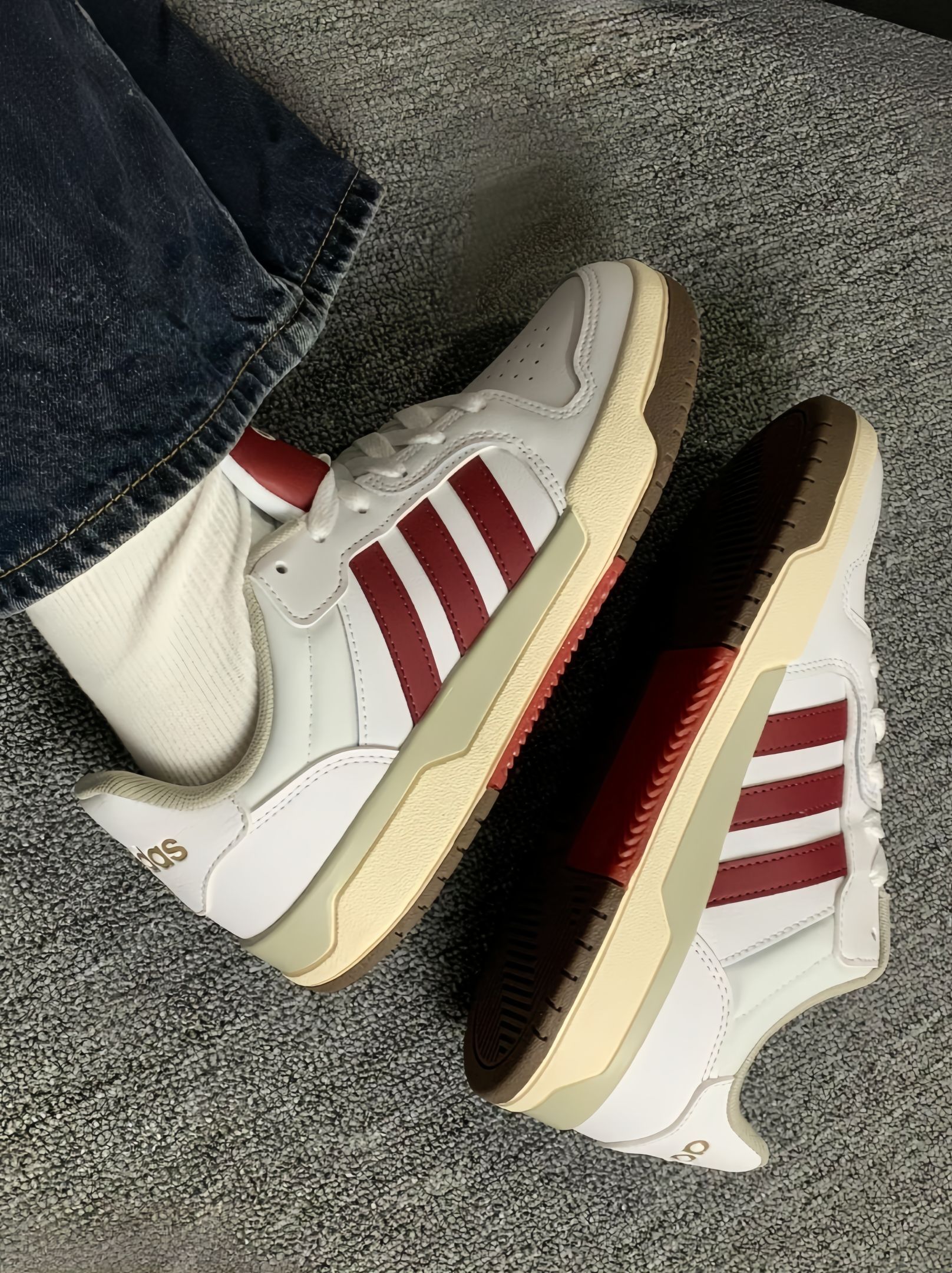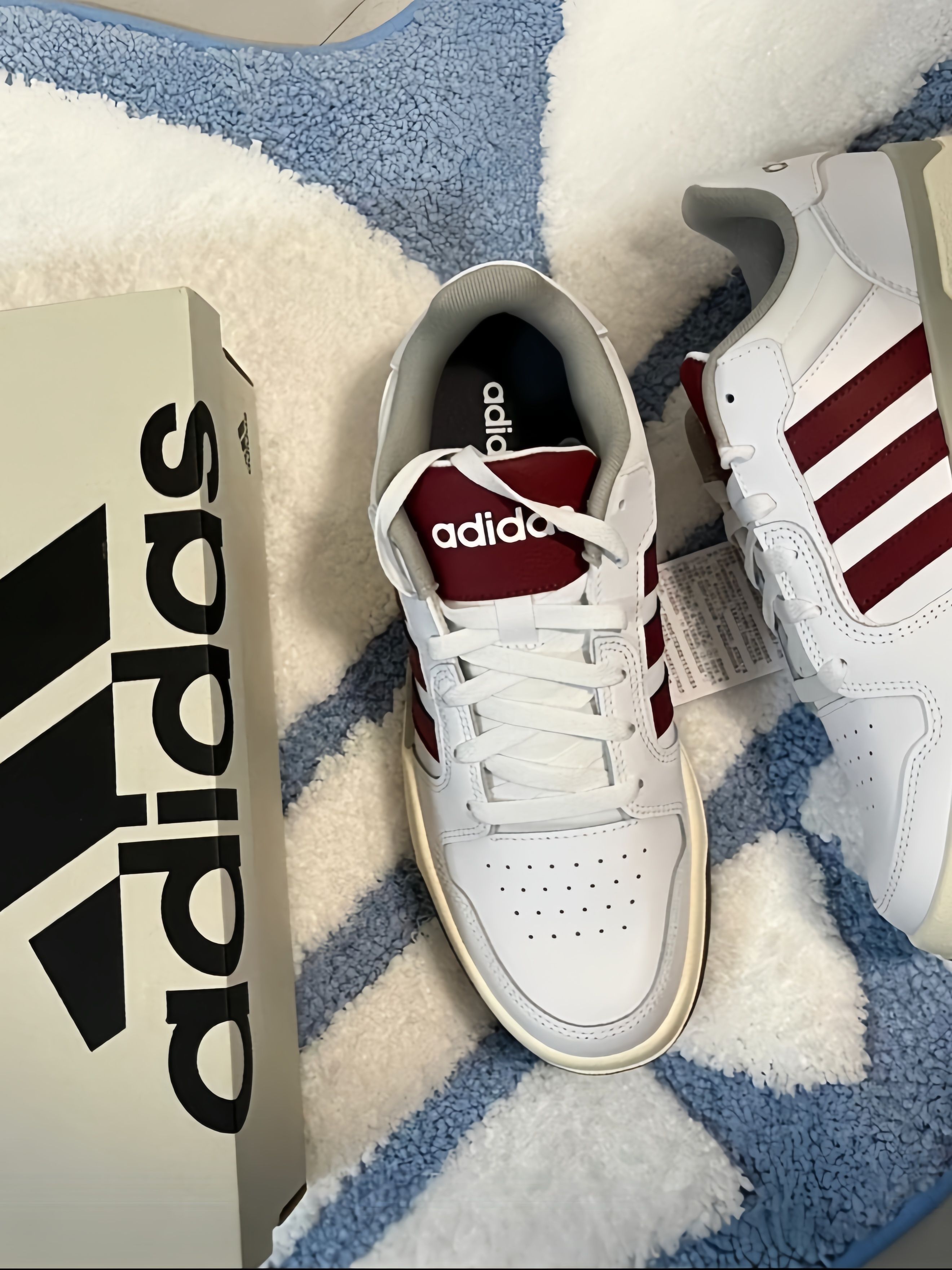 阿迪介双配色😍好好康👀 红白配色 一种复古的感觉~ 还蛮适合🈴冬天穿的诶 皮面设计😘保暖效果杠杠滴 简简单单搭配牛仔裤👖就行 出游拍照📸也不戳呀 出片的嘞! 虽然是板鞋 但是穿起来舒服🥰