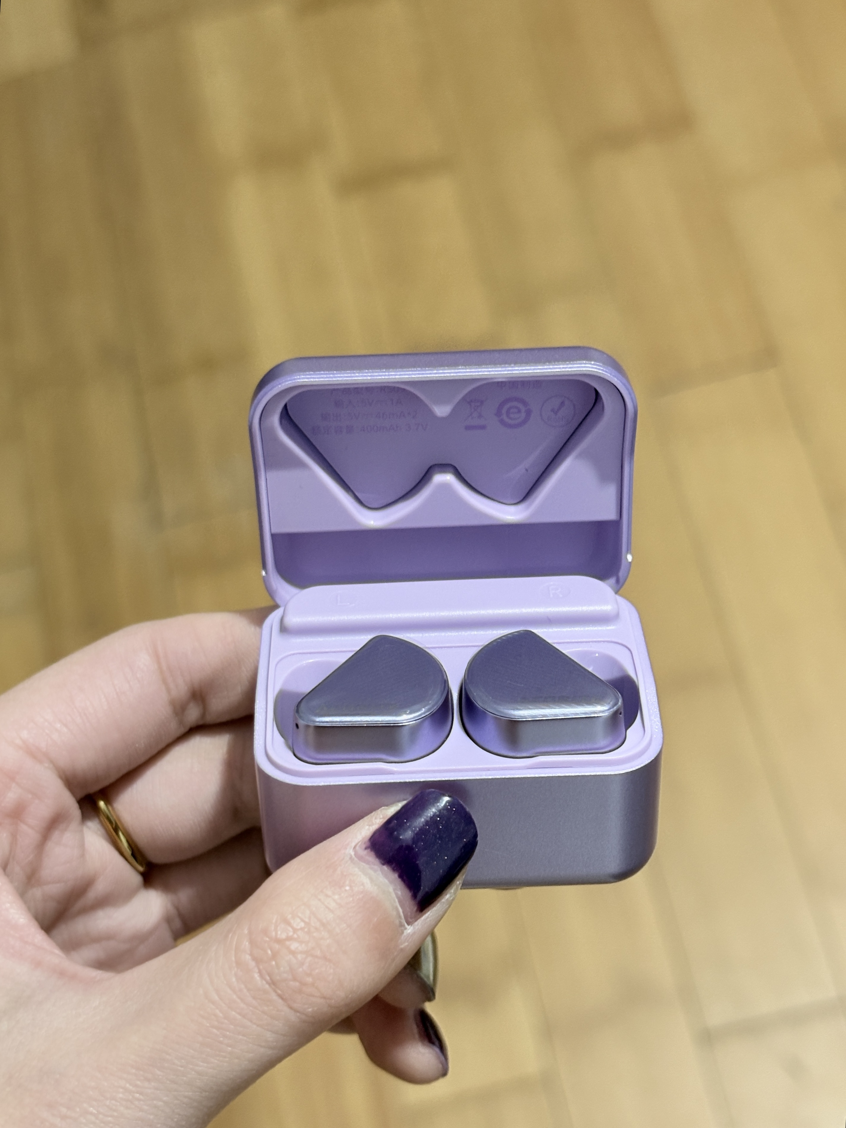 家人们谁懂啊!最近新宠这耳机,紫fufu的颜值戳我心巴~ 戴耳朵里轻得跟没戴似的,上班戴一天耳朵都不胀👍 挤地铁开降噪,外面吵吵直接变“背景板”,音质还透亮得很! 不过咱得吐槽下,这耳机仓要是再小巧点就更完美啦~ 几十块能有这质感,我愿称它为打工人福音👏